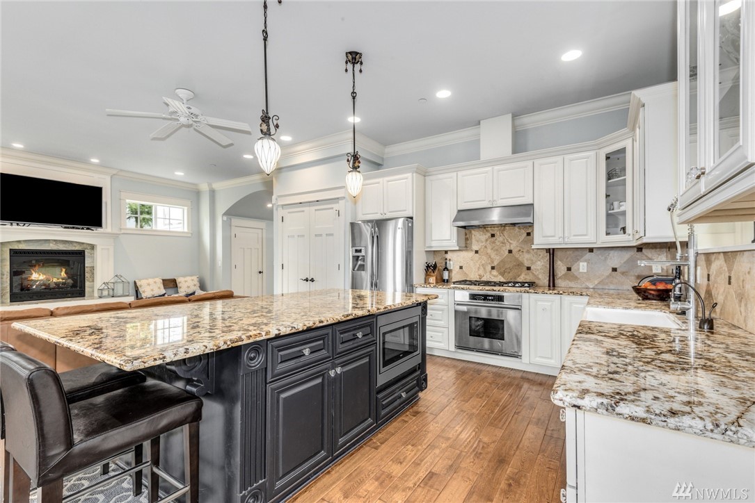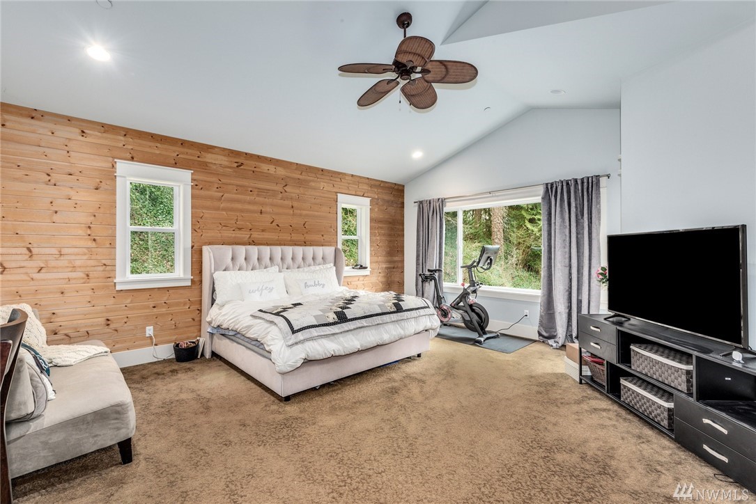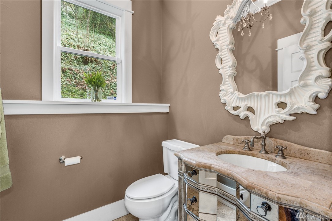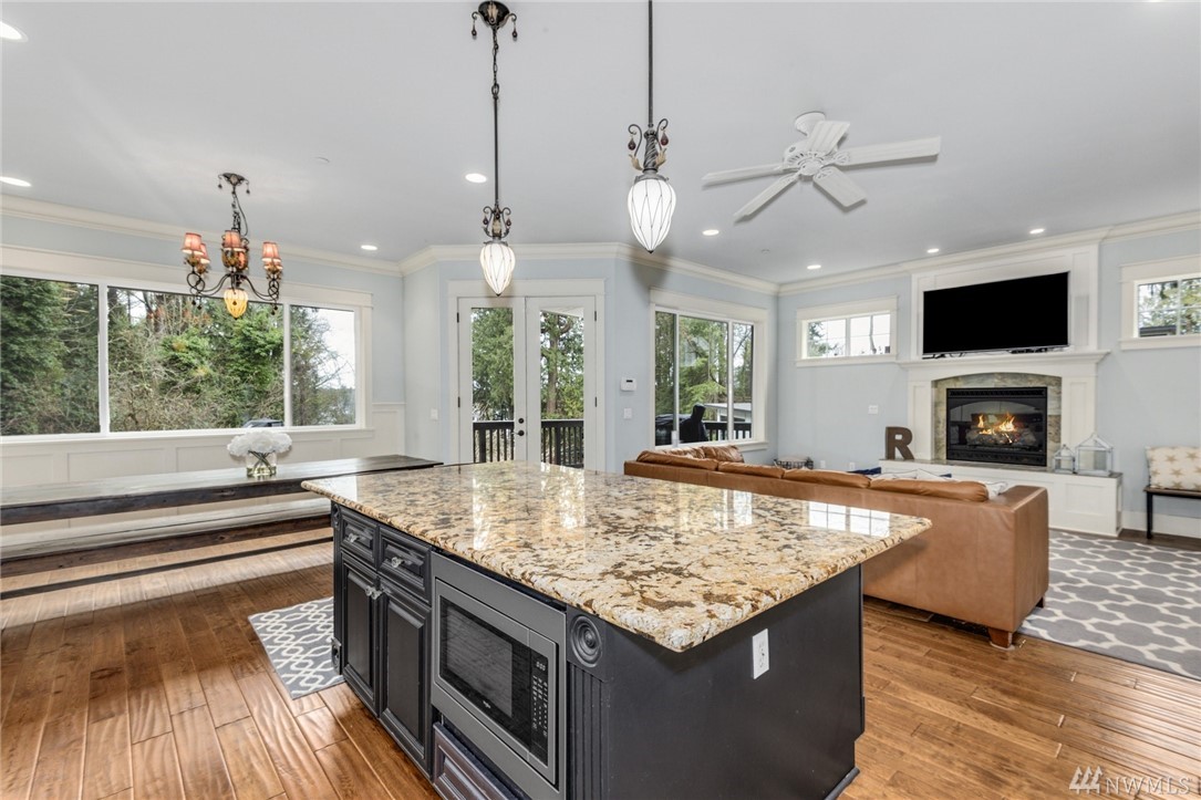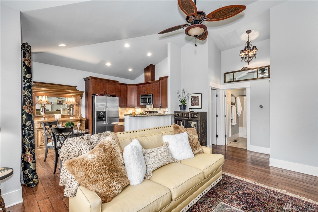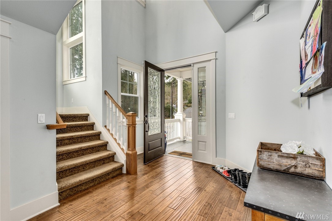 Exquisitely crafted home w/a brilliant Western Focus; steps to the Holmes Point Park & Waterfront.Solid construction w/strong details, elemental textures & treasures throughout.Freedom of open spaces in expansive great room w/walls of windows opening to entertainment sized decks.Bedrooms are spacious, the master suite impressive w/soaring ceilings & views.Neighboring Guest Cottage is crafted w/the same superb level of quality, self-contained & metered. Great air BNB, rental, or extended living.