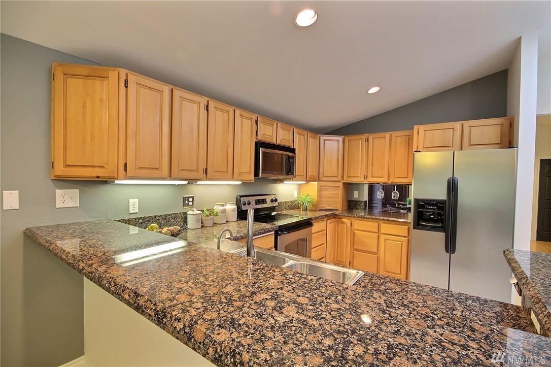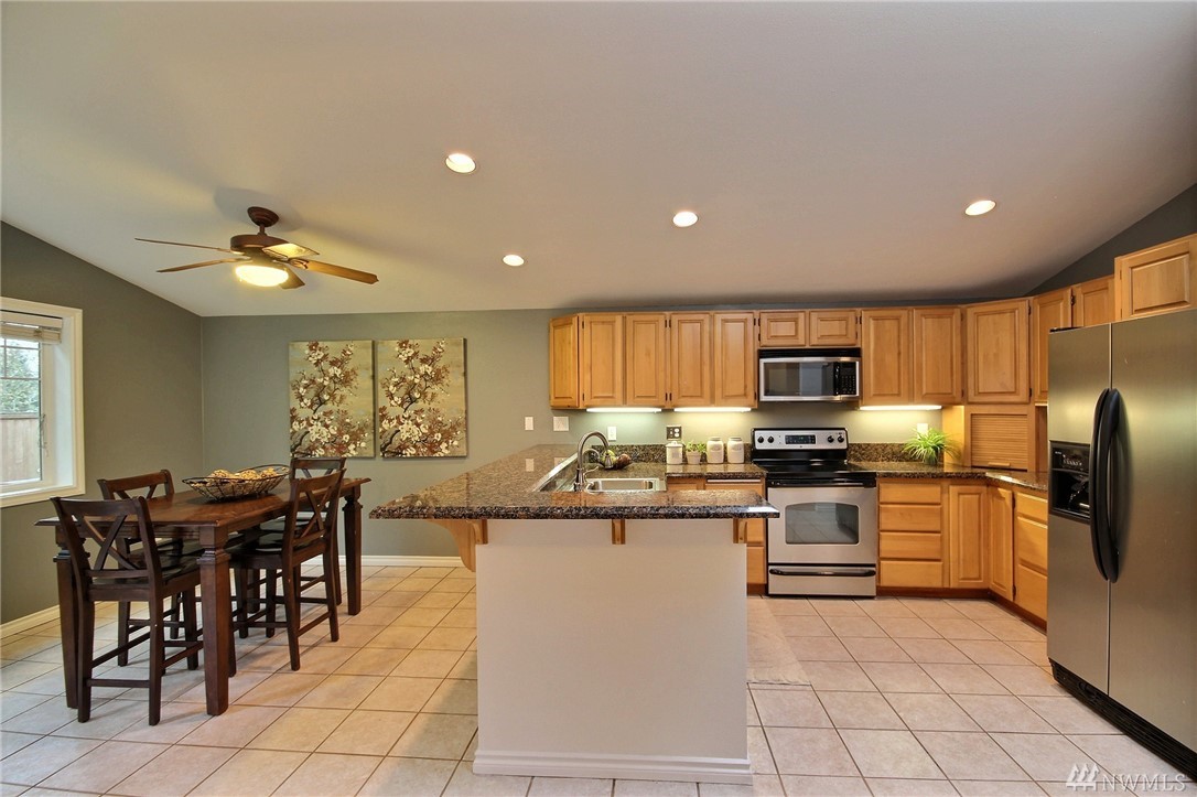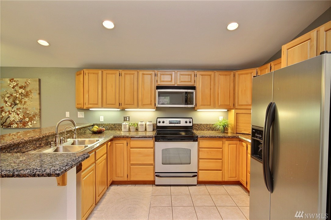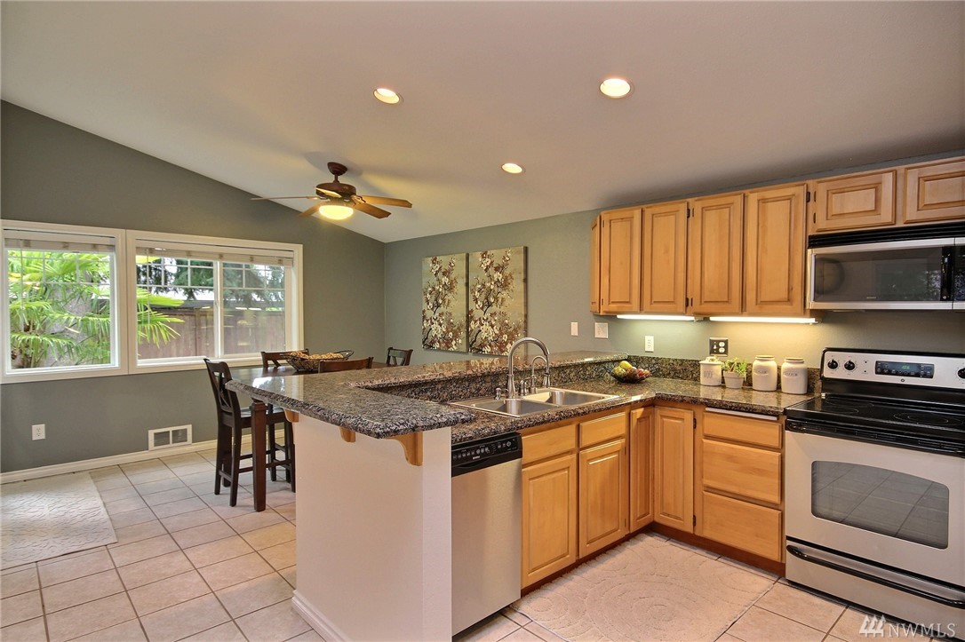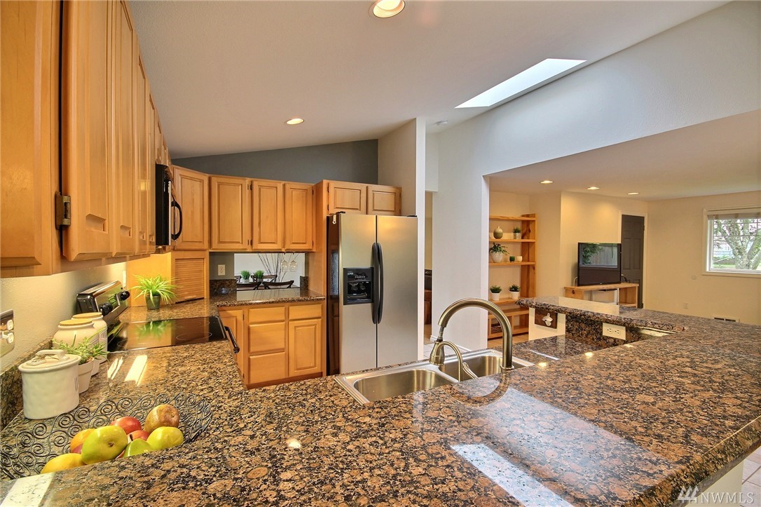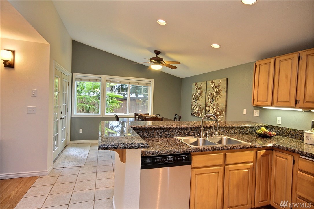 Finally! A well maintained, move in ready home just blocks from Lake Washington in sought after lower Kennydale! Vaulted ceiling thru living areas & kitchen along with newer windows throughout bring light into every room of this well maintained rambler. Granite countertops & stainless appliances in kitchen. Fenced back yard w/ garden shed & covered patio. Access hwy 405 in minutes! 2 blocks to miles of running trails & lakefront park access along Lake Washington Blvd. Solid brick & cedar home.