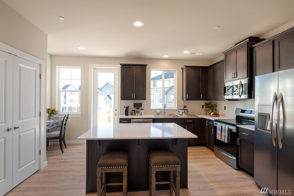 This modern farmhouse home will exceed your expectations with beautiful finishes inside & out! Open-concept great room with chefs kitchen & large island! Easily entertain with a deck located conveniently off the kitchen & enjoy the fresh air of this hilltop community. Complete w/ a walking trail around the community pond and well-designed, open green areas for evening strolls. 2-car garage w/ huge shop space for fun weekend projects or storage. Patio on lower level offers more outdoor space!