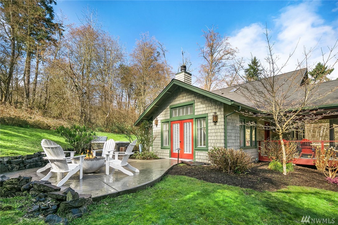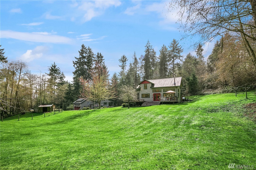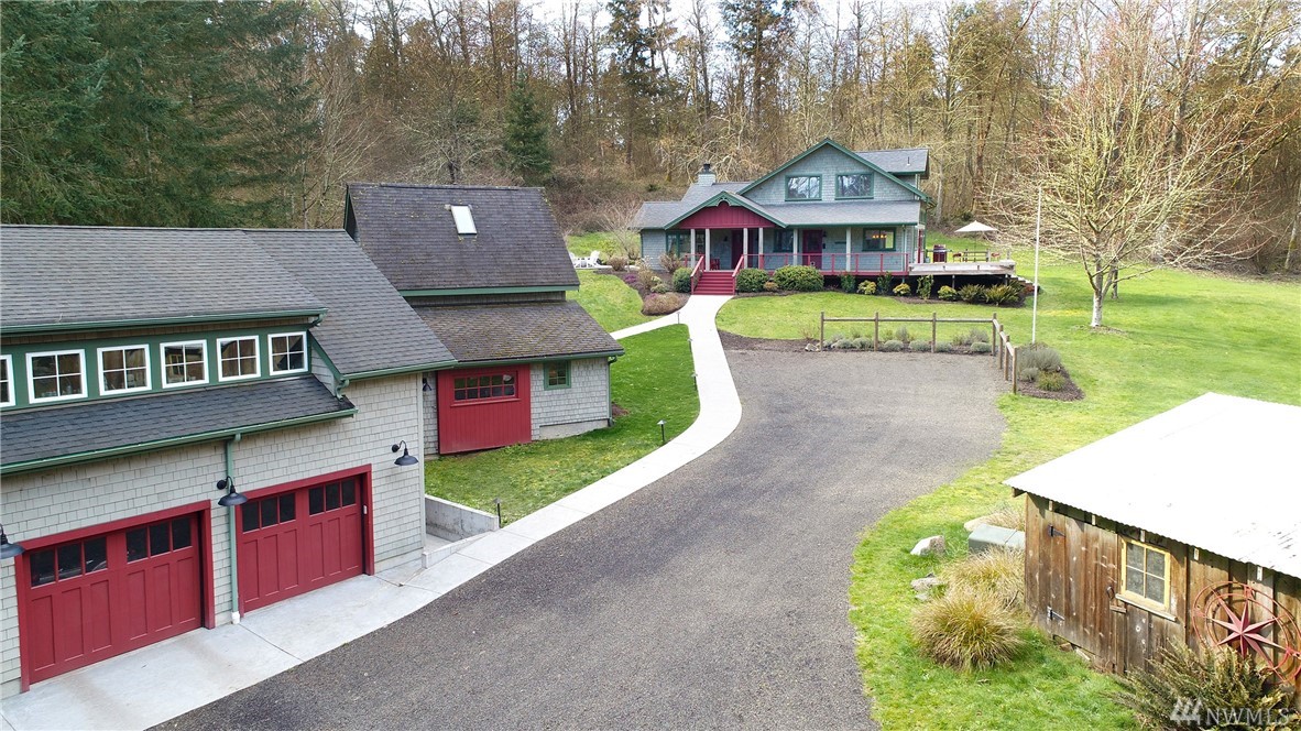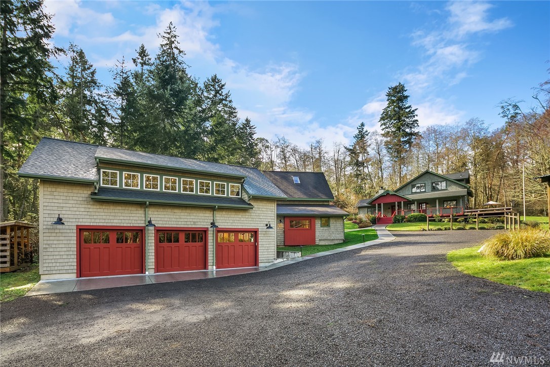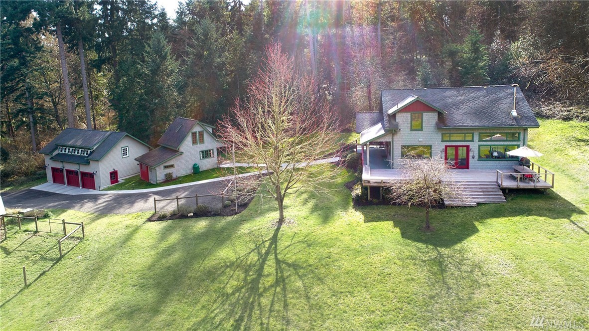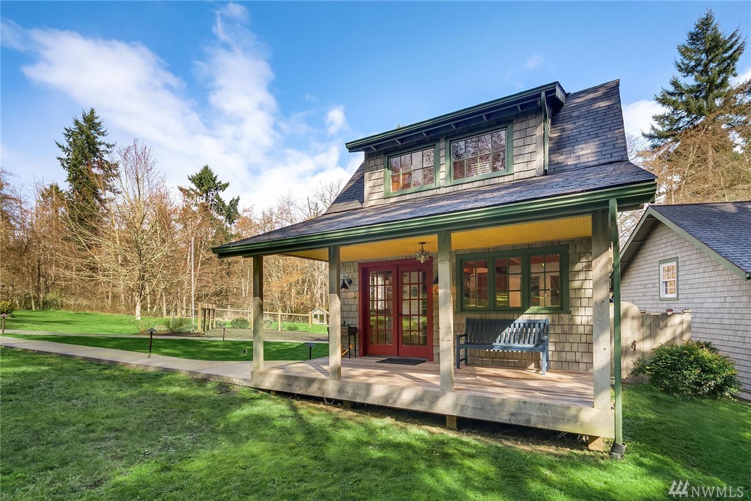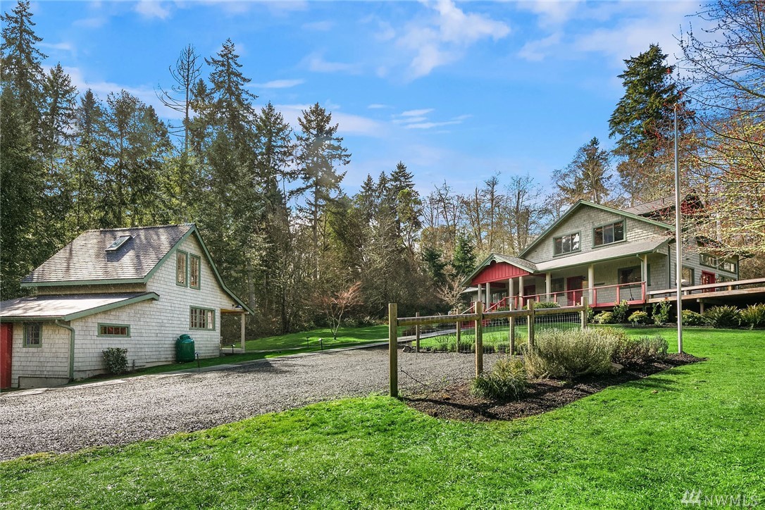 Modern farmhouse on 14+ acres of open meadows & woodlands. Gracious porch entry welcomes you into the perfect floor plan; luxurious master on the main with access to private patio, hot tub, outdoor shower & gas fire pit, open kitchen/living/dining with French doors to deck overlooking your private paradise, 2 bedrooms & full bath up. New high-end appliances, farmhouse sink and flooring throughout. New 3-car garage with huge studio space above. Cozy cottage will delight your guests. Perfection!