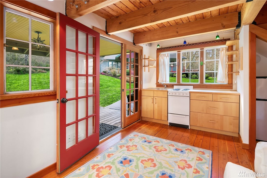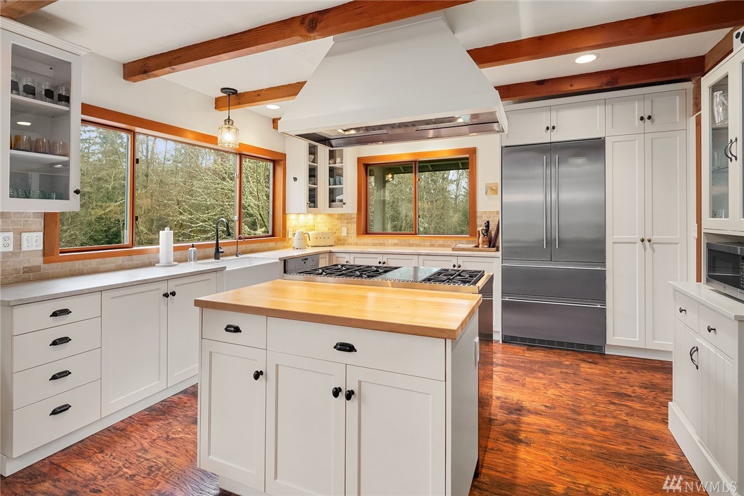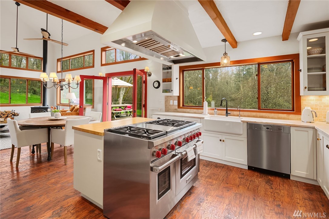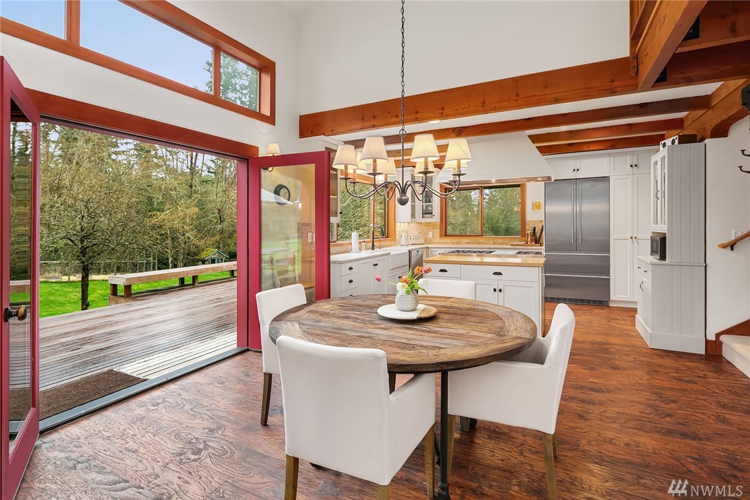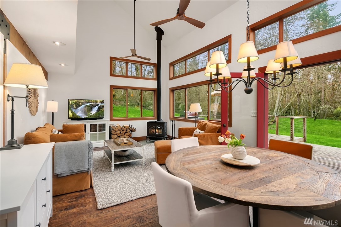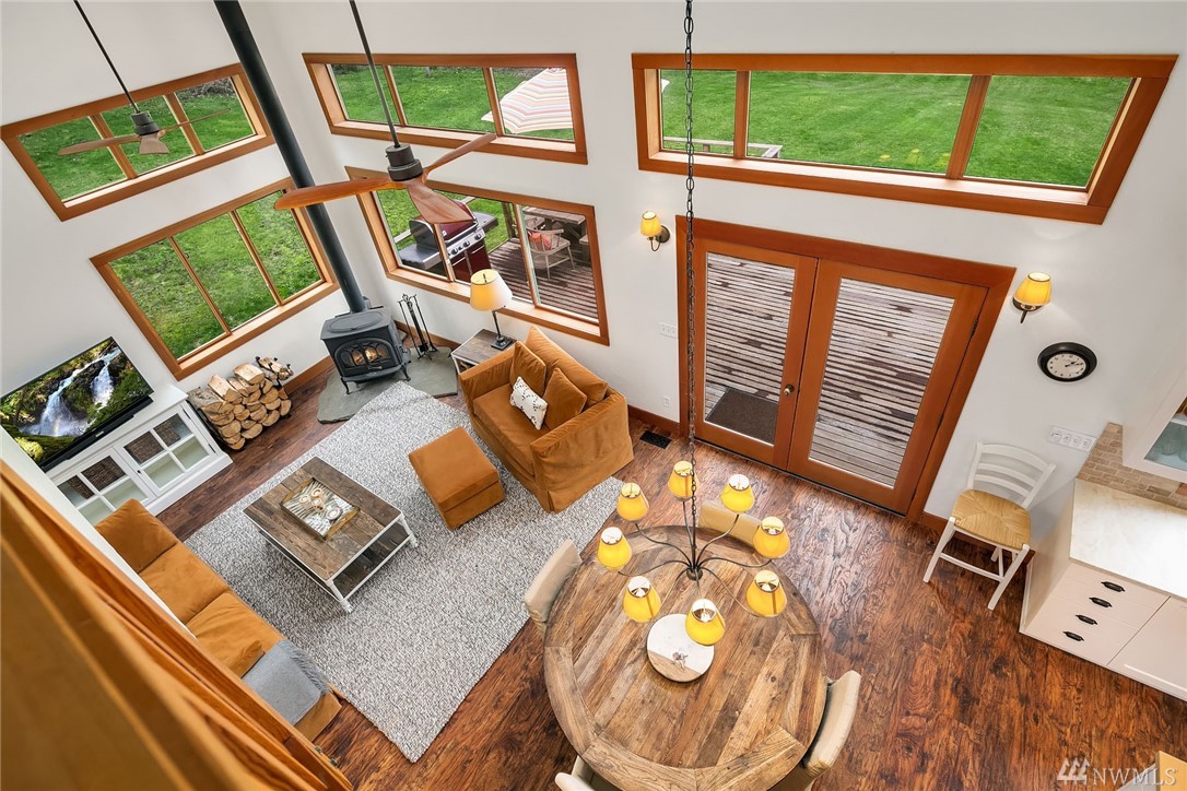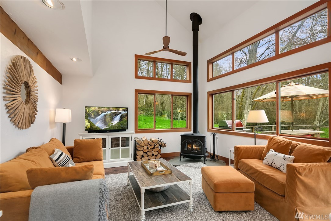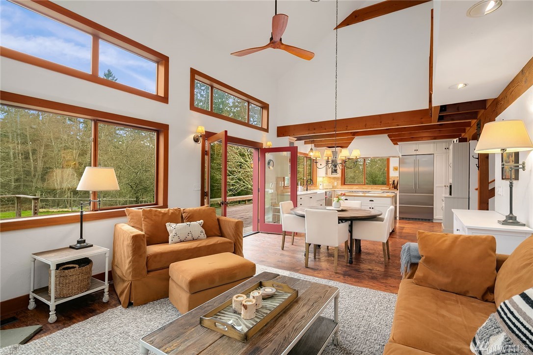Modern farmhouse on 14+ acres of open meadows & woodlands. Gracious porch entry welcomes you into the perfect floor plan; luxurious master on the main with access to private patio, hot tub, outdoor shower & gas fire pit, open kitchen/living/dining with French doors to deck overlooking your private paradise, 2 bedrooms & full bath up. New high-end appliances, farmhouse sink and flooring throughout. New 3-car garage with huge studio space above. Cozy cottage will delight your guests. Perfection!