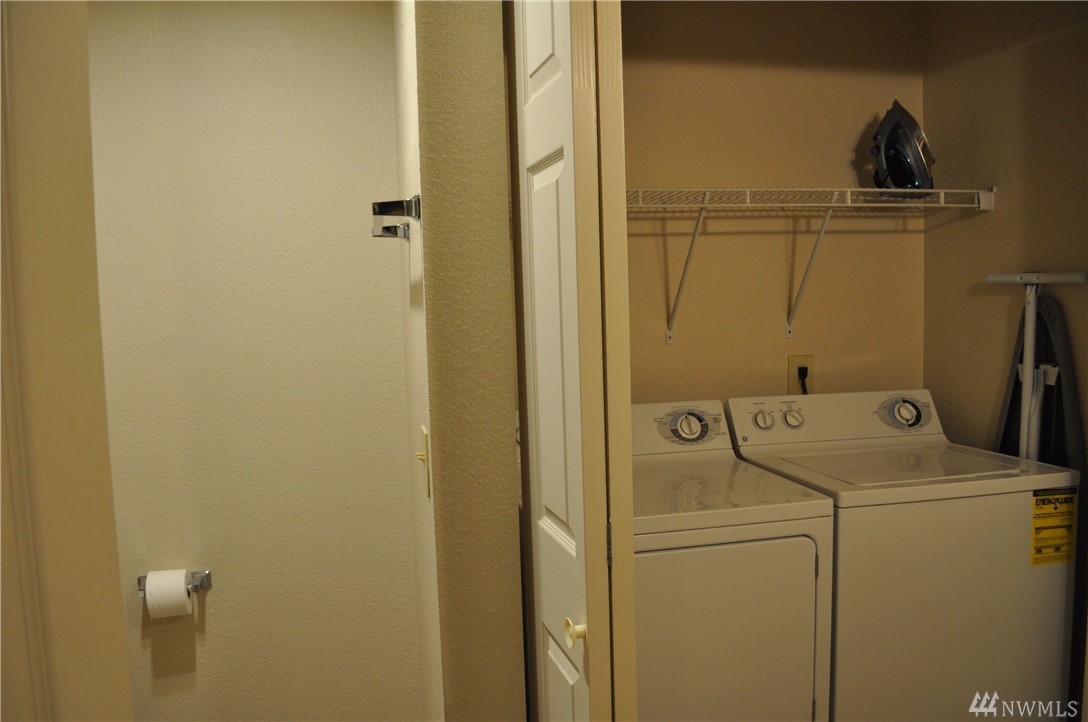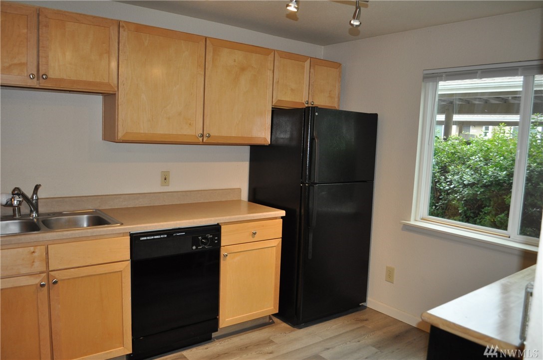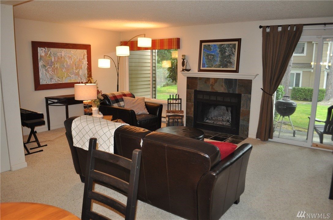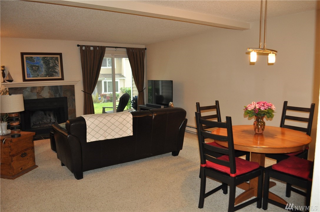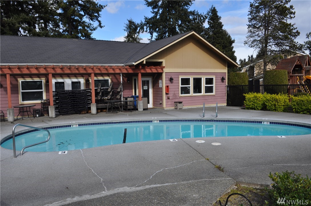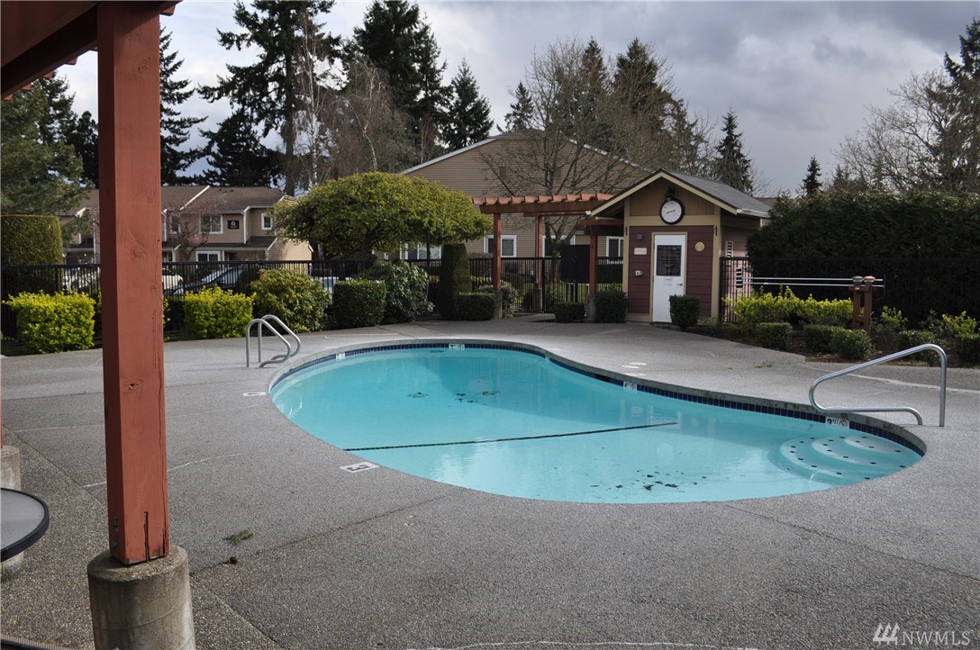 Looks new...Beautifully maintained & several updates! Great layout spacious open living room w/wood burning frpl & frml dining room. Big kitchen w/room for seating or island. The mainfloor has new laminate in entry kitchen and charming powder room. Slider out to private patio to BBQ and green space. Big Master suite w/2 sinks & walk in closet, full size W/D in the bathroom closet. Sunny 2nd bedroom upstairs. LOADs of storage closets 2 parking spaces in front + Pool, club house, landscaping...