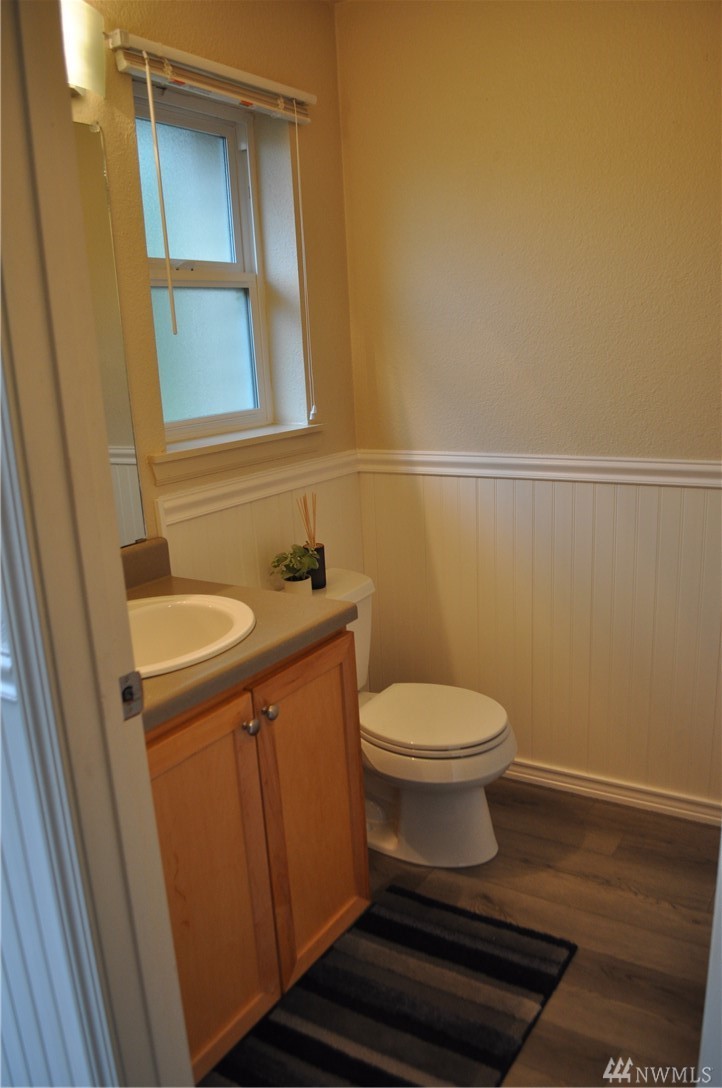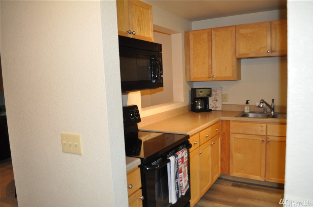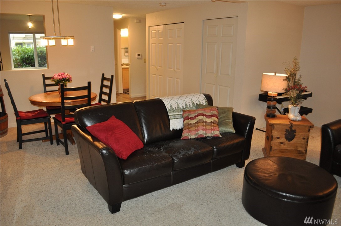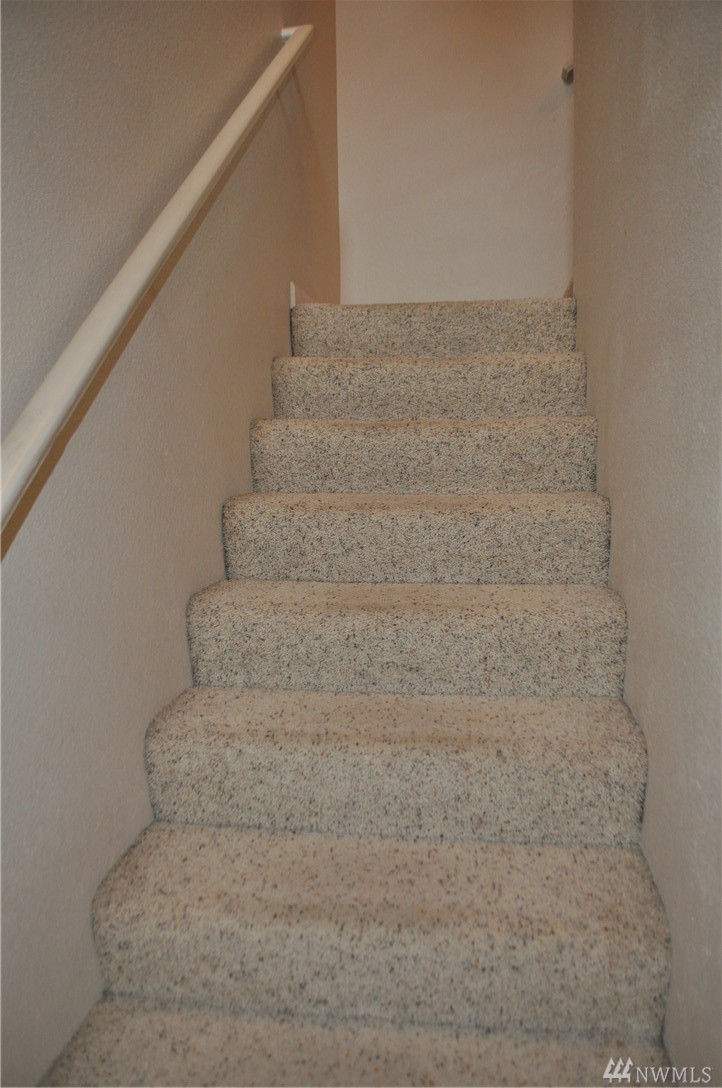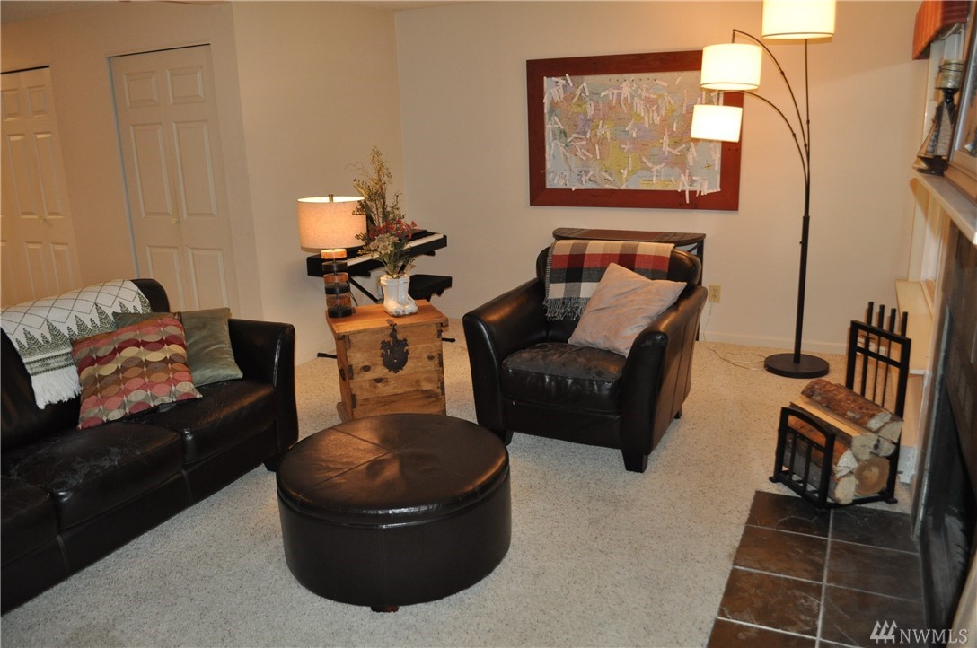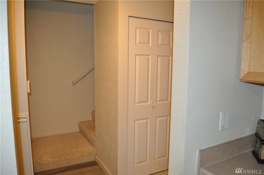 Looks new...Beautifully maintained & several updates! Great layout spacious open living room w/wood burning frpl & frml dining room. Big kitchen w/room for seating or island. The mainfloor has new laminate in entry kitchen and charming powder room. Slider out to private patio to BBQ and green space. Big Master suite w/2 sinks & walk in closet, full size W/D in the bathroom closet. Sunny 2nd bedroom upstairs. LOADs of storage closets 2 parking spaces in front + Pool, club house, landscaping...