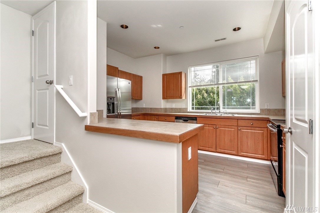 What an amazing location! Just across the street from Highline Community College you'll find this fully remodeled townhouse. This home offers 3 bedrooms, including a mater bedroom with private bathroom. Spacious living area with gas burning fireplace and private balcony. Attached garage plus a 2nd garage detached in the back. All new flooring and paint throughout. Stainless steel appliances in kitchen.