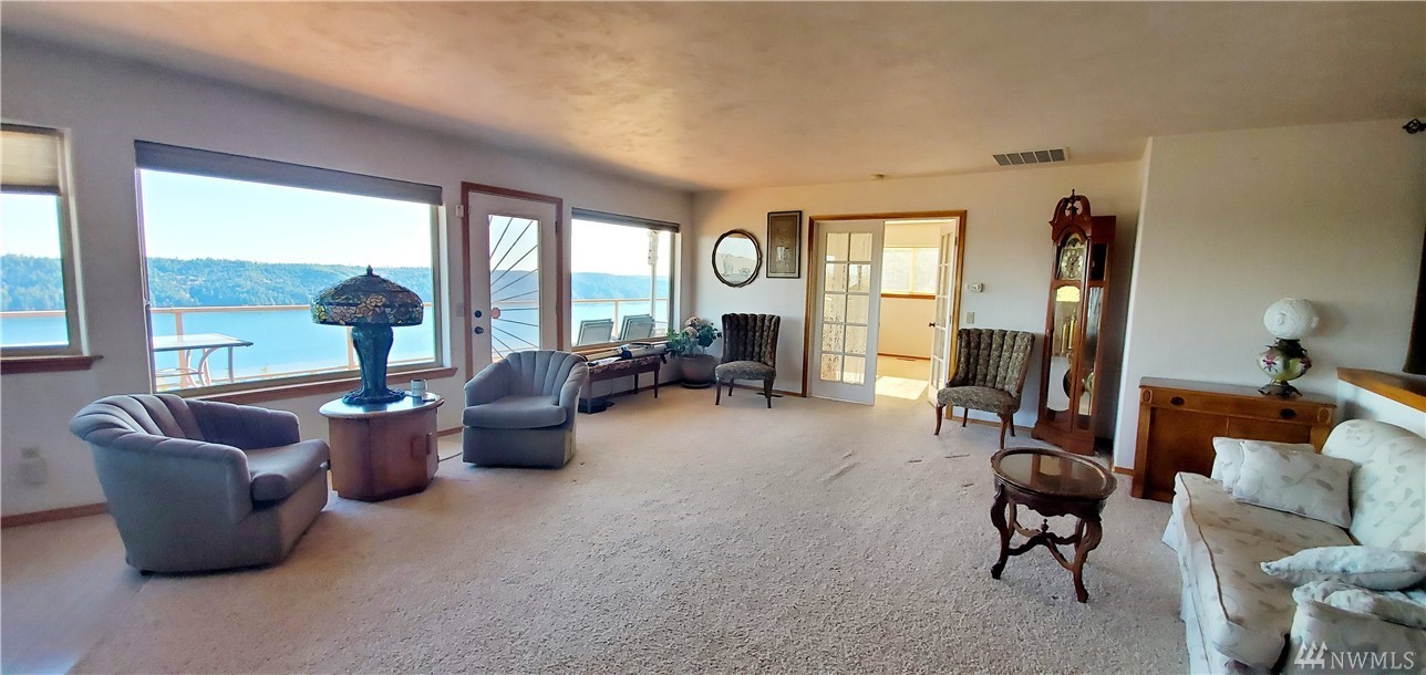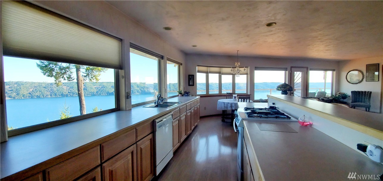 This view! It's amazing! Colony Surf offers some great amenities private swimming/fishing lake, picnic area, Olympic size pool, clubhouse, tennis courts, trails, boat launch and beach area. This home offers a large open layout, 2 kitchens, great room, family room, finished basement with spa room, large laundry room, finished room could be used as 4th BR. Detached garage has small kitchen/bathroom area. Fenced garden area. Beautiful views of the Canal and mountains! Come take a look at this one!