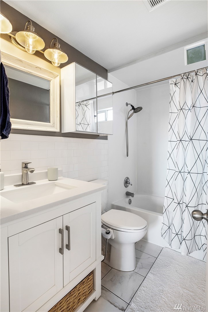 Welcome home to Westwood one of the hottest areas in West Seattle! Remodeled 3 bd, 1.75 ba home has striking mountain & territorial views. Main floor living room, updated kitchen w/quartz counters & stainless appliances w/ 2 spacious bedrooms & full bath. Finished basement: large family room, 3rd bd, 3/4 ba, generous laundry room & substantial flex space currently used as a wine room. Enjoy the mature fruit trees from the privacy of your fully fenced yard which also includes detached garage.