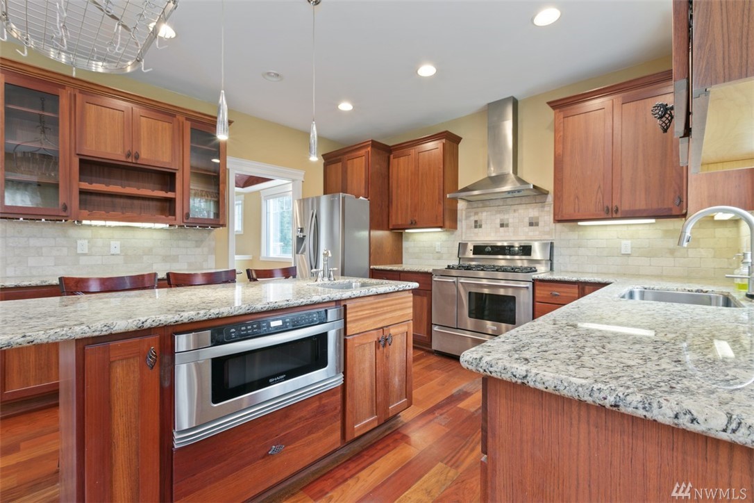 {STUNNING CRAFTSMAN STYLE HOME} in small gated community. Custom quality & rare floor plan makes this one of a kind! Special features include~but aren't limited to~Brazillian Cherry hardwoods, Venetian plaster accents, Slate gas f/p in LR, French doors to den/office, painted millwork, & 9 ft. ceilings. Kit. boasts granite, SS appliances, 5 burner gas s/t, & family room! Luxurious MSTR w/ balcony & 5 piece BTH~huge walk-in! Fenced bkyd, Generac system, detached shop, car lift, RV hook-up & more!