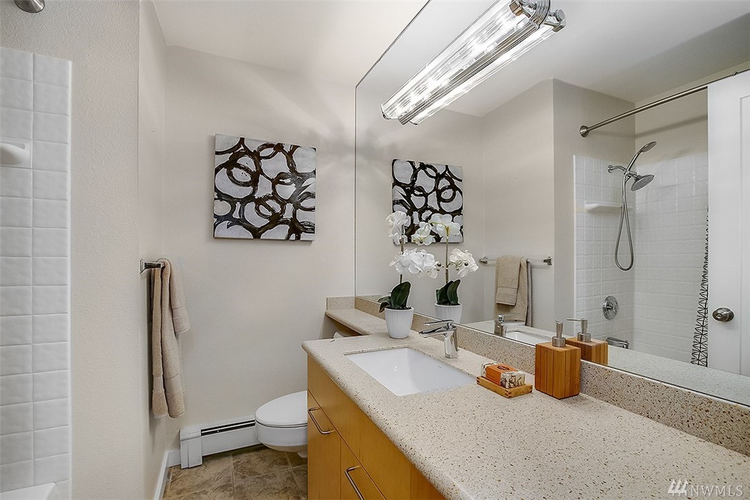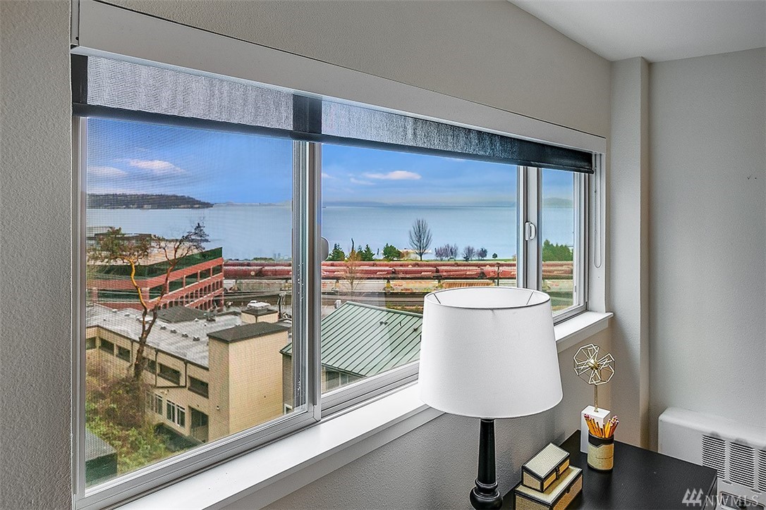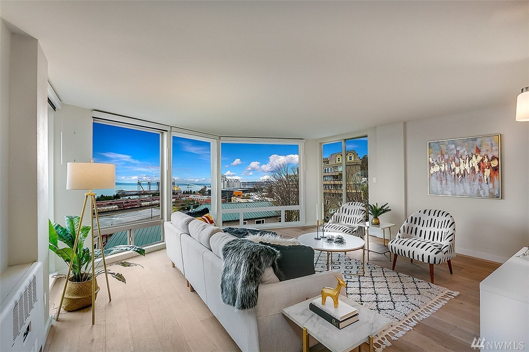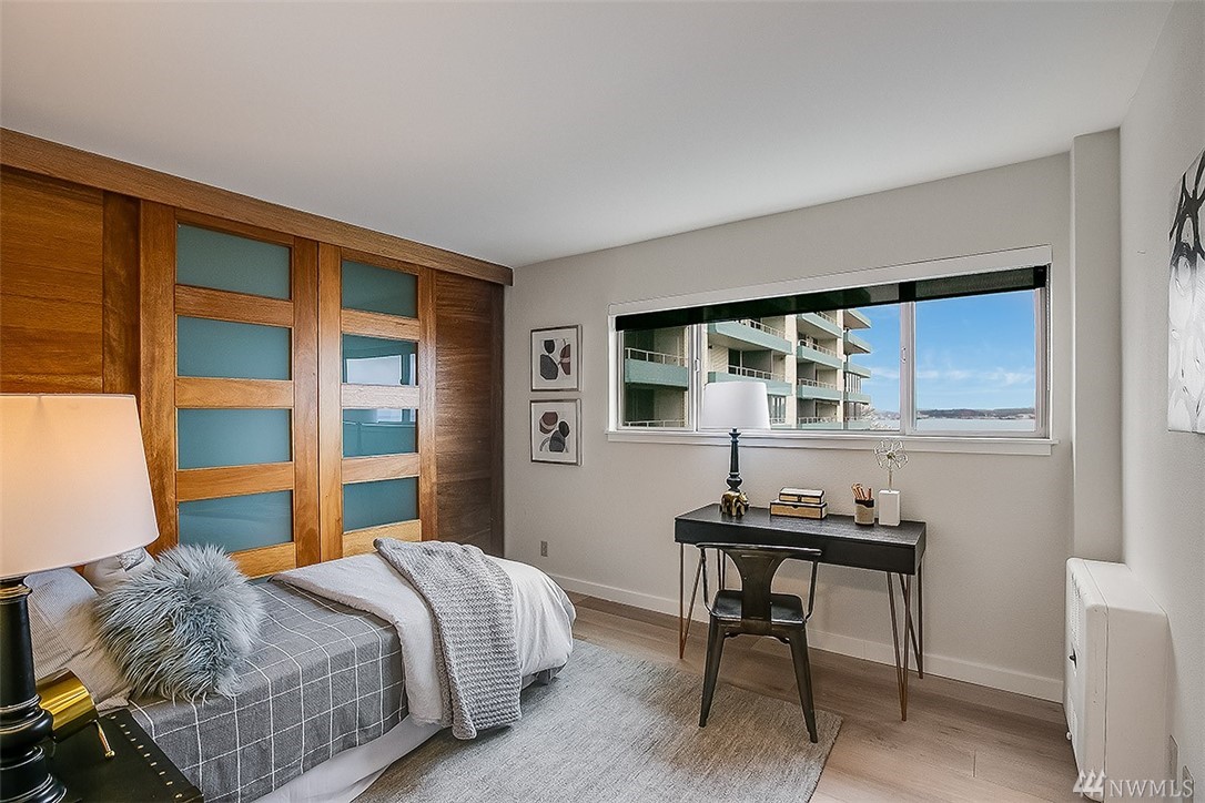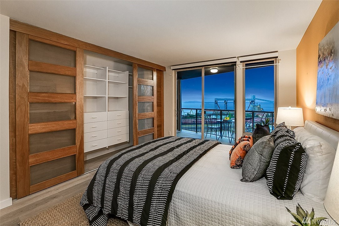 Style, space & stunning Sound views from this light-filled remodeled Queen Anne flat. Amazing private deck, beautiful wide-plank floors and mod kitchen featuring glossy cabinetry, stainless appl & quartz counters. The cool mid-century vibe is carried into the master & guest suites with custom-crafted wood & glass closet doors. Imagine relaxing sunsets as ships sail in and out of the bay. Quiet pet-friendly bldg w/exercise rm & underground prkg. Near Expedia, SLU, Seattle Ctr, shops & nightlife.