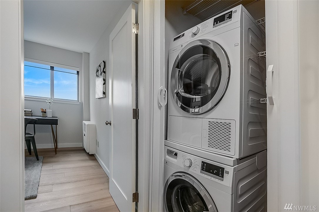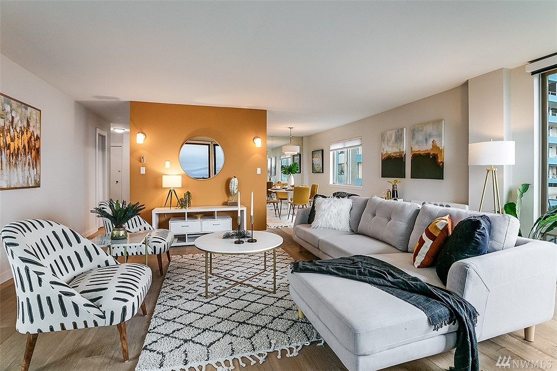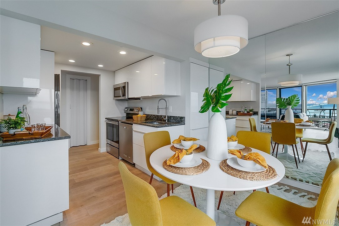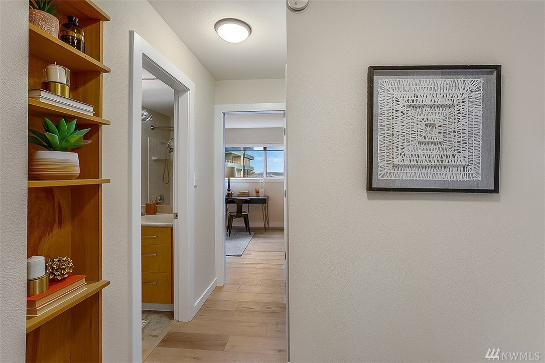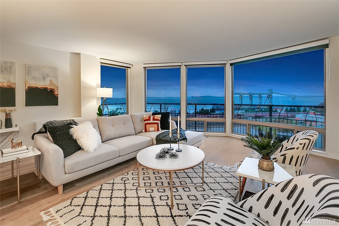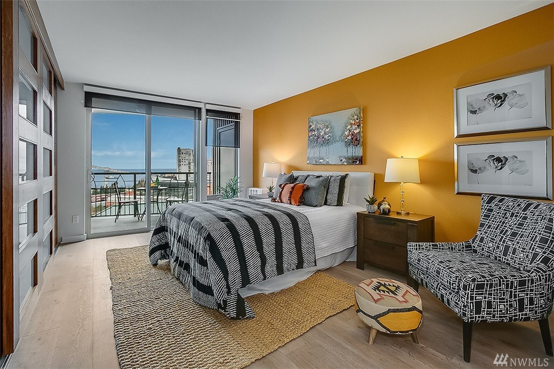 Style, space & stunning Sound views from this light-filled remodeled Queen Anne flat. Amazing private deck, beautiful wide-plank floors and mod kitchen featuring glossy cabinetry, stainless appl & quartz counters. The cool mid-century vibe is carried into the master & guest suites with custom-crafted wood & glass closet doors. Imagine relaxing sunsets as ships sail in and out of the bay. Quiet pet-friendly bldg w/exercise rm & underground prkg. Near Expedia, SLU, Seattle Ctr, shops & nightlife.