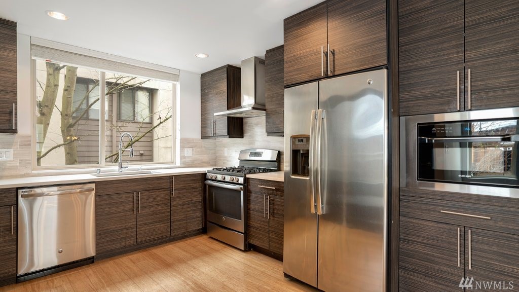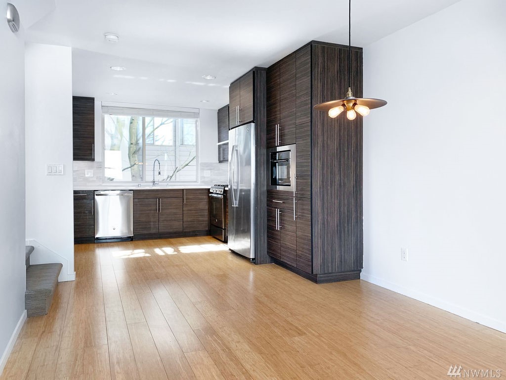 4-Star Built Green Ballard townhome just blocks from all Ballard has to offer! Spacious rooftop deck w/ gas fire table & sweeping territorial views. Beautiful modern finishes including stainless appliances, quartz counter tops, gas range, & bamboo floors. Both upper level bedrooms have private baths. Lower level room could be a 3rd bedroom or private study. Easy commuting via bike, bus, or the MS connector. Farmers Market, craft breweries & all the best restaurants mere blocks away! No HOA Dues.