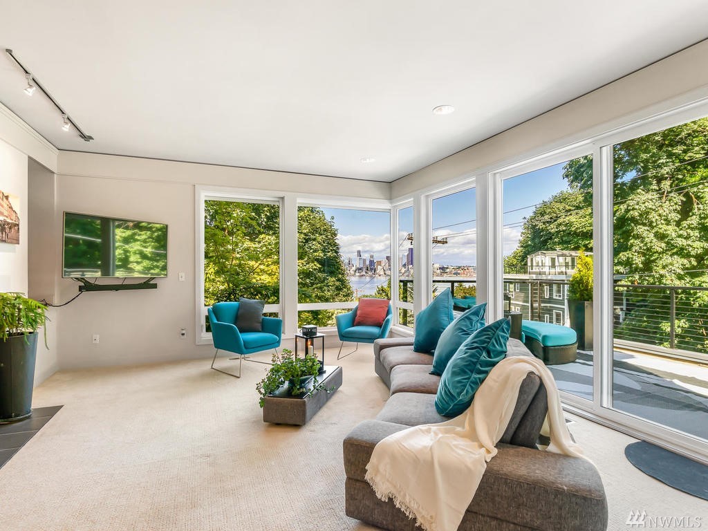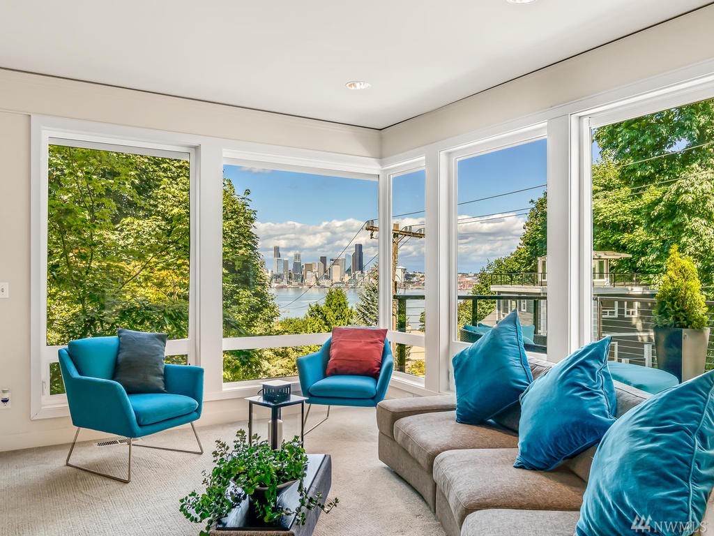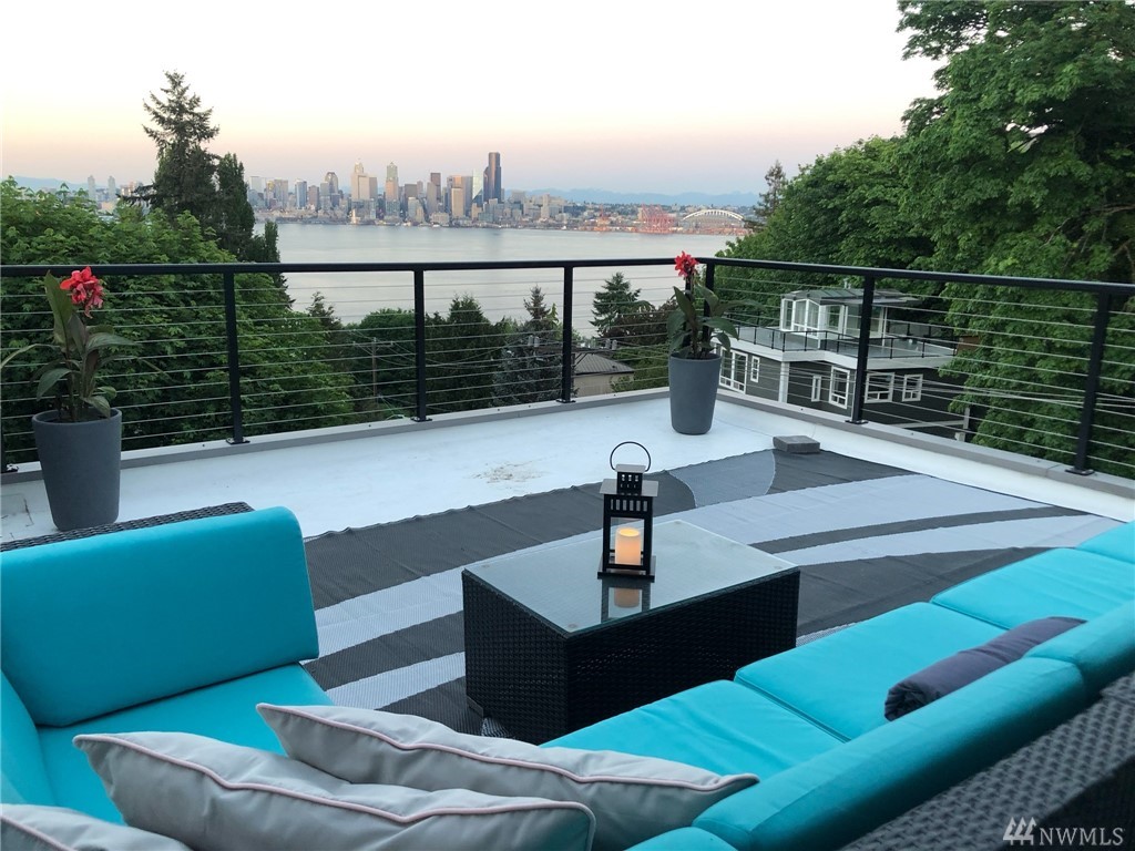 Stunning contemporary home with amazing views from every level & just steps to Alki Beach & water taxi for easy commute downtown. Spacious "wide open" floor plan (4+bed,3 bath) offers dramatic window walls throughout that capture city, mountain & bay views, 3 private decks (spectacular roof top deck) are perfect for entertaining. Absolute pristine condition with designer upgrades & finish, truly incredible master suite like no other, large 2 car garage & prime location make this a Must See!