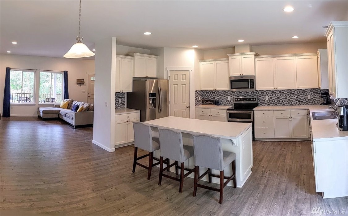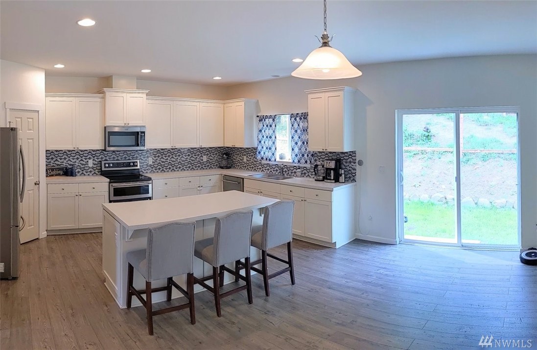 Newly built multigenerational home w/ TWO master bedrooms (1 on main), 2 additional bedrooms upstairs, and bonus loft space. Large fenced lot w/ spacious dog run. Gourmet kitchen w/ large island, walk-in pantry, soft close cabinets, and stainless steel appliances. 9 ft ceilings and brand new laminate flooring on main. Covered front porch. Room for backyard chickens and big garden. Smart thermostat for heating and A/C. Home fully wired w/ low voltage. 2 car garage. Shared well.