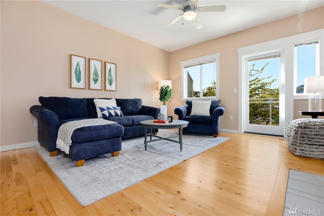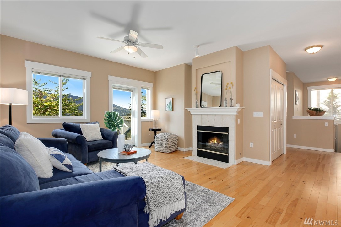 Take in the stunning mountain views from this happy light & bright 1,692 sq ft 3 bed reverse duplex style townhome. This rarely available & sought after floor plan features multiple outdoor spaces, attached 2 car side by side garage, master on main, large lower level bonus room, gas fireplace, a desirable community with a well run HOA, and a fantastic location that is just moments to shopping, restaurants, and I-90 - all at an incredible value. Highly rated Issaquah Schools. No Rental Cap.