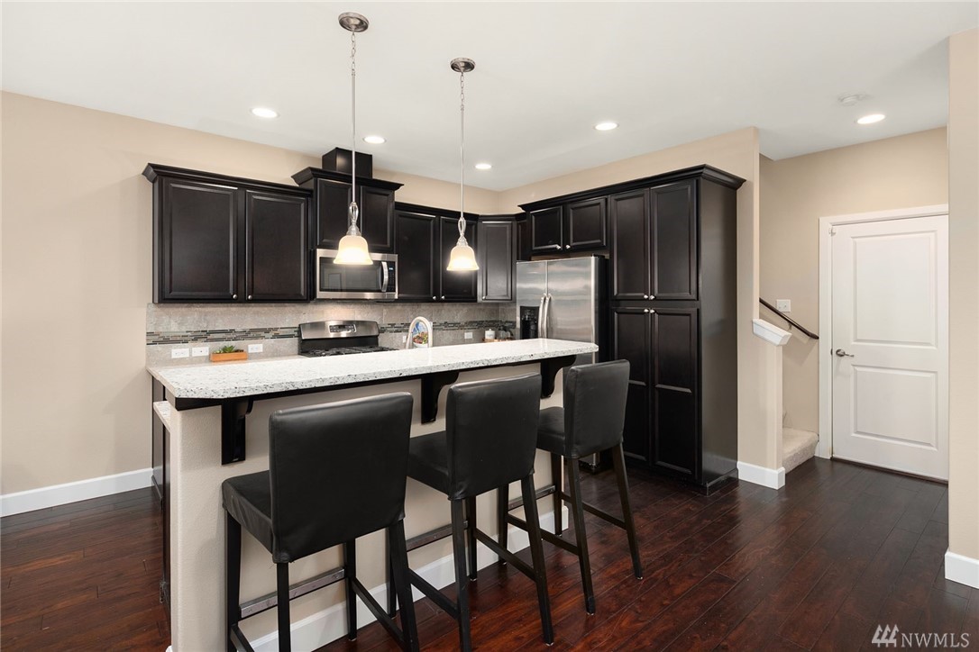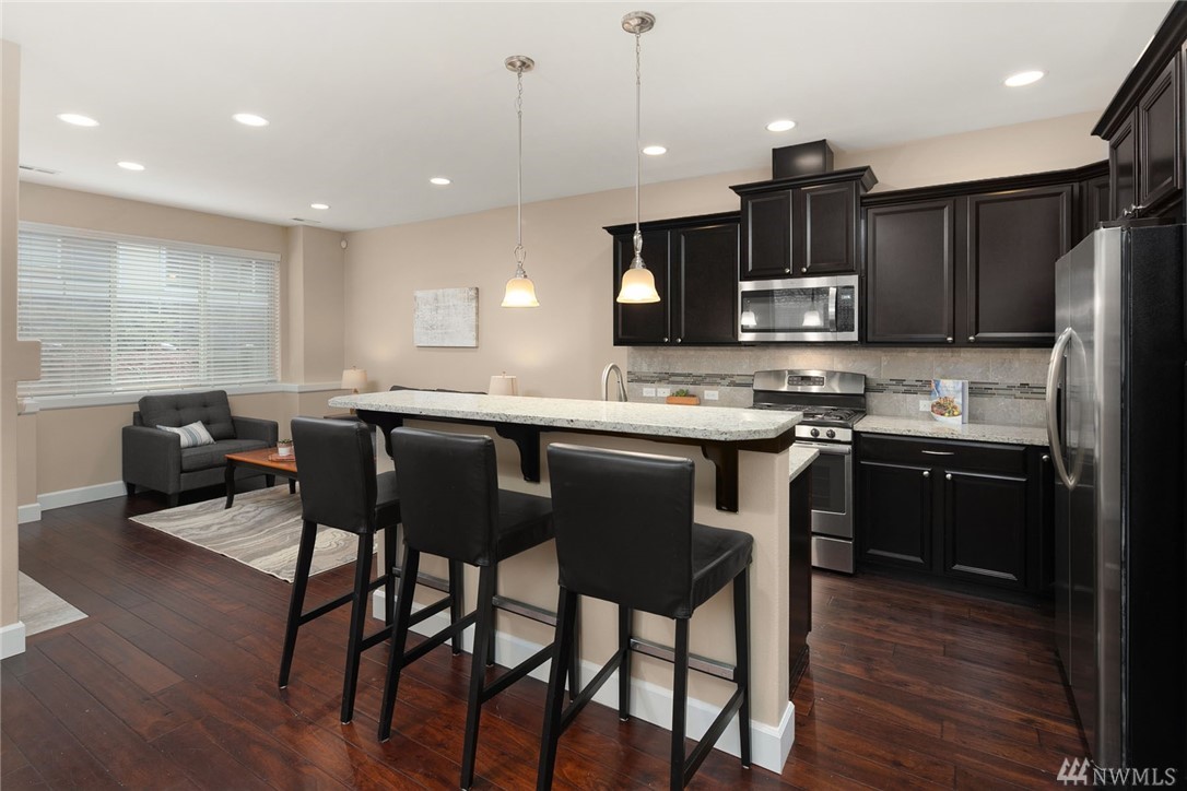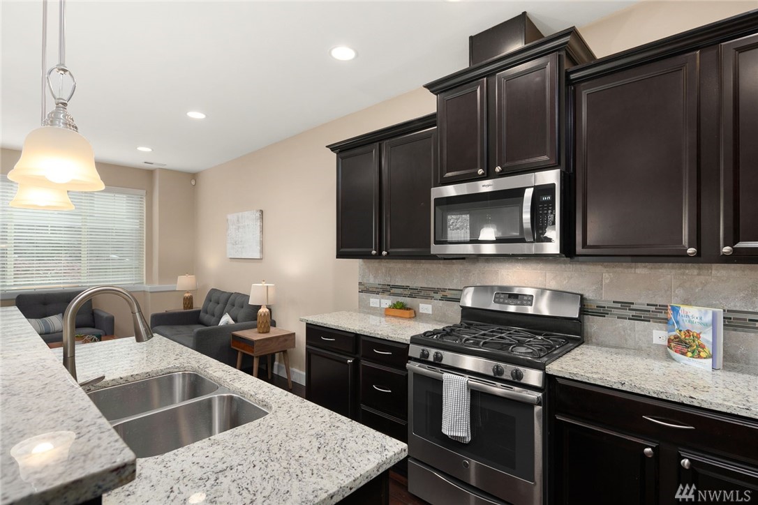 Come enjoy this wonderful end unit townhome, built in 2013. This light & bright home has 3 Bdrms, 2.5 Baths, 2,032 sqft of living space & a large 2 car garage. The main floor includes dining room, living room & kitchen. The kitchen features high end SS appliances, gas cooking, quartz counters, tile backsplash, sit-up counter & soaring ceilings. The large master has an oversized closet & master en-suite with double sinks. The 3rd floor features a large bonus room, a perfect flex space!
