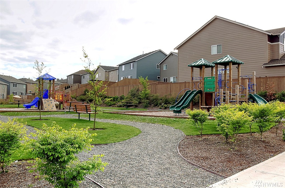 This well kept like new home is move-in ready and is simply a must see! Spacious kitchen opens to large family room & dinning area with pendent lights & wood finish laminate floors. Kitchen has gas range, stainless steel appliances, wood finish laminate flooring & rich wood cabinets. First floor Office/Den. Finished garage & tankless hot water heater. Comes w/ all appliances & blinds. Neighborhood park, shopping, restaurants within walking distance. Easy freeway access & great schools! Hurry!