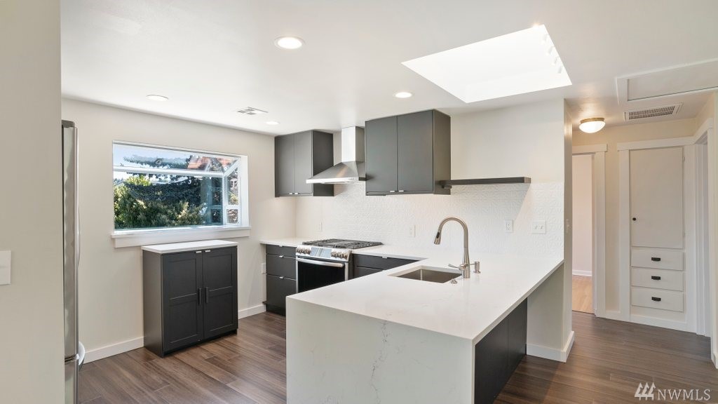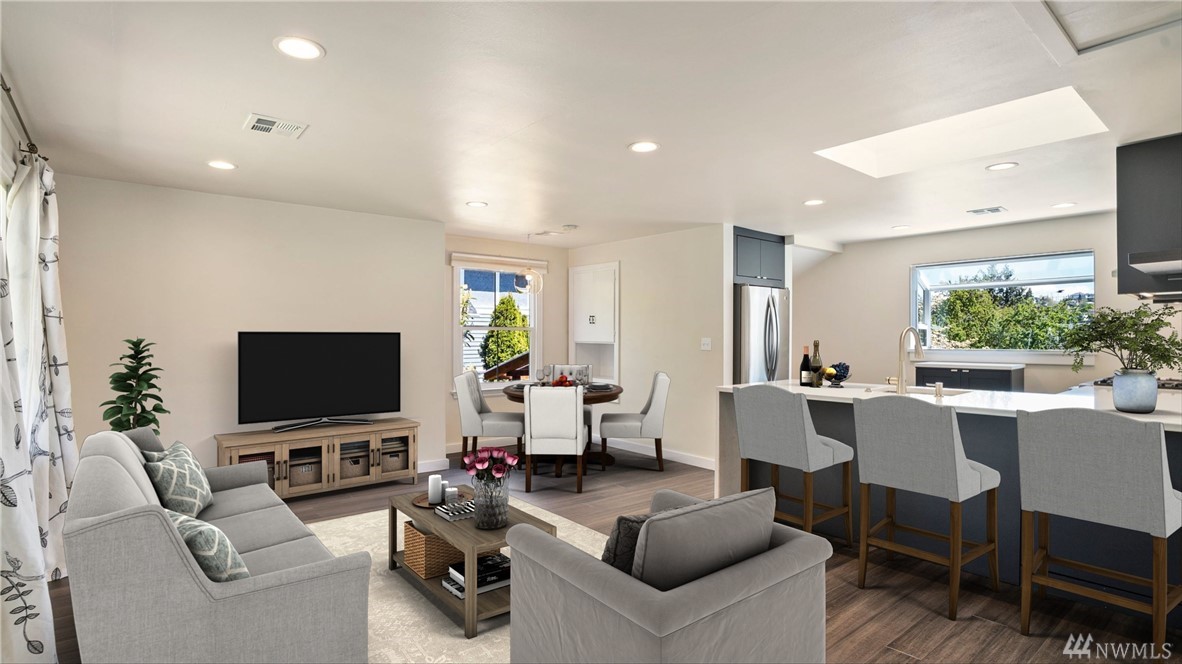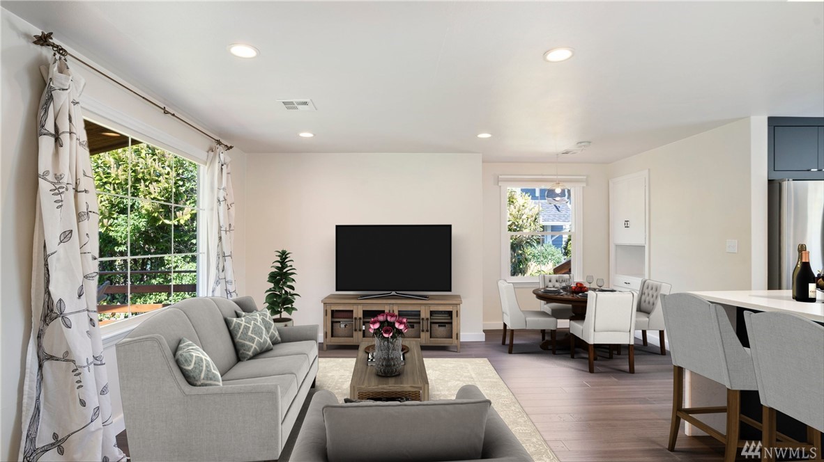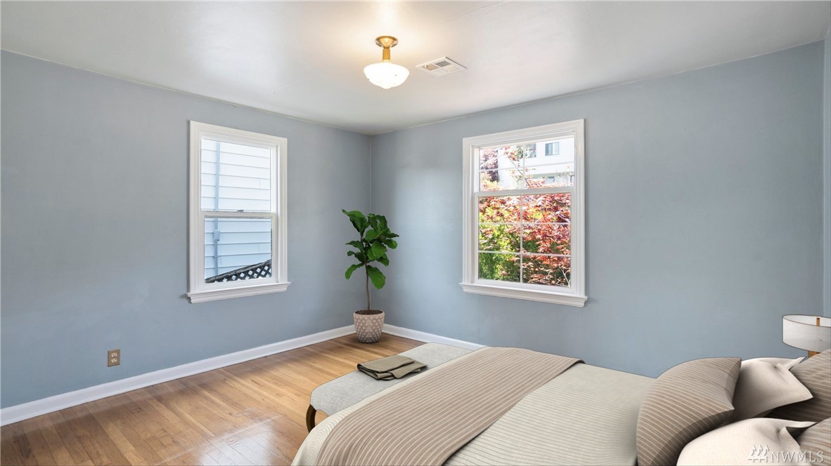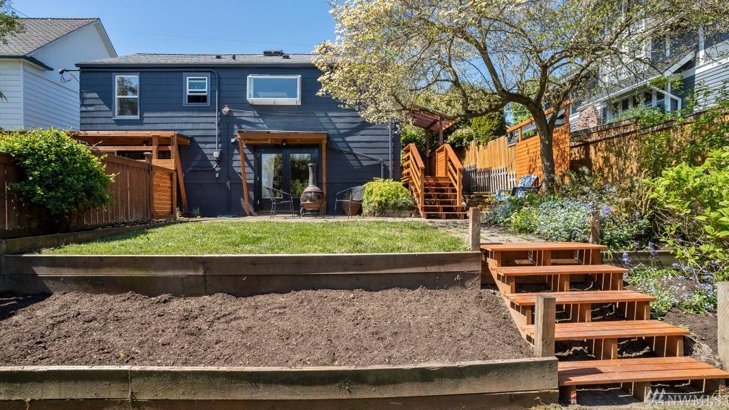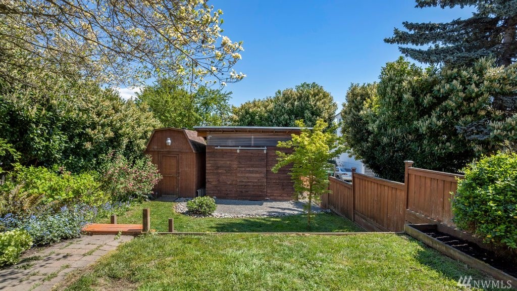 Bright Magnolia Cape Cod w/ perfect blend of era charm & modern updates. Open concept main level w/ bamboo floors, quartz countered kitchen w/ textured tile backsplash. Lower level w/ generous master suite & master bath w/ custom cabinets. French doors overlook fully fenced, entertainment-sized back yard. Lots of room to garden & mature fruit trees. 2 outbuildings + off street parking. Mins to Bayview park, Ballard, QA & Fremont. Easy bike ride DTWN or Ballard via Elliott Bay Trail + bus lines.