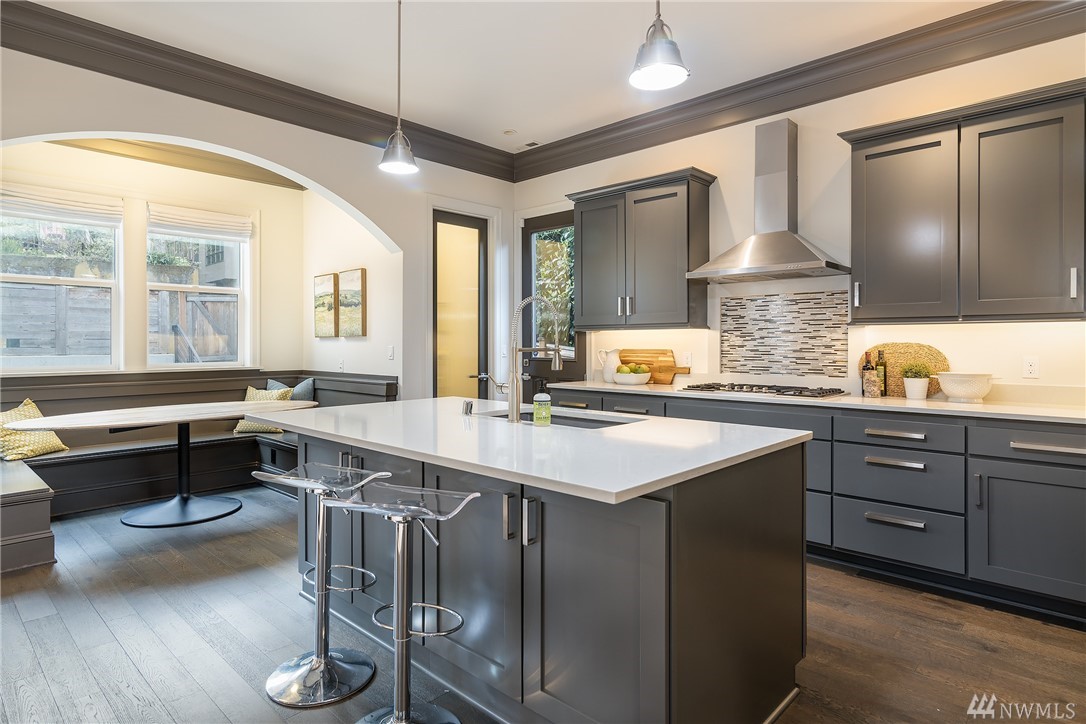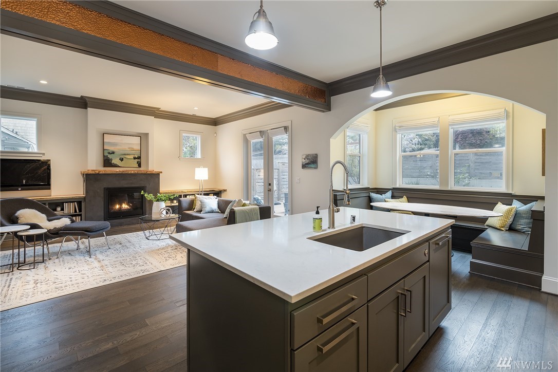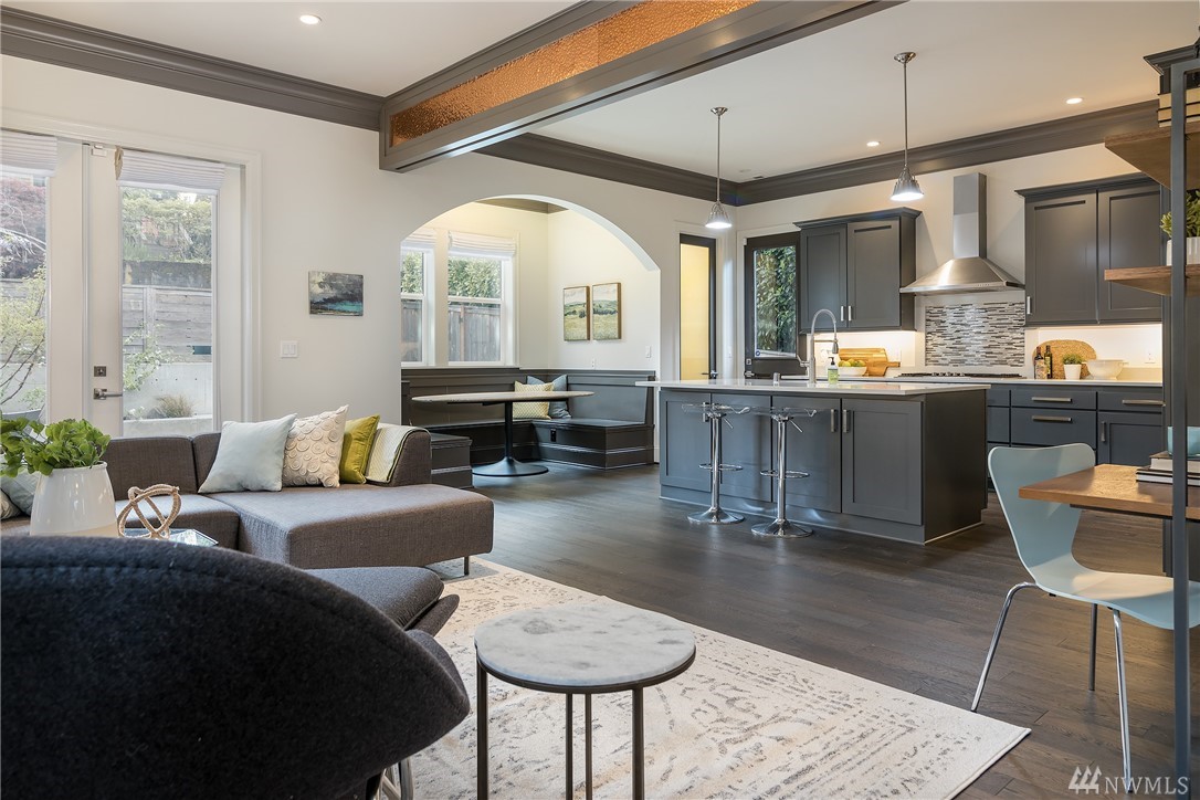 Stunning newer home in the heart of Bryant, walking distance to Met Market, U Village, UW, Children's, Light Rail & more. Wonderful blend of modern architecture combined w/natural elements. Elegant custom millwork, arched doorways, 10'ceilings, Stunning chef's kitchen w/quartz, high-end appliances & built in eat nook & opens to family room. 4 bdms on upper level, lavish master suite. Versatile lower level w/rec rm, bdrm & bath, Stunning backyard w/gas fire pit, deck & pergola. Walk Score 85