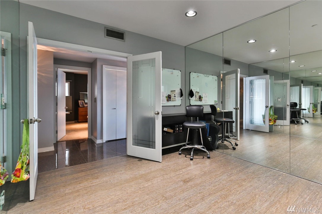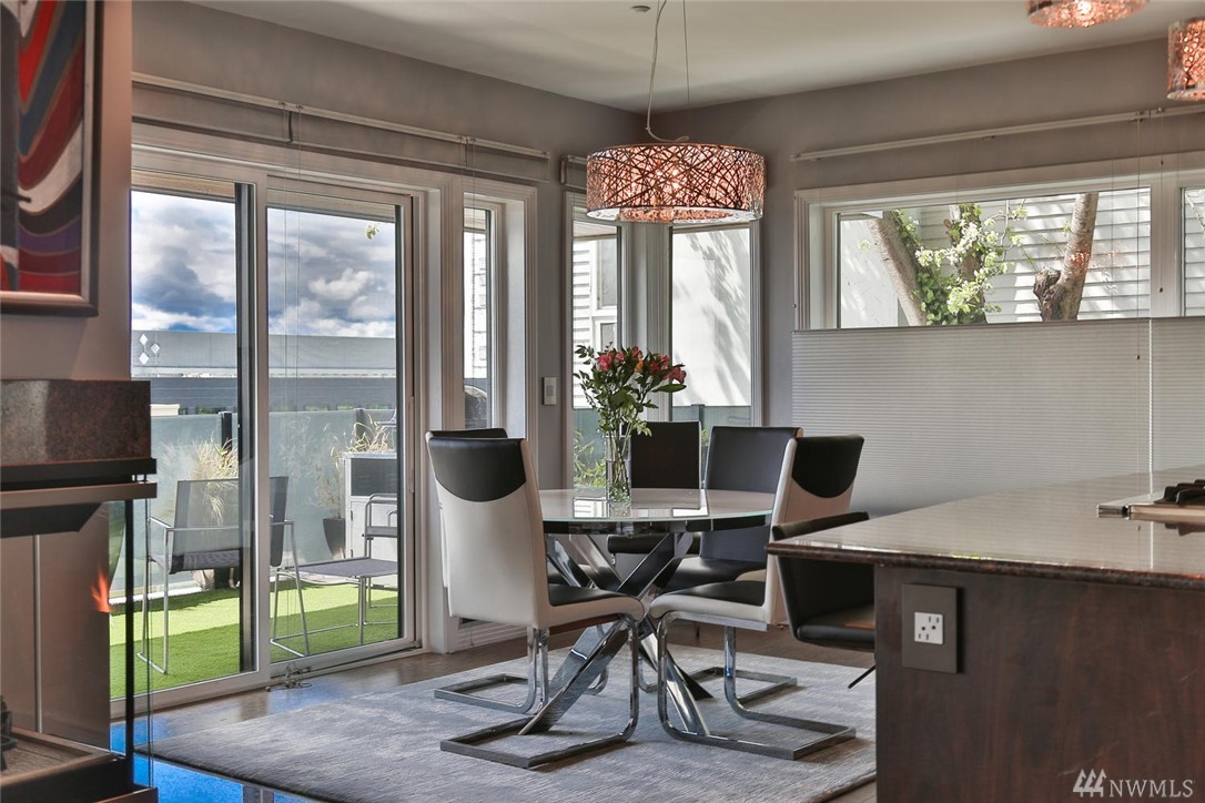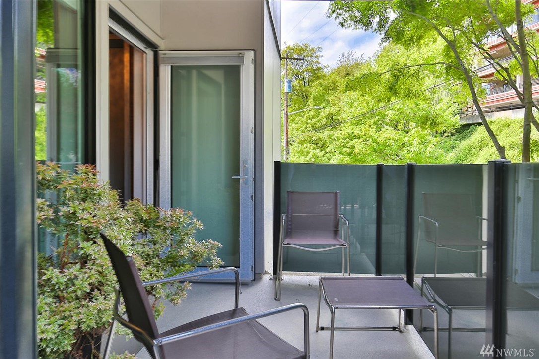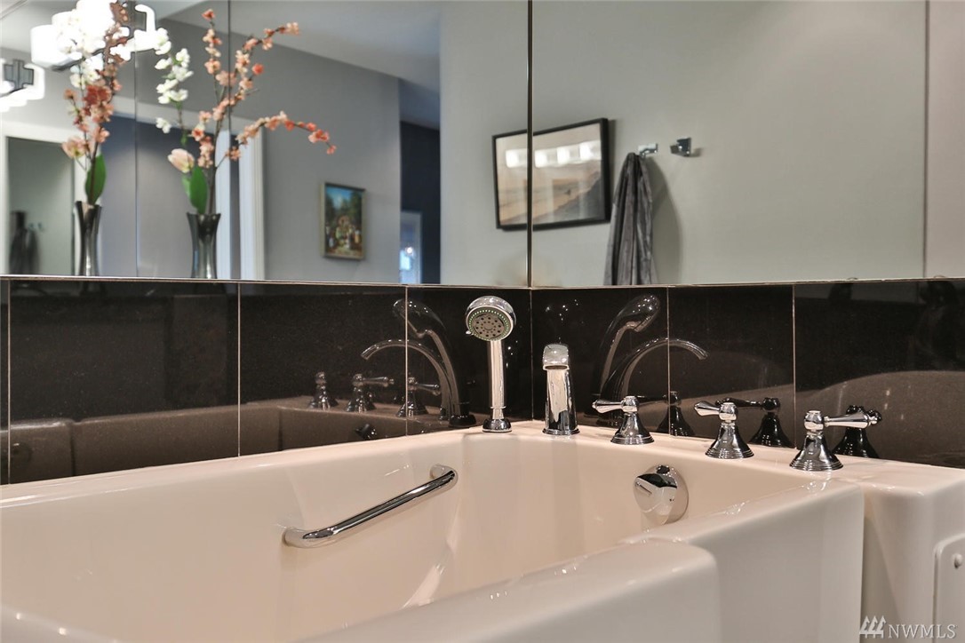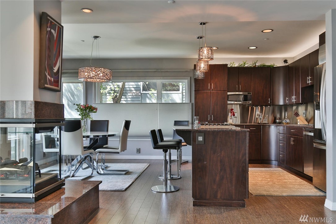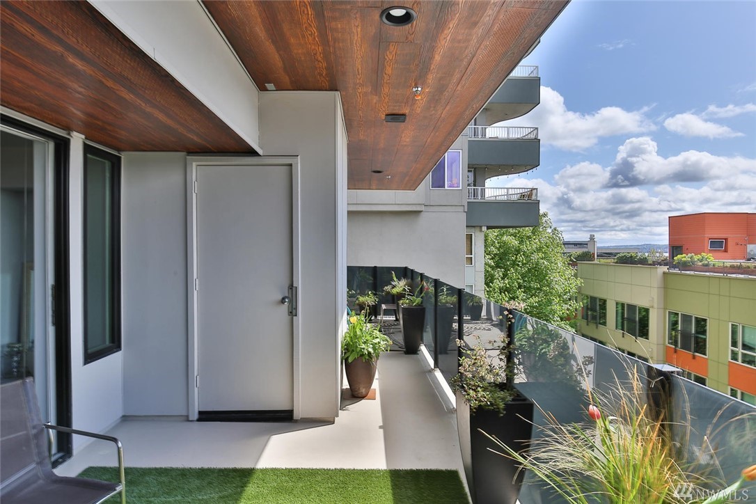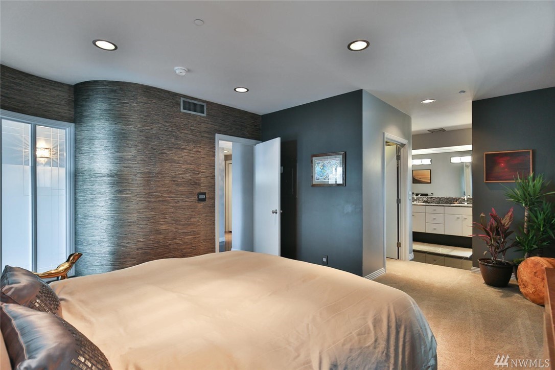 Enjoy expansive Sound, mountain, W. Sea. views in a spacious, light-filled, single-level home. Elevator opens into elegant granite-tiled entry. Open floorplan features beautifully remodeled kitchen w/new appl, lighting, & chic stainless backsplash. Master suite features WIC and spacious master bath w/recent upgrades. New hardwoods, carpet, tile, windows w/soundproofing, blinds, W/D, furnace, water tank & A/C. Own the whole floor incl 2 private decks and secure garage parking wired for your EV.