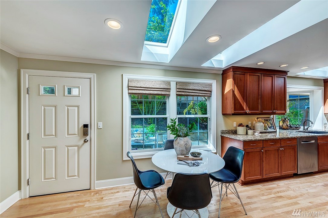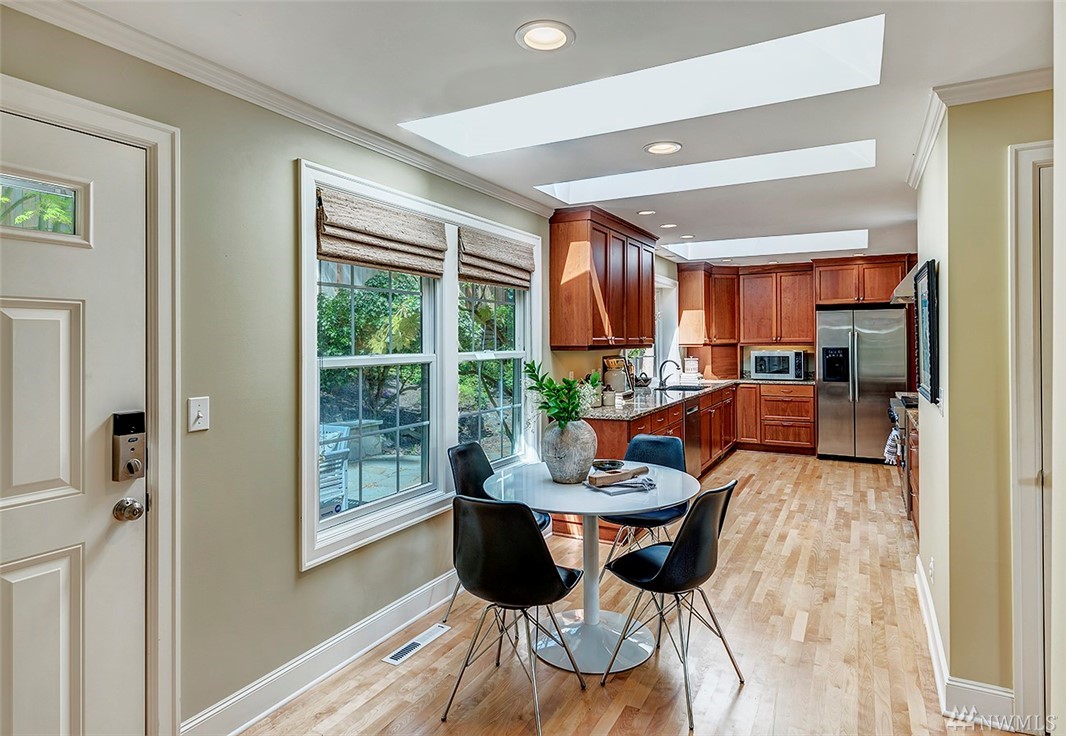 Ceramic Tile Hardwood Bath Off Primary Double Pane/Storm Window Dining Room Fireplace (Primary Bedroom) Security System Skylight(s) Water Heater