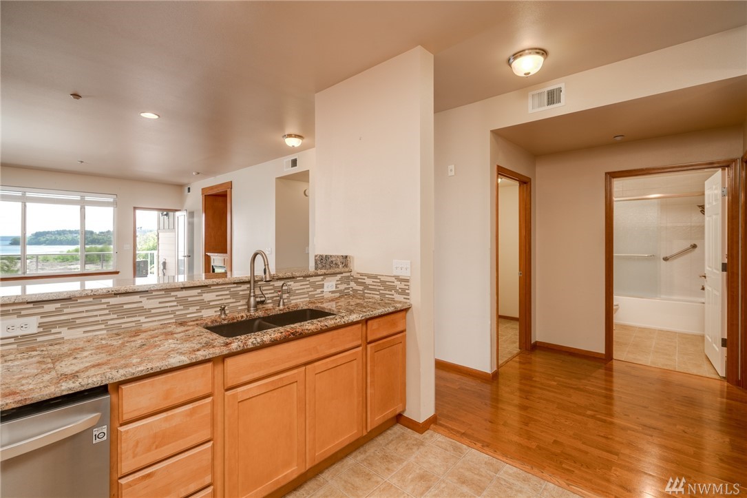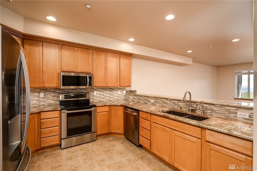 Sweeping views & high-end finishes best describe this top floor condo located in desirable Scenic View! This luxury condo features 11' ceilings, granite countertops, new tub & shower in both bathrooms, stainless steel appliances w/ under cabinet lighting, & fresh paint. Both the open concept kitchen & large master bedroom take advantage of the fantastic southern views! Enjoy coffee out on your private balcony while living the maintenance-free lifestyle. Individual garage & storage unit included!