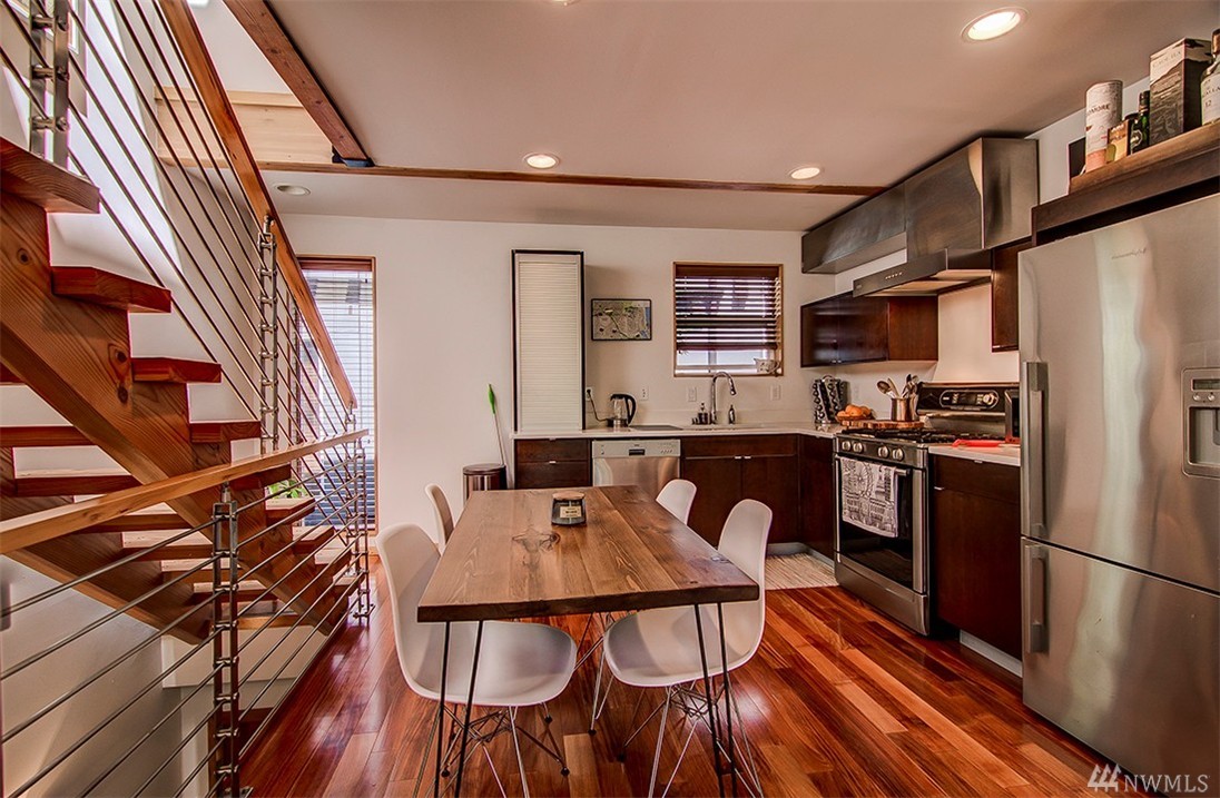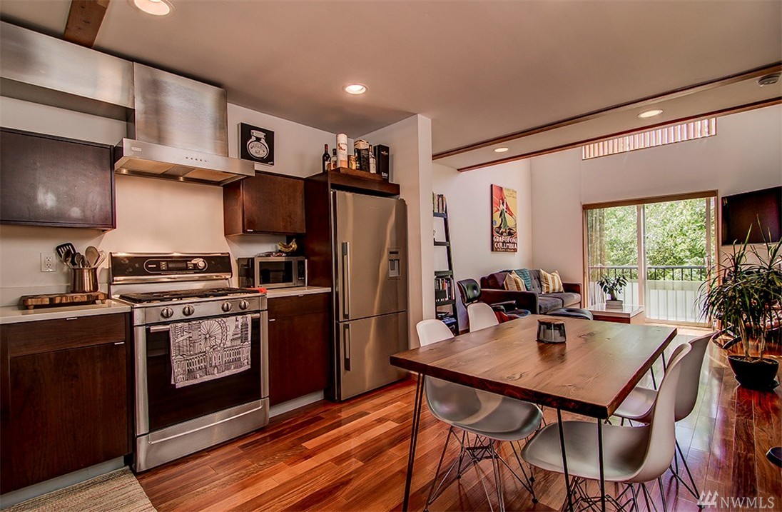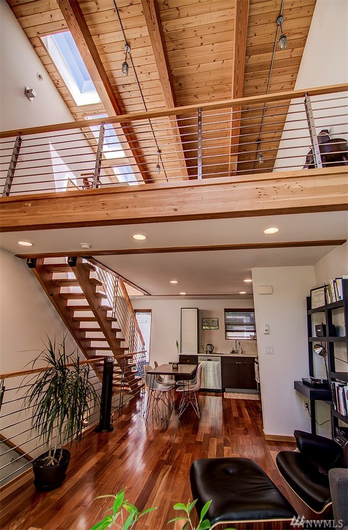 Modern, Sleek, and Sexy are your first thoughts upon entering this immaculate 2 Bed lofted TH in West Seattle. Featuring gleaming cherry wood floors, dramatic wood vaulted ceilings, pendant lighting, SS appliances, wood blinds, radiant floor heat, and large outdoor fenced living space for your garden or pet. Unpack and move in-then go hit the beach. 2 blocks from Westwood, ez DT access and your opportunity to move in while it is still affordable. Would make a great investment unit. No HOA's.