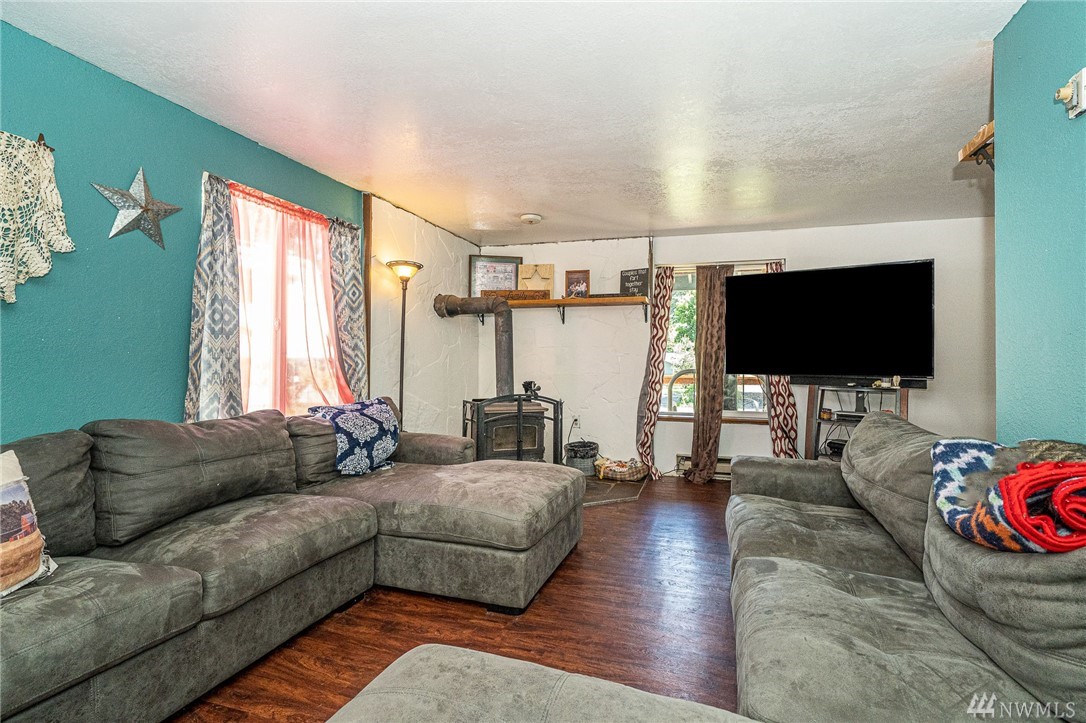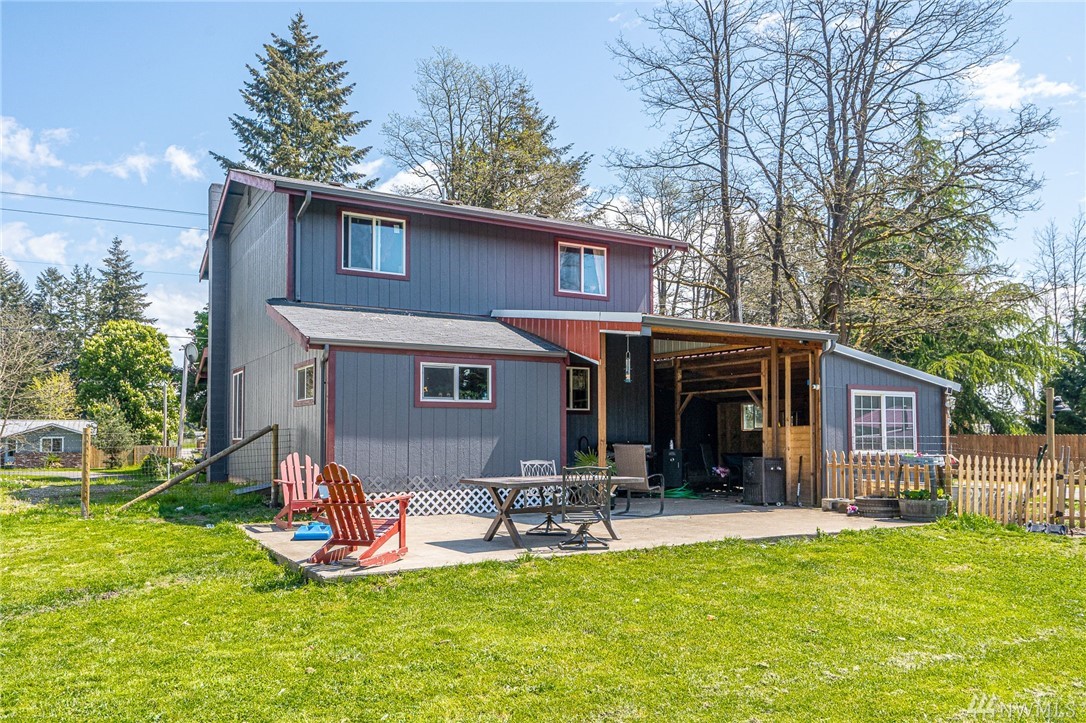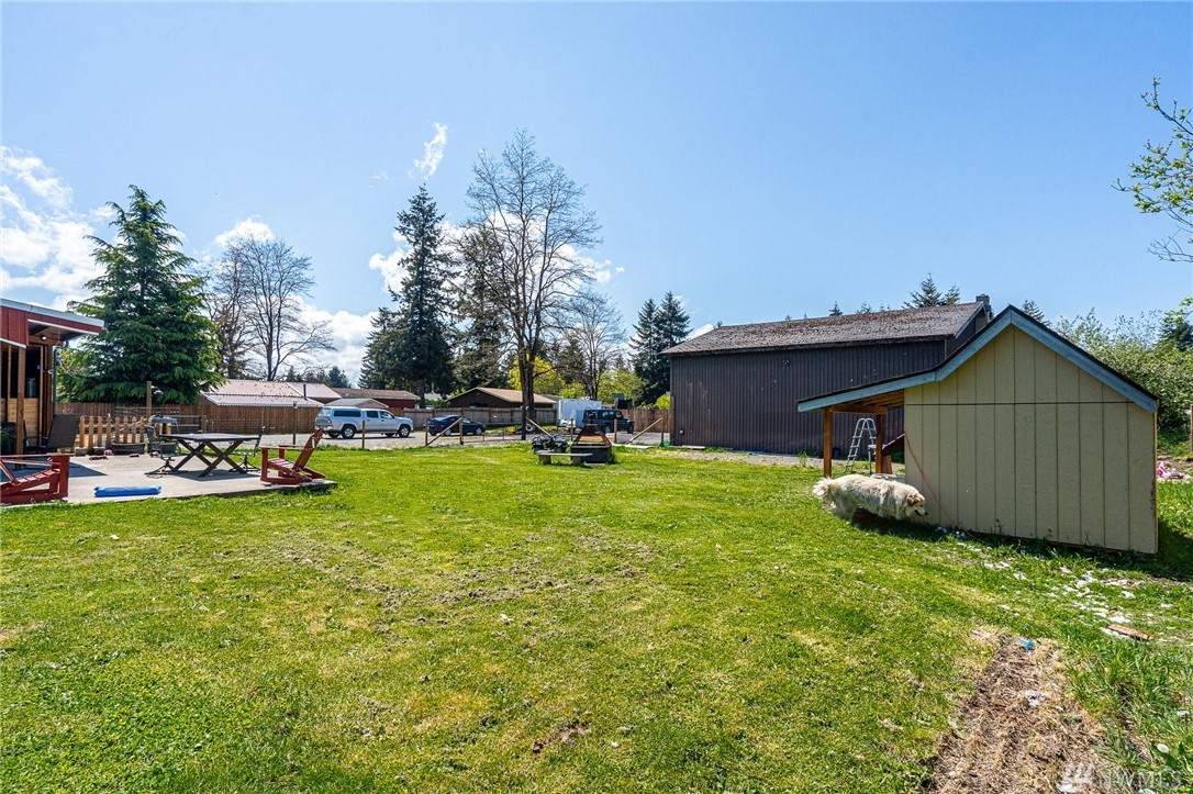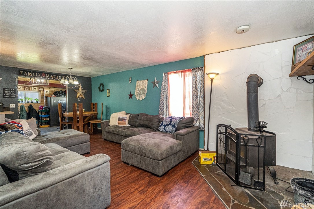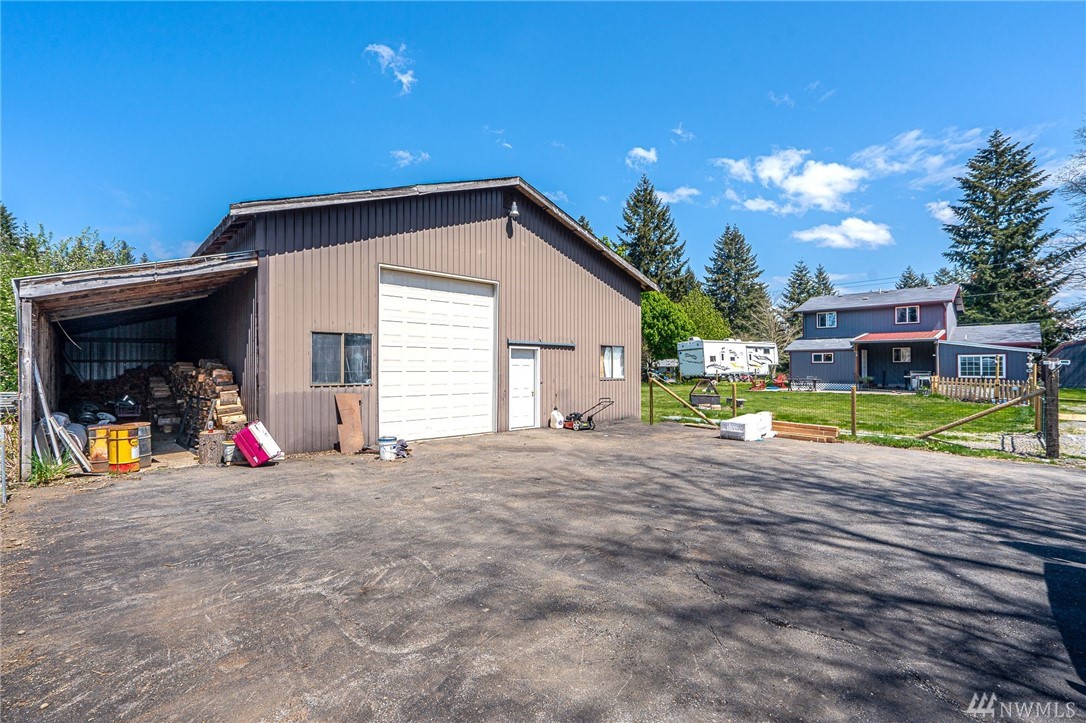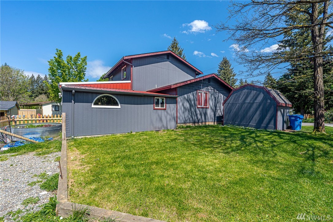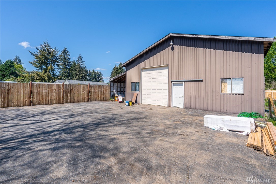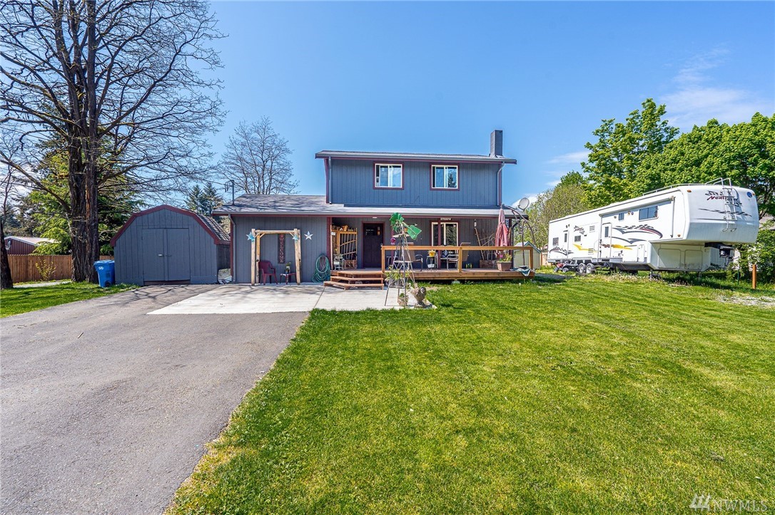 Two-story 3 bedroom w/den home w/detached 36 x 36 shop & 12 x 36 lean-too on large 0.46 acre lot w/RV parking. Attached garage was converted to living space. Partially fenced back yard. Recent upgrades incl ext & int of home painted, new gutters & vinyl insulated windows, siding, kit & bath cabinets & laminate floor in the LL & a new comp roof on home. Seller will install a new roof on the shop before closing the sale. Home has basebd htrs & wood stove to keep the home comfy during the winter.