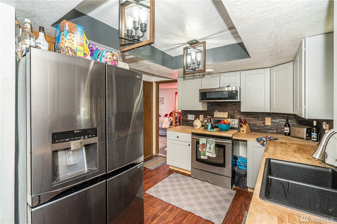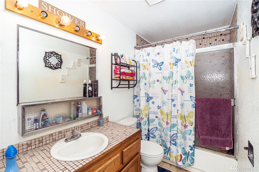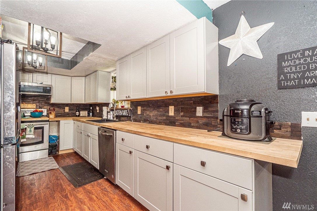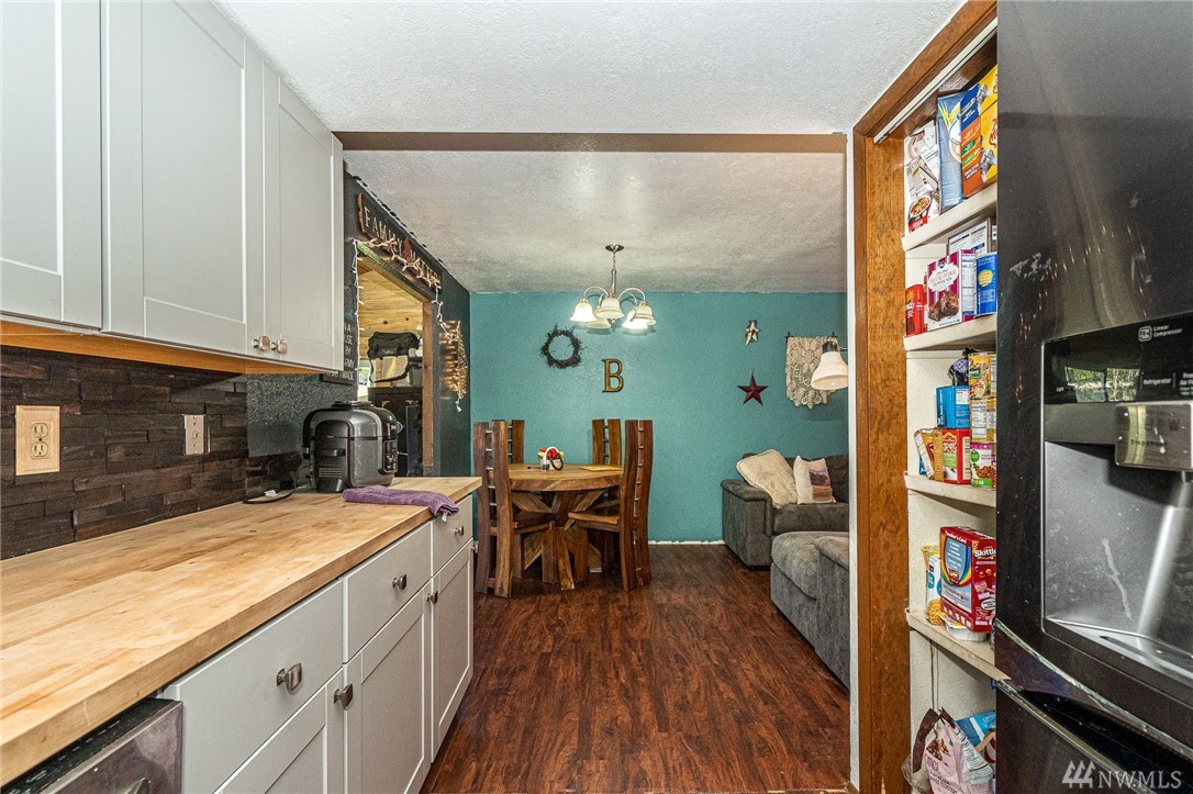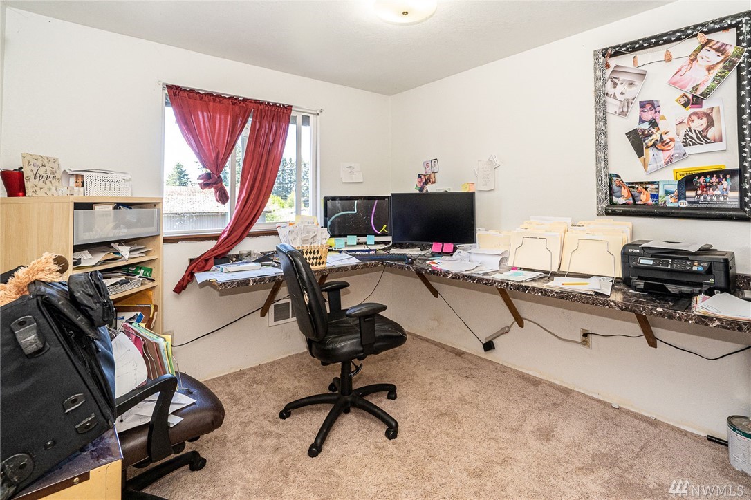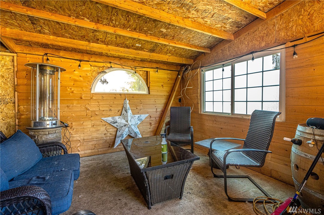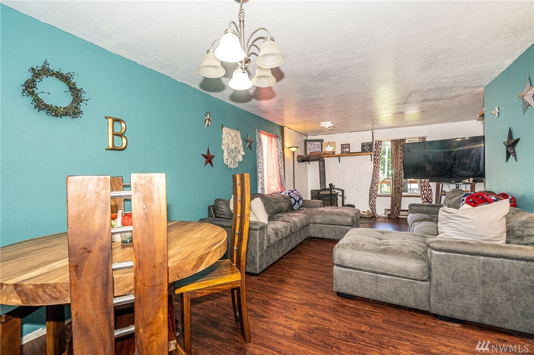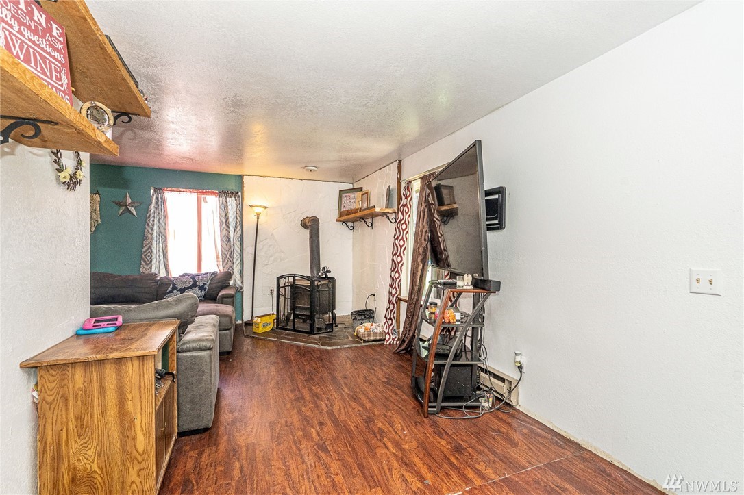 Two-story 3 bedroom w/den home w/detached 36 x 36 shop & 12 x 36 lean-too on large 0.46 acre lot w/RV parking. Attached garage was converted to living space. Partially fenced back yard. Recent upgrades incl ext & int of home painted, new gutters & vinyl insulated windows, siding, kit & bath cabinets & laminate floor in the LL & a new comp roof on home. Seller will install a new roof on the shop before closing the sale. Home has basebd htrs & wood stove to keep the home comfy during the winter.