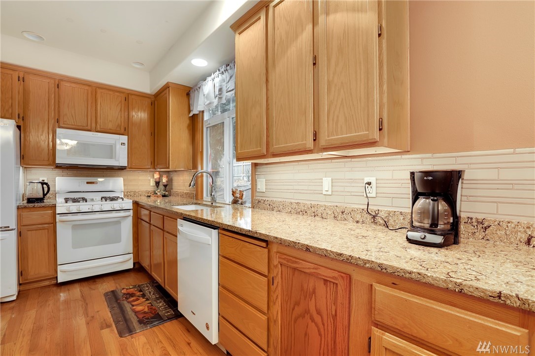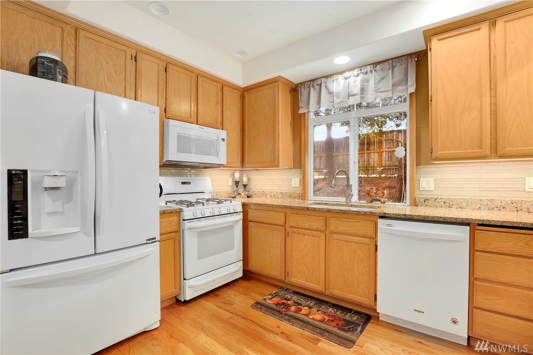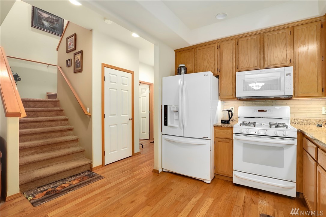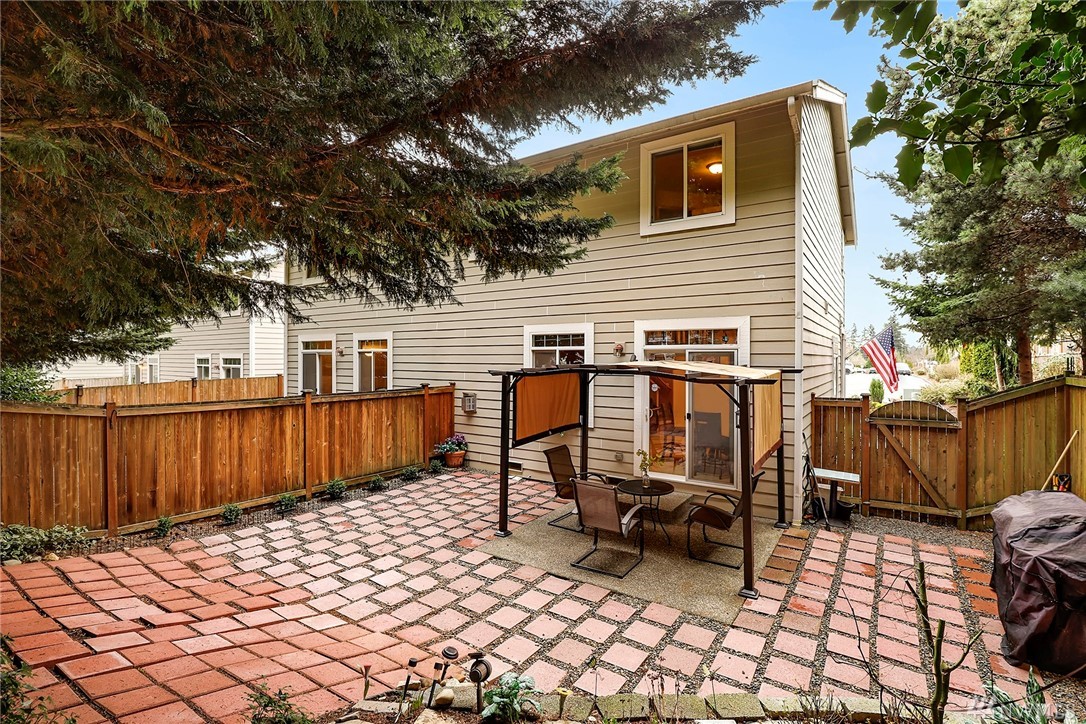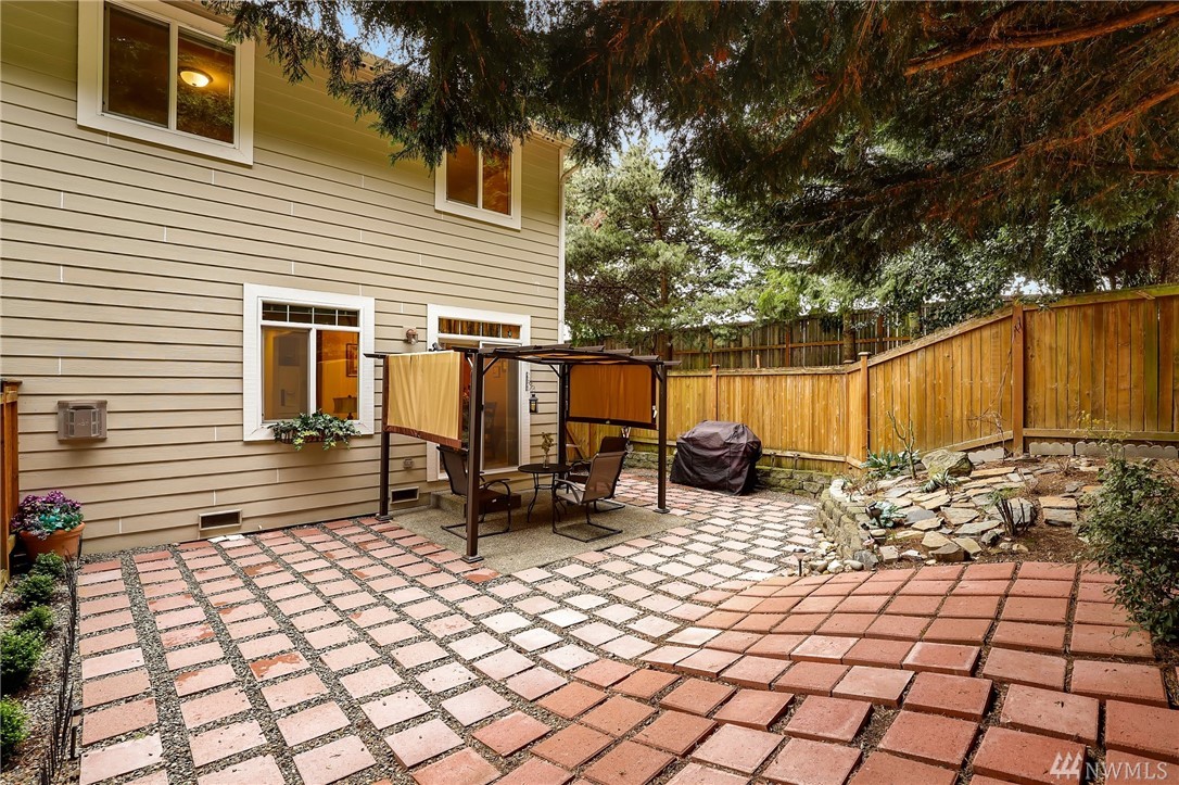 Spacious, end unit townhome in convenient location close to shopping, commuting & schools. Main level has an open floor plan for gathering & entertaining. Kitchen has new counters, hardwood floors, new refrigerator & gas cooking. Abundant storage + ½ bath on main floor. Upstairs features an expansive master suite w/ 5 piece bath & walk-in closet. Two more bedrooms and a second bath complete upstairs. Very private and tranquil setting with large fully fenced backyard, huge patio and stone pavers.