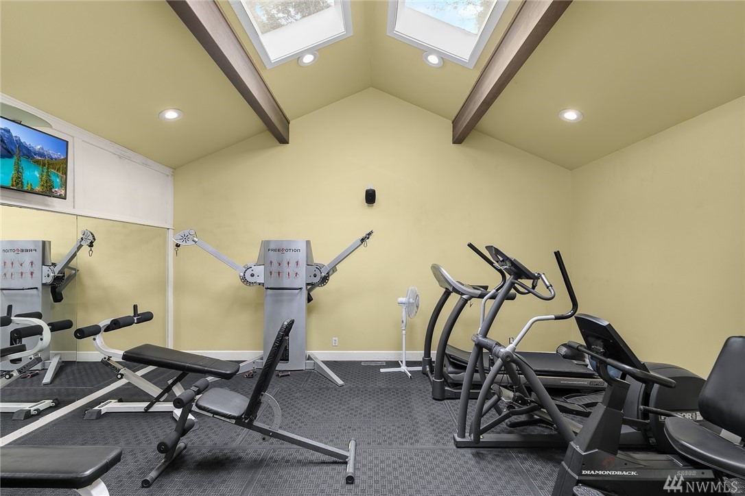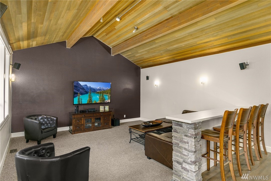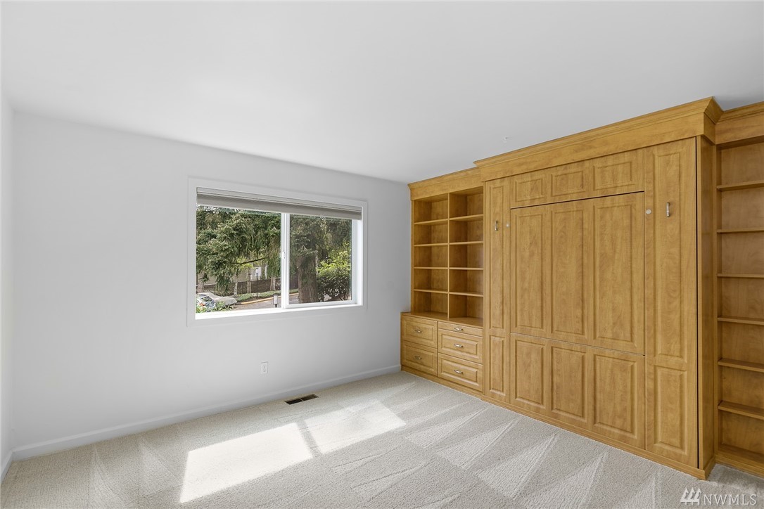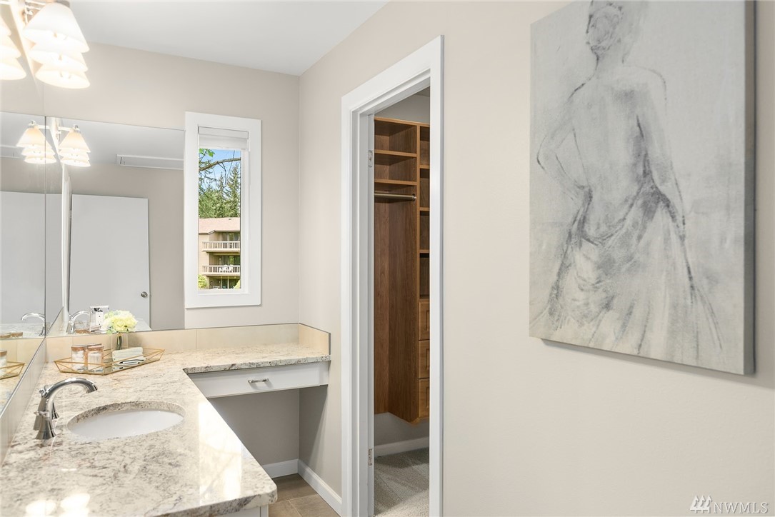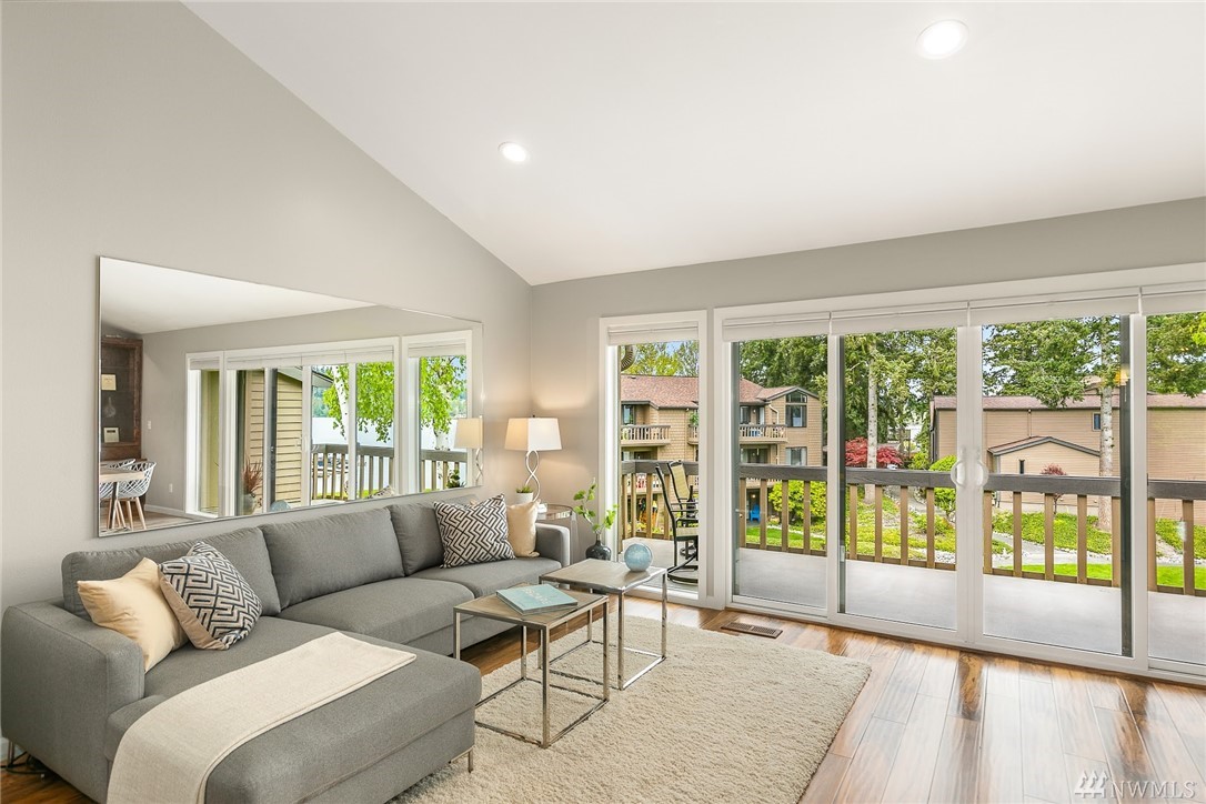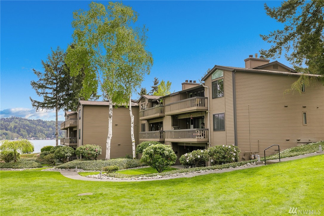 LAKE VIEWS w/private access; REMODELED, top floor Condo at Lake Villas. One-level living; high ceilings. Top quality, open layout. Chef's kitchen w/island of stunning Labradorite granite, custom cabinets, newer appliances. 2 gas fireplaces. Master suite-view, bath, fireplace, walk-in closet; Guest room/office has quality Murphy bed built-in for dual purpose use. View deck-natural gas & H2O. Extra sound proofing. Lots of storage. Covered parking. Includes dock, pool, sauna, spa, & more. Gated.