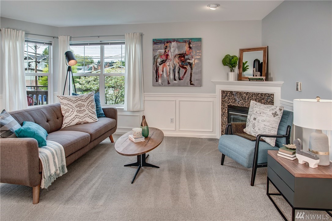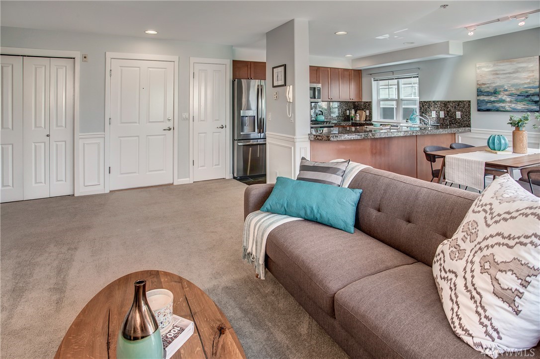 This Ballard condo lives larger than its square footage would belie. The open floor plan of this home offers a true feeling of spaciousness. The kitchen has been completely updated with new cabinets, countertops, tile flooring, and stainless steel appliances, including a swanky gas stove. Plus, this home has not one - but two balconies for you to enjoy the outdoors without trekking to the roof. Located just blocks from NW Market St & Ballard Ave, everything you want and need is minutes away.