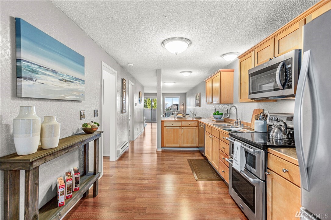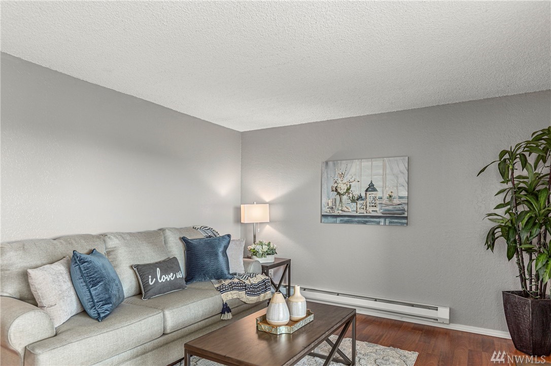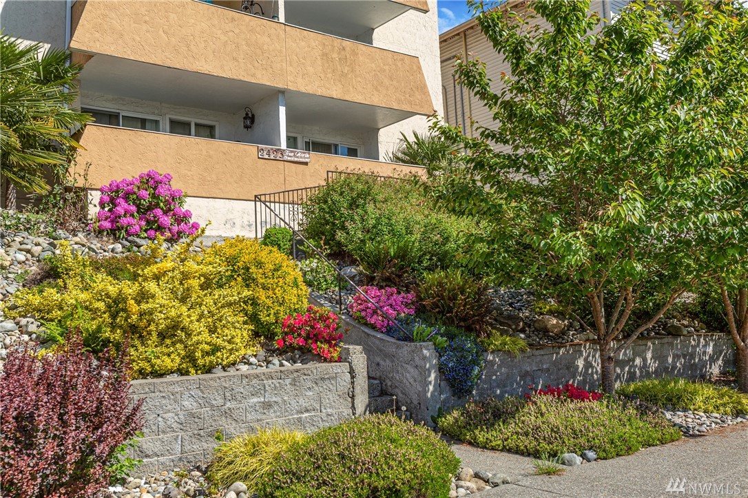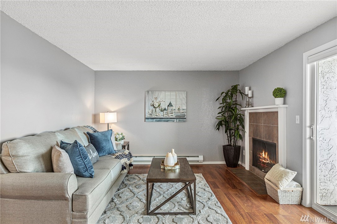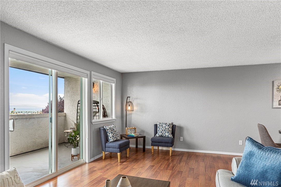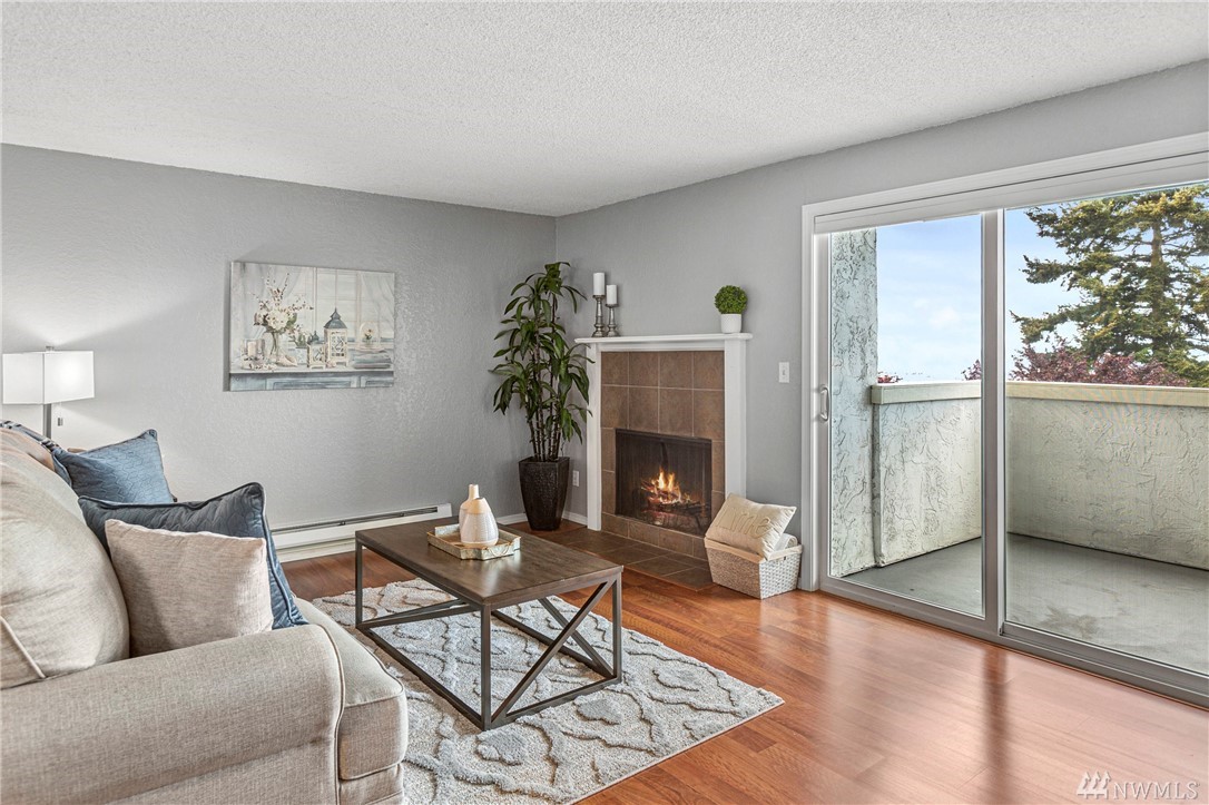 Incredible opportunity for a turn-key view condo in the heart of Everett! Walk to farmers markets, restaurants, the future waterfront boardwalk & so much more! New interior designer paint throughout, new high-end carpet in bedrooms, efficient layout, cozy wood fireplace & THAT VIEW! Enjoy a bev on the covered balcony & 180 degree views of the Sound & Olympic Mtns. Well-appointed bedrooms & a full bath in-between w/ ample storage, open concept living & almost no step entry! Don't miss!
