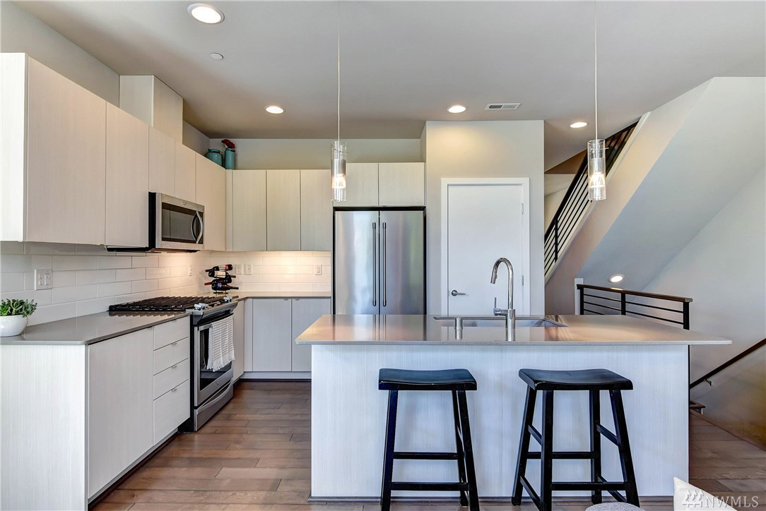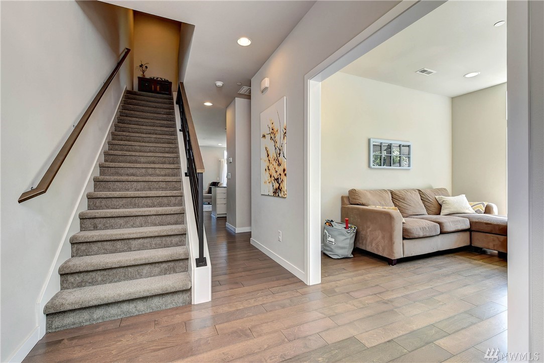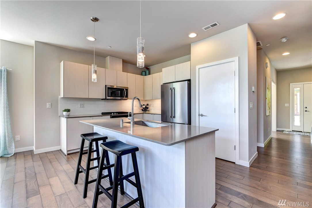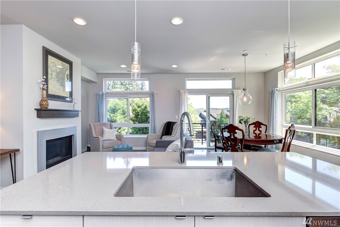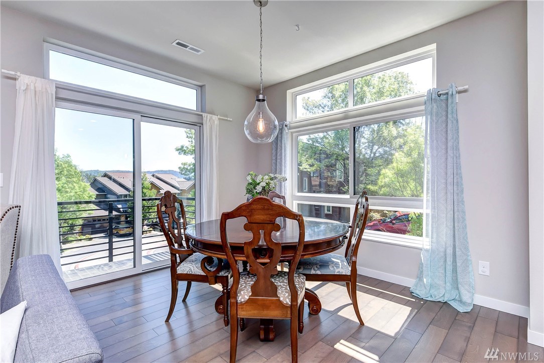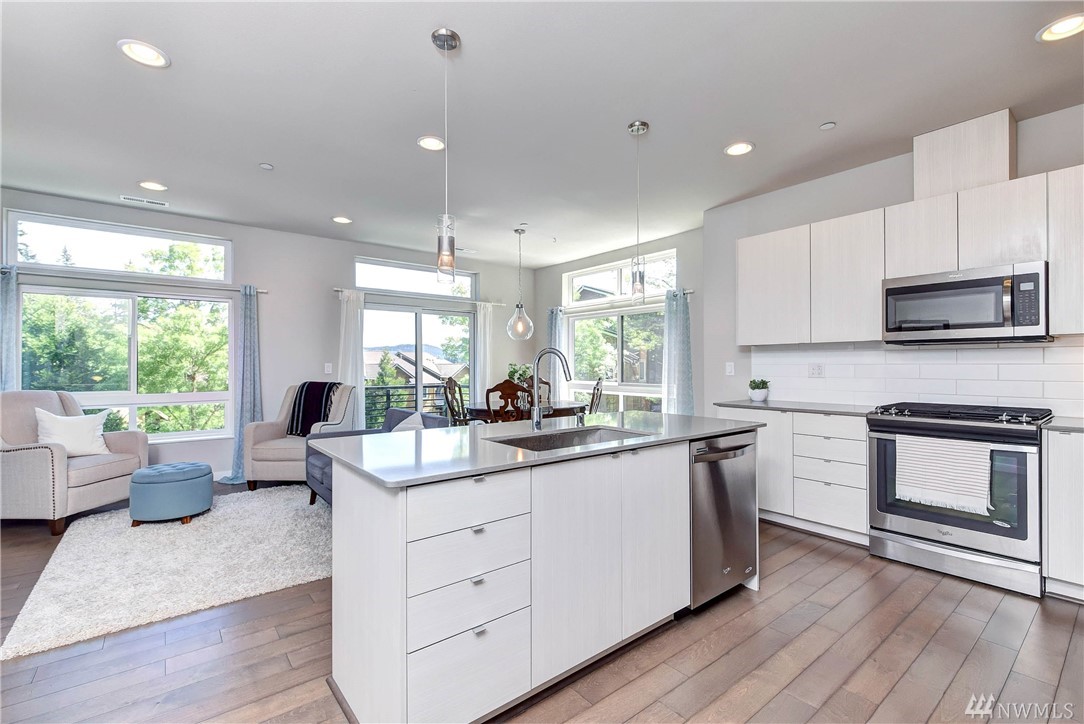 Modern Townhome surrounded by serene mountain & territorial views! Light & airy, big windows and open concept floor plan. Lower level bedroom + 3/4 bathroom steps up to main level w/hardwoods, open concept living & dining, kitchen features SS app., quartz countertops, plus Flex room. Upstairs, 3 add. bedrooms inc. roomy master & luxury bathroom. 2 car att. garage. Located on Cougar mtn. w/protected forests & hiking trails. Award winning Issaquah schools, nearby shopping & quick access to I-90!