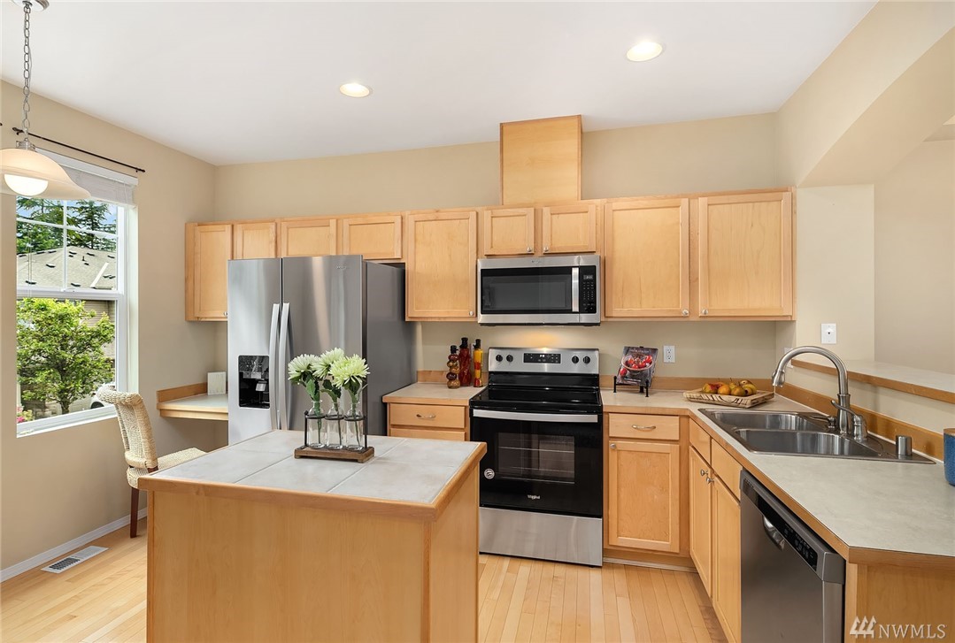Make this bright, open townhouse with lofty ceilings yours! This is a truly turn-key home with new SS appliances, 2019 water heater, & pre-inspection already done. Spacious deck, open concept main floor, two generous bedrooms & the attached garage for dry loading/unloading make this an ideal home. Excellent privacy with no other units above or below you. You’re never too far from parks, shops, trails, & restaurants. Easy drive to Renton, Bellevue, the airport, & beyond. You will love it here!