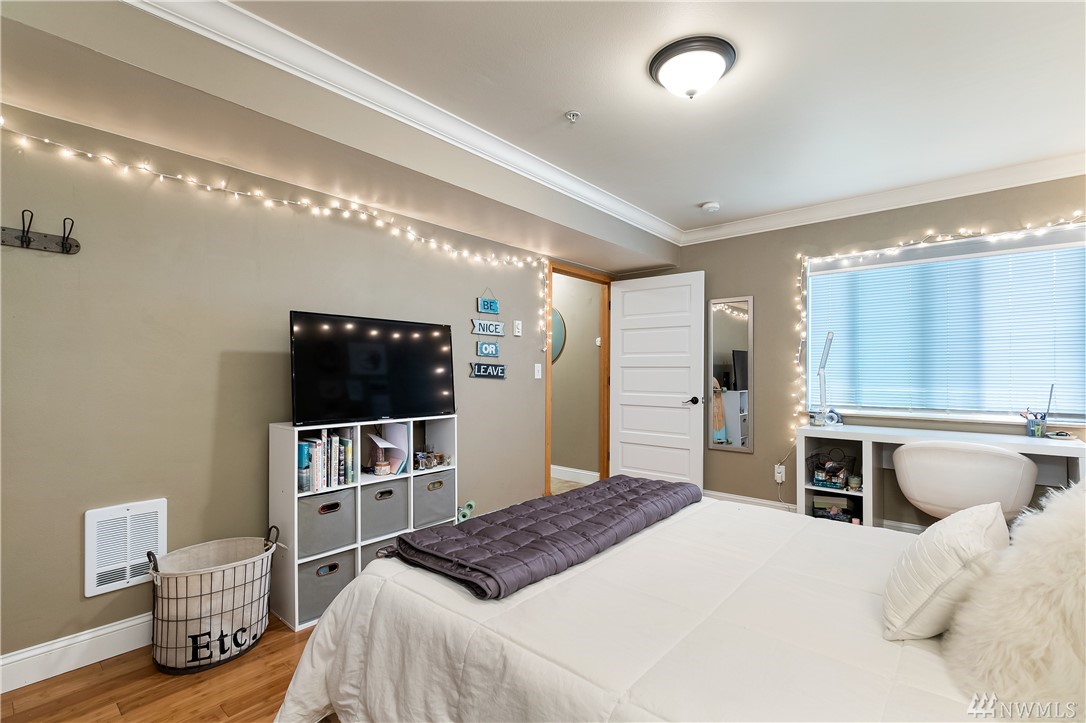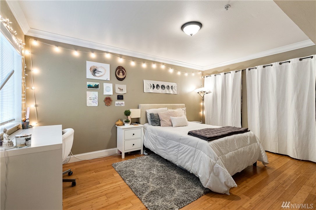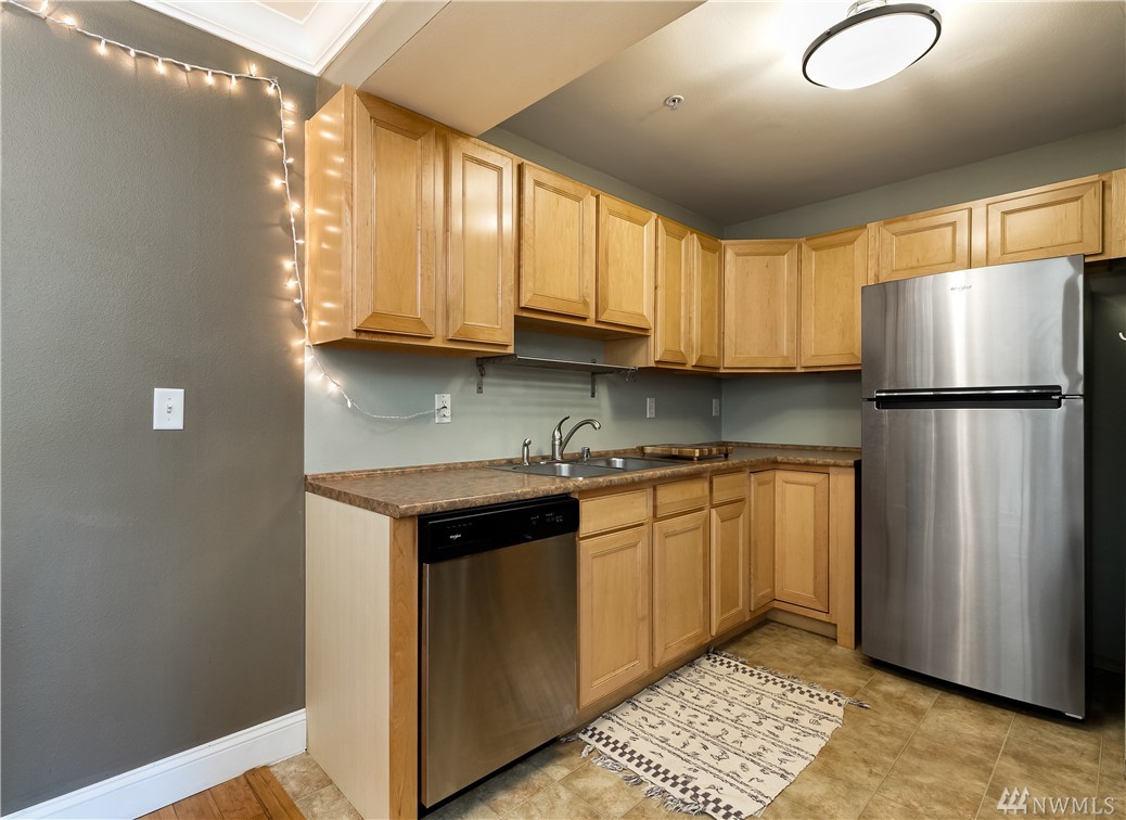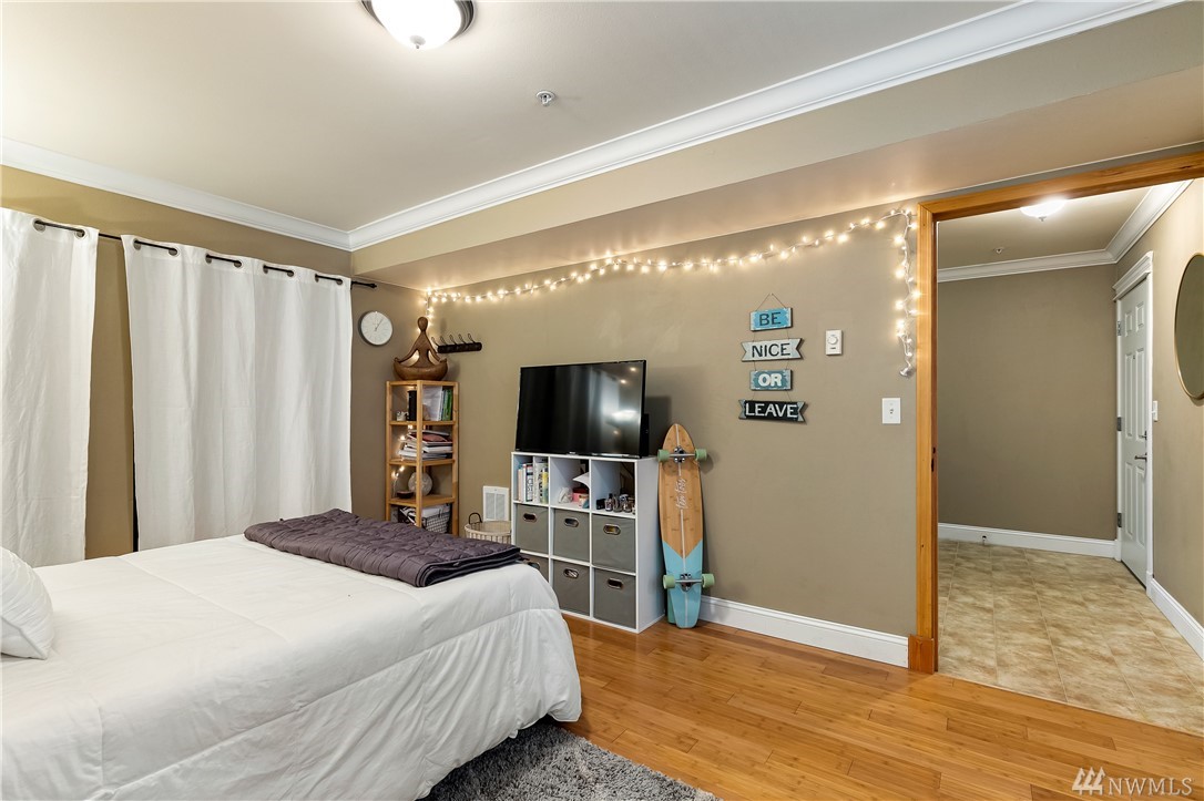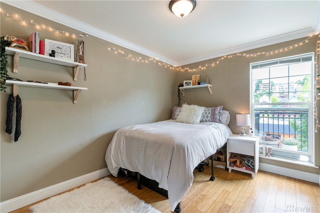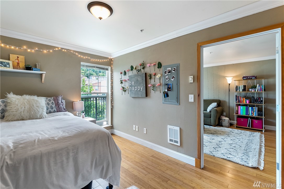 Top floor unit in the heart of downtown Bellingham with city views! Updated with bamboo flooring throughout, BRAND new stainless steel appliances & newer hot water heater. Great open floor plan with 2 large bedrooms, spacious bath, crown molding throughout, updated lighting, & stacked washer/dryer. Bright atrium with elevator access & secured underground parking. Steps to restaurants, bars, WWU & the interurban trail leading you straight into Fairhaven. Urban living at it's best!