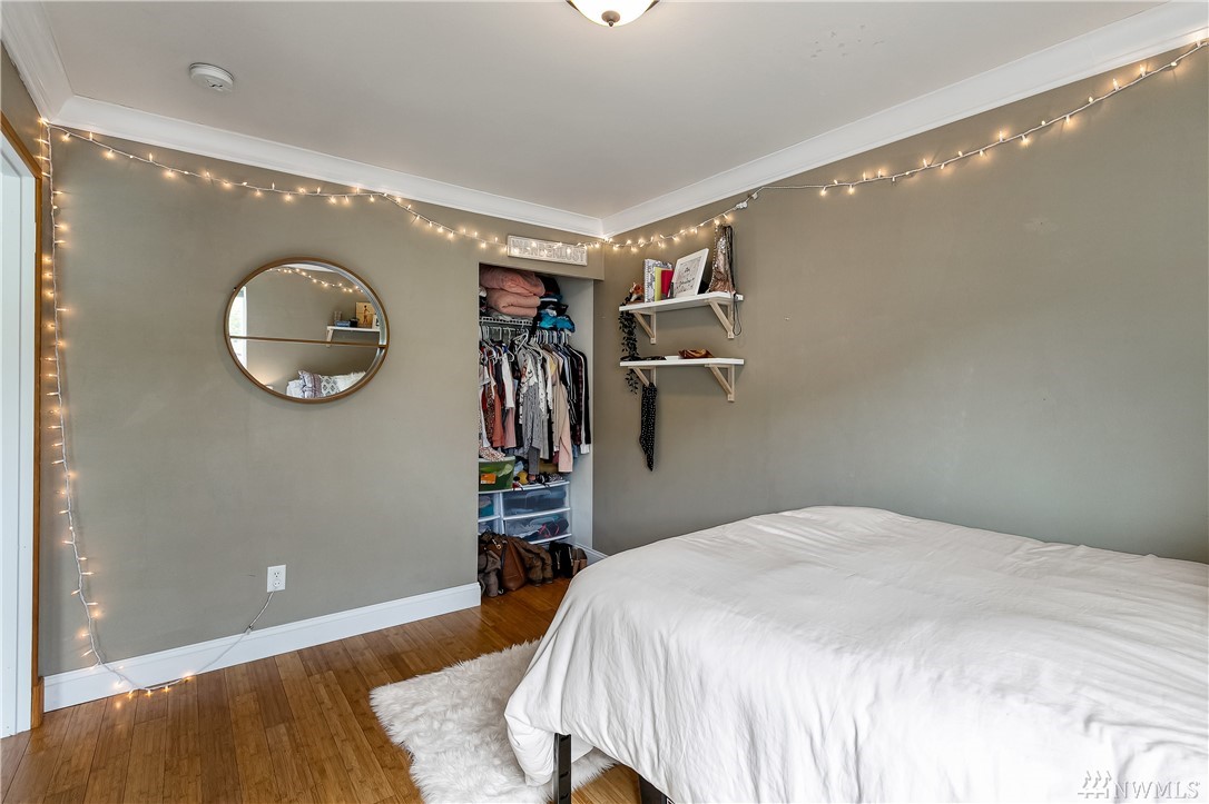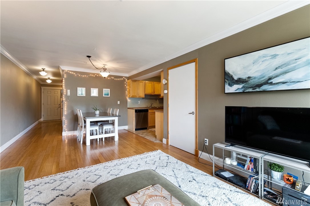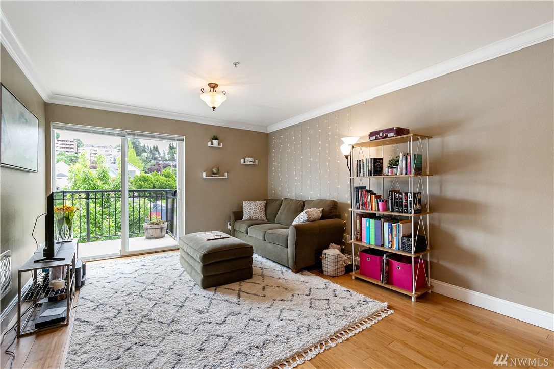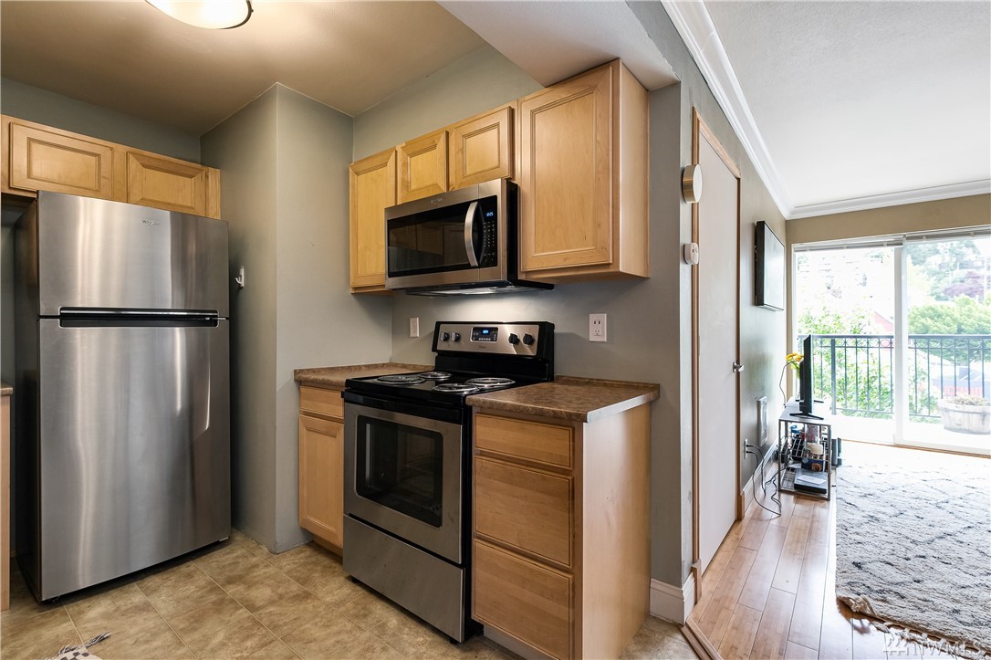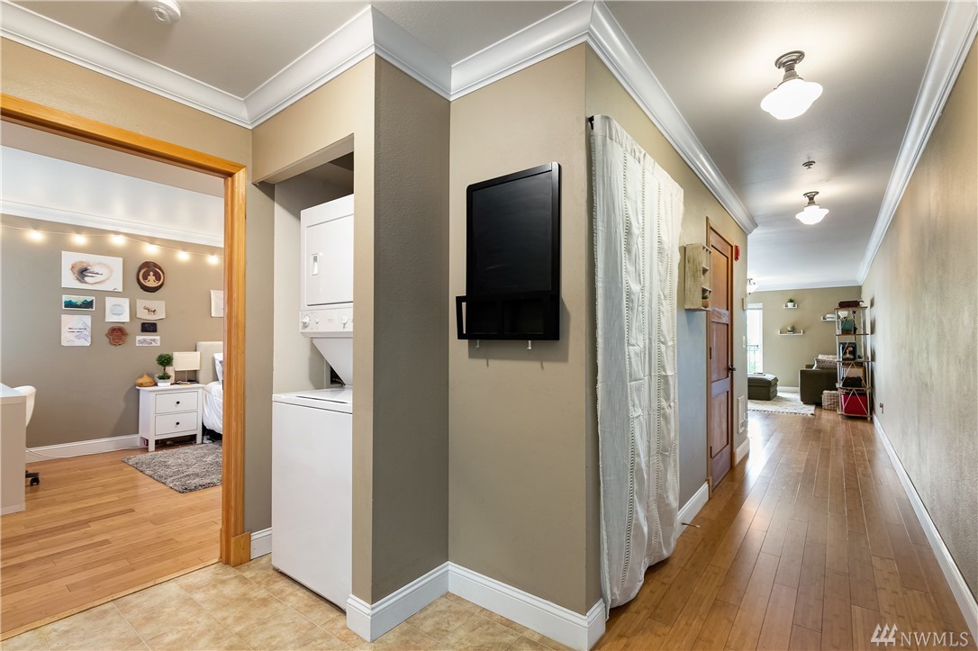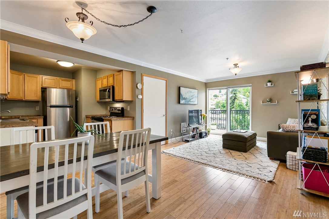 Top floor unit in the heart of downtown Bellingham with city views! Updated with bamboo flooring throughout, BRAND new stainless steel appliances & newer hot water heater. Great open floor plan with 2 large bedrooms, spacious bath, crown molding throughout, updated lighting, & stacked washer/dryer. Bright atrium with elevator access & secured underground parking. Steps to restaurants, bars, WWU & the interurban trail leading you straight into Fairhaven. Urban living at it's best!