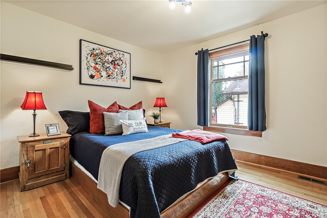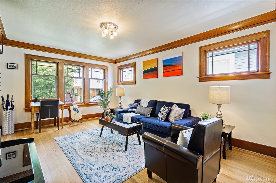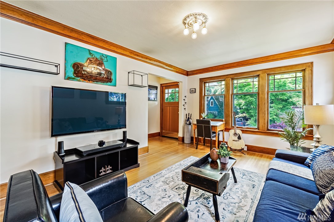This remodeled Craftsman is stylish, comfortable, and in the perfect location. Walk to U-Vill, UW Light Rail, BG Trail, Ravenna Park. Main floor features hardwoods, living room, updated kitchen w/ intimate dining room, 3 beds, and bath w/ claw foot tub. Master w/ spacious California closet, vaulted ceilings, and French windows open to backyard garden. Fully finished basement has separate entry, 1 bed, 3/4 bath w/ heated floors. Plenty of storage space in walk-up attic and 1 car detached garage.