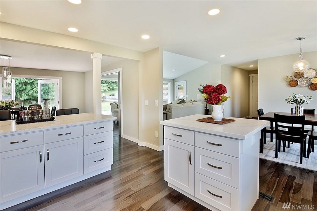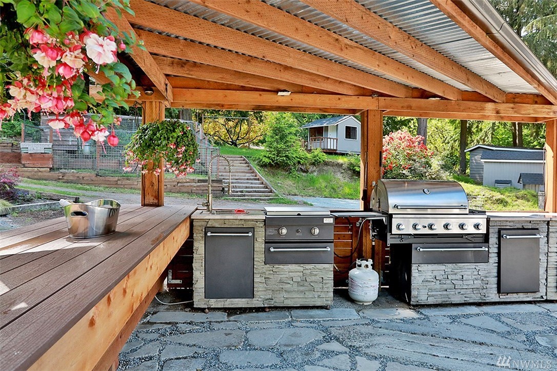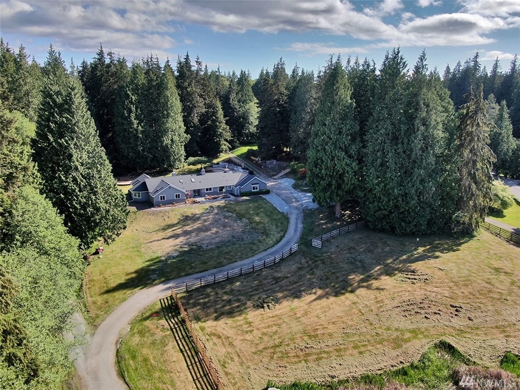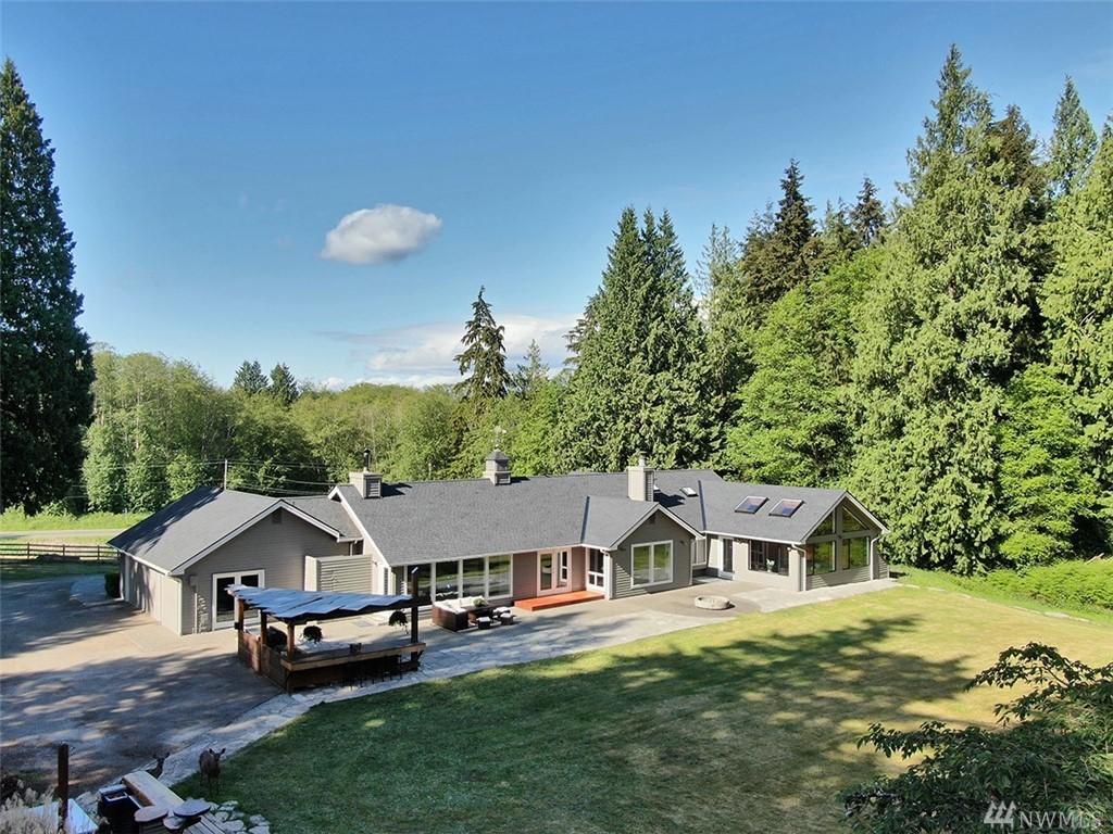 Incredible, secluded estate on 5.4 acres close to Langley with meadows, massive cedar trees and a pond. Perfect for entertaining inside, and out. Two outdoor performance stages, outdoor kitchen, indoor swim spa and kids’ playhouse. New: cabinets, quartz counters, pecan hardwoods, low E windows, roof, and septic. Huge outbuilding with 3 high bays and workshop. Possibilities abound for outdoor venues, craft distillery, winery, horses or bring your ideas. This is your escape from the city.