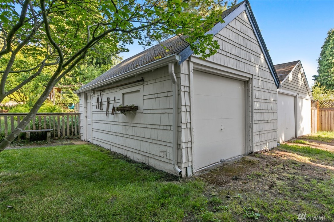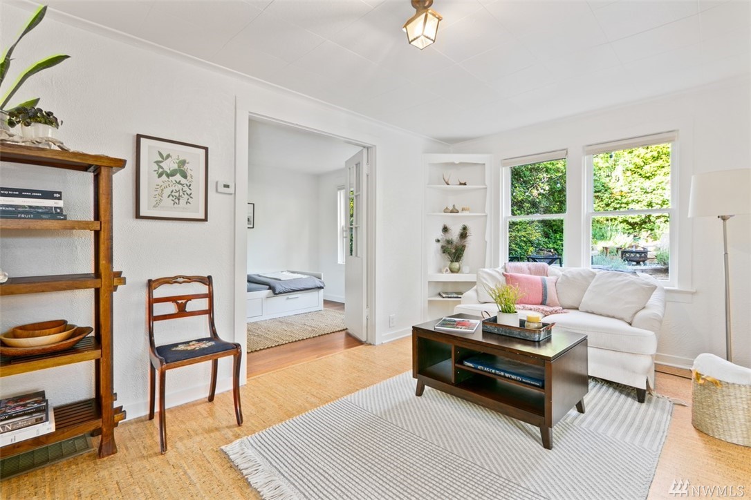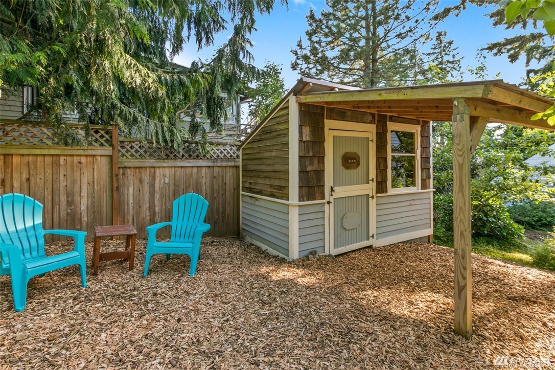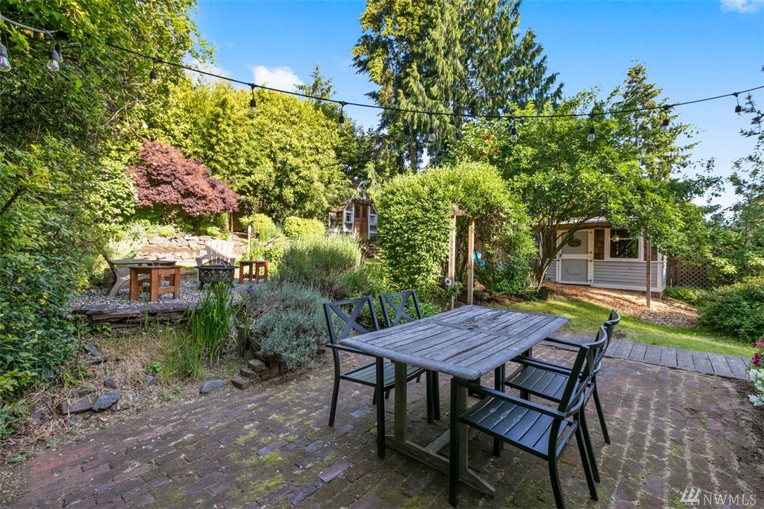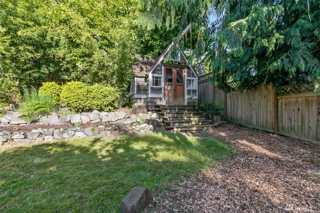 Storybook charmer set in a private oasis. Sun-filled Broadview home with outdoor views from every room. Beautifully landscaped yard w/flowers, fruit trees, & planter beds. Private terraced outdoor living space. Dine under the stars, or cozy up to the fire pit. Out-bldgs incl garage, shed & detached office/studio/guest house. Home feat. breakfast nook, claw foot tub, original built-ins & spacious master suite. New appliances, roof, cork floors, int/ext paint. Walk to Carkeek Park, schools, cafes.
