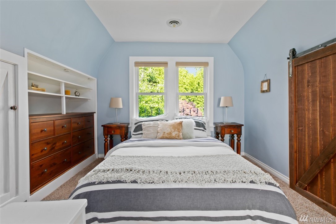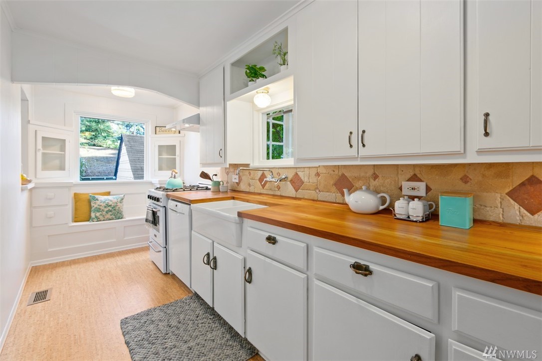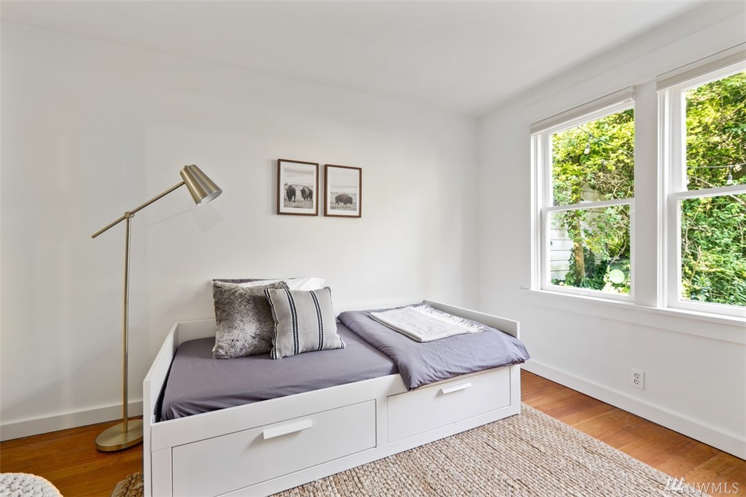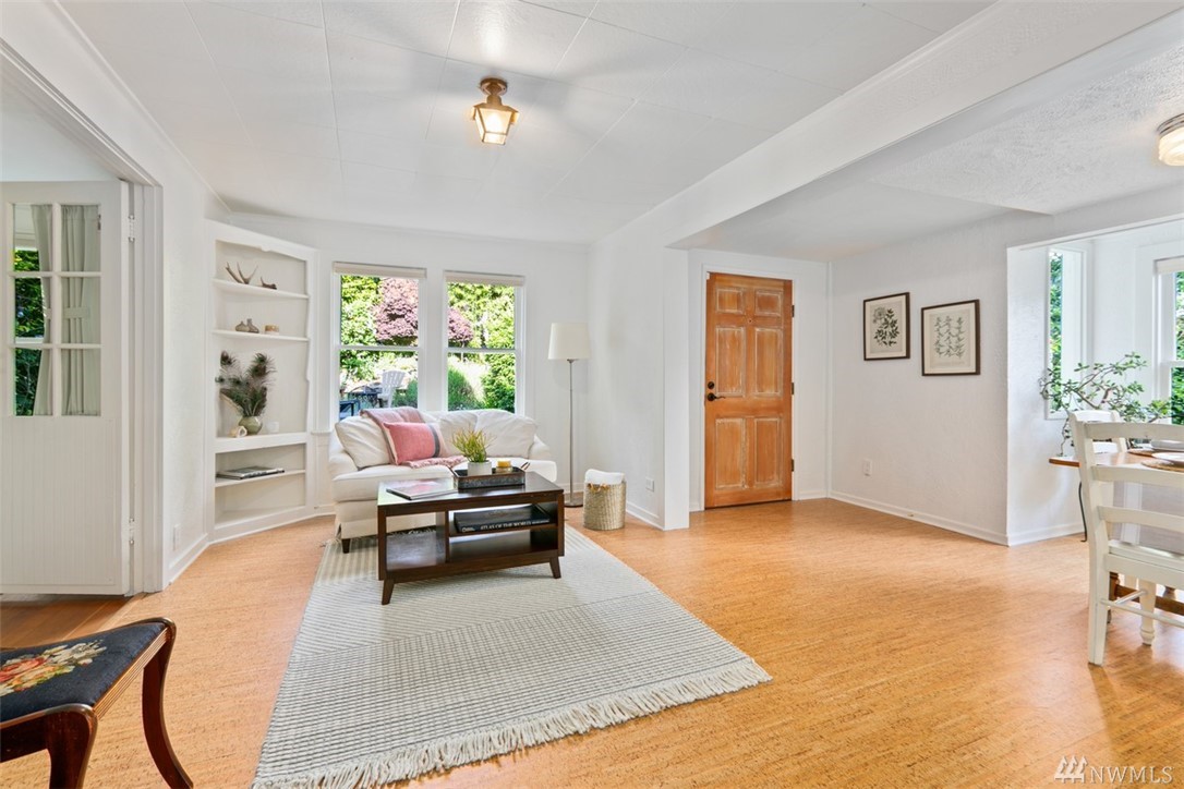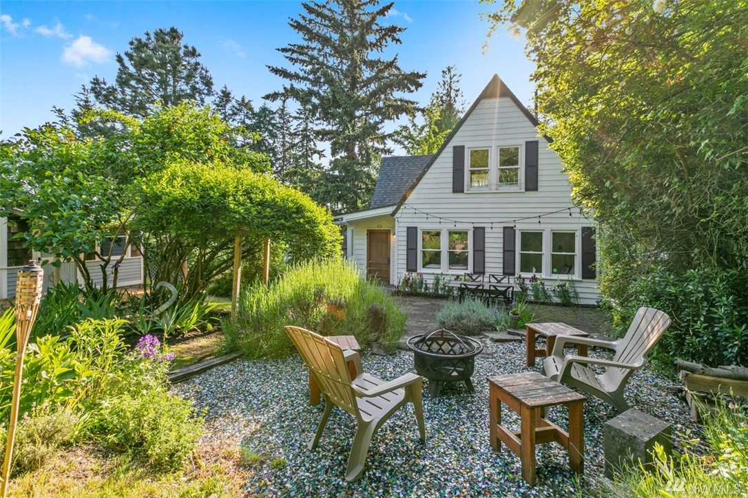 Storybook charmer set in a private oasis. Sun-filled Broadview home with outdoor views from every room. Beautifully landscaped yard w/flowers, fruit trees, & planter beds. Private terraced outdoor living space. Dine under the stars, or cozy up to the fire pit. Out-bldgs incl garage, shed & detached office/studio/guest house. Home feat. breakfast nook, claw foot tub, original built-ins & spacious master suite. New appliances, roof, cork floors, int/ext paint. Walk to Carkeek Park, schools, cafes.