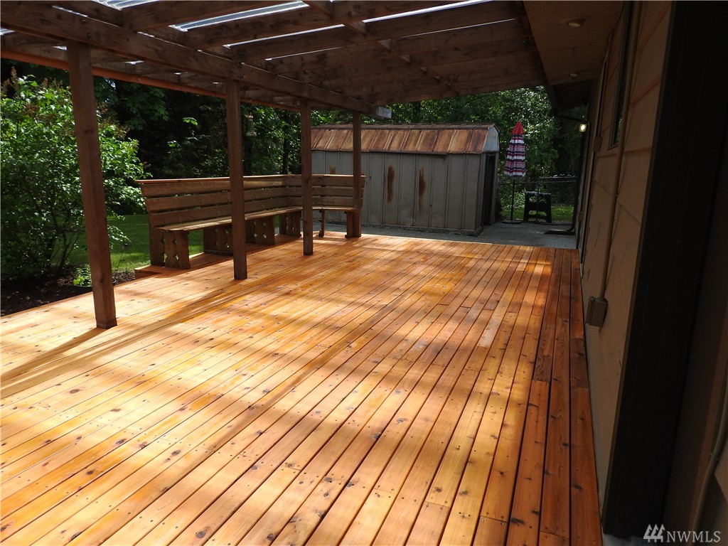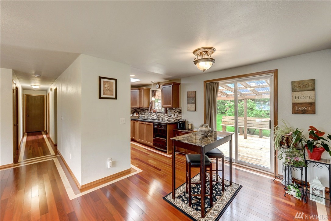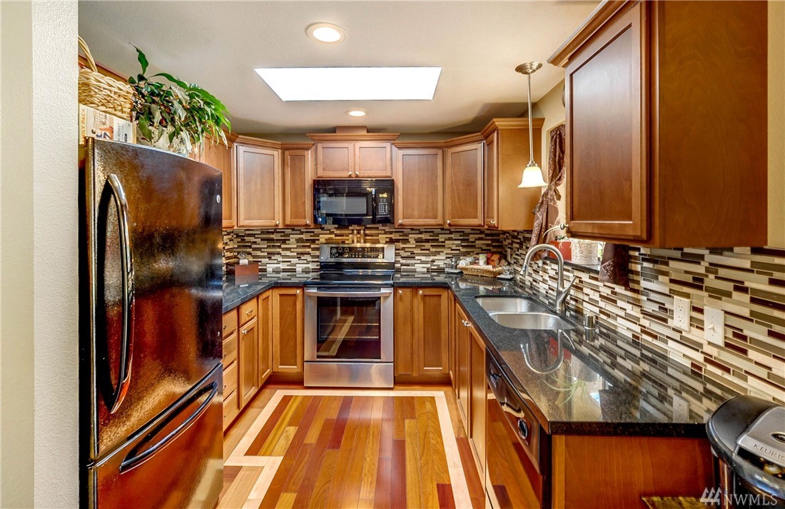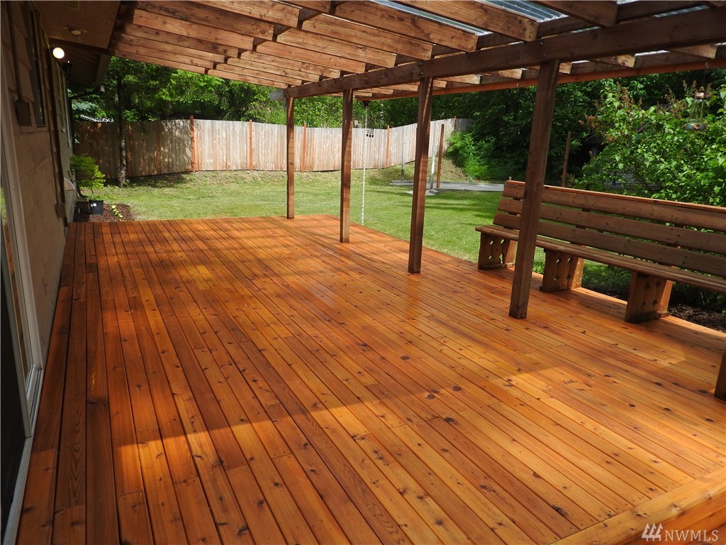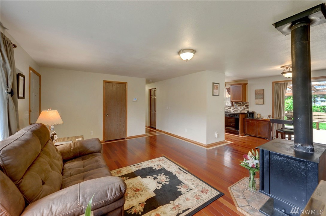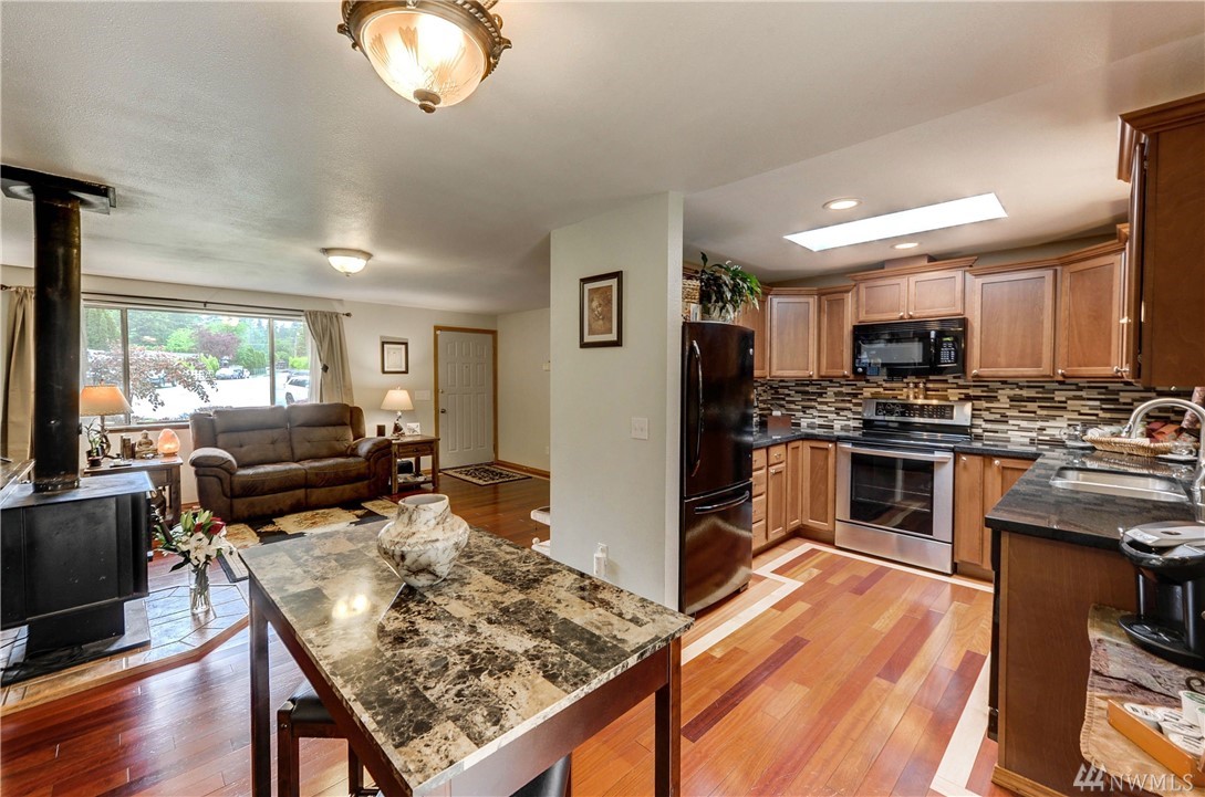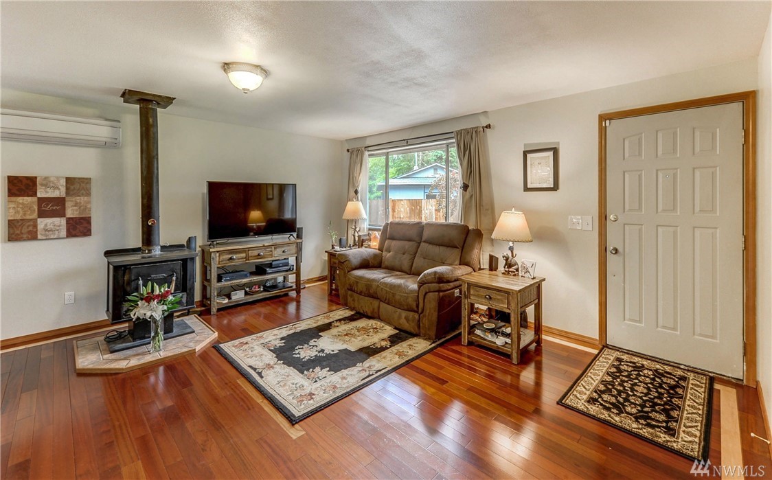 A must see beautifully kept home. Located in a quiet cul-de-sac and backs to a green belt. You will love the the updated kitchen, bathroom, floors and deck. Home is very efficient with cozy woodstove, ductless HP mini split with heat and air conditioning. Additional attic ventilation for efficiency. Spacious back yard with covered deck and playhouse/shed. Plenty of room for RV parking.