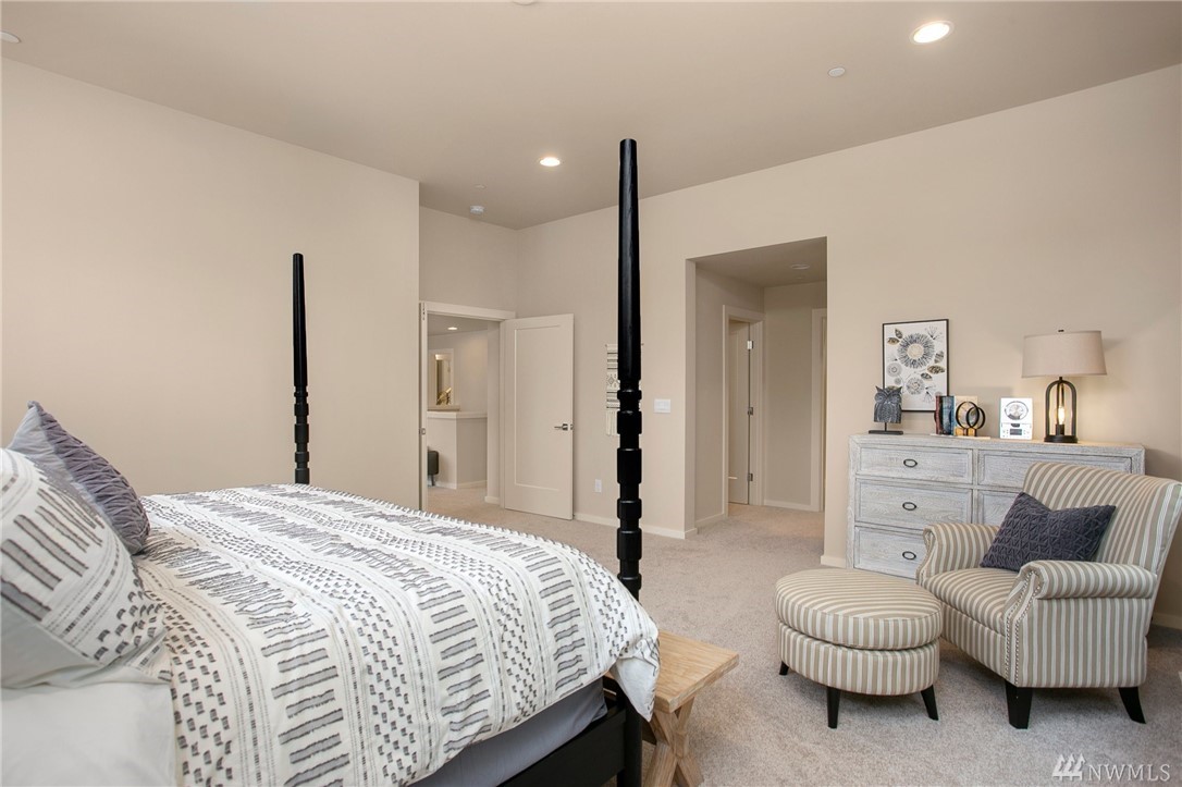 This 3796 sf Residence 5 has 5bdr + den, 4ba, 3 car garage, mud room & cvrd patio (w/ deck upgrade). Entertainers kitchen w/ oversized island, full height tile b/s, soft close cabs wall oven & walk-in pantry! 12' sliding glass door let's light in! Hdwd floors on main, tile flr & quartz tops in all baths. Soaking tub in mstr bath. Walk-in closets in all bdrs. Recreate in the great rm w/ gas fp or relax upstairs in spacious and private enclosed bonus room. South facing back yard w/ Mountain views!