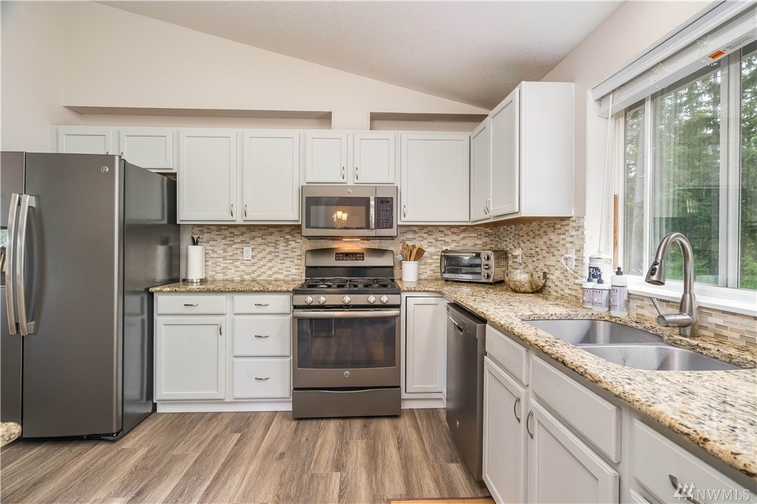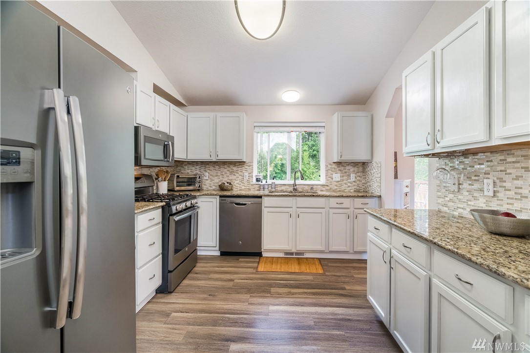Beautifully updated home that is move-in ready, in quiet culdesac that boasts private (new) fully fenced yard that looks out to green belt. This light, bright + airy home was completely remodeled just 5 yrs ago. Stunning kitchen w/slab granite, white shaker cabinets, tiled backsplash, SS appliances, 5 burner gas stove. All bathrooms remodeled w/tile surrounds. Newer roof, furnace + LG covered back patio. Spacious 600 sf garage. Too much to list! Min to shopping/Long Lake Park. Move in + relax!