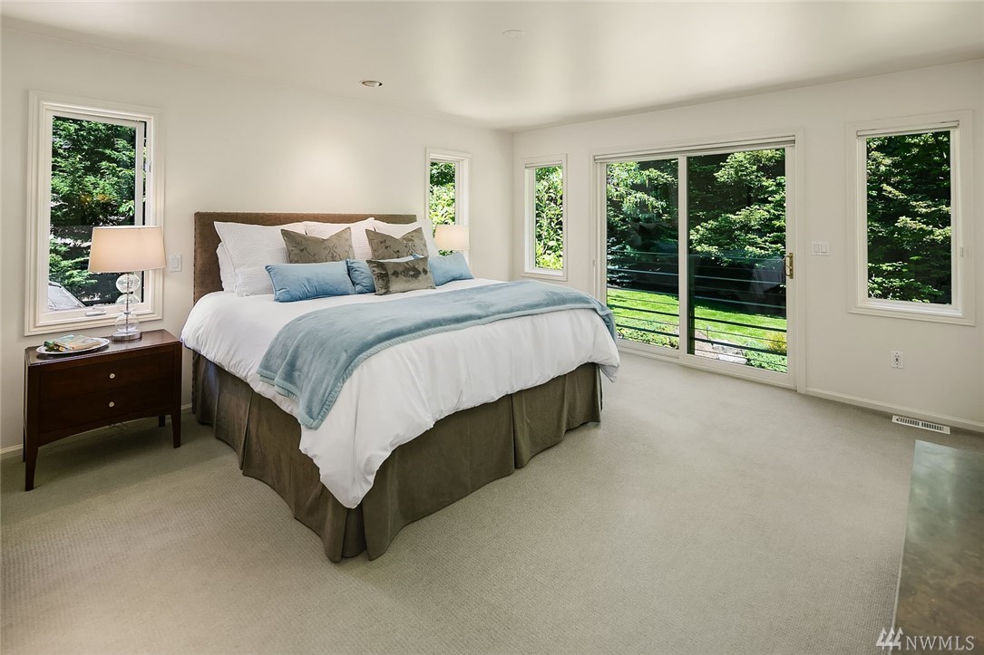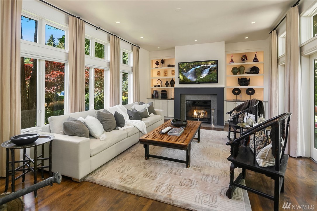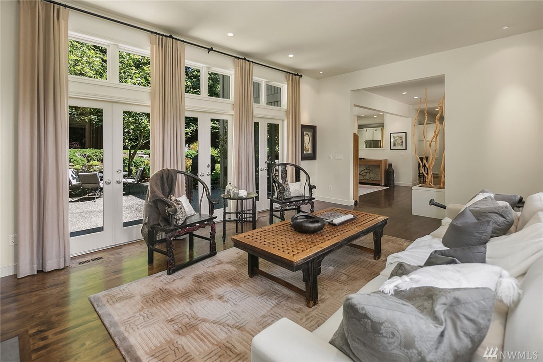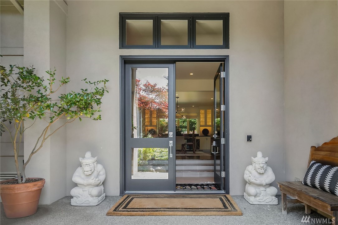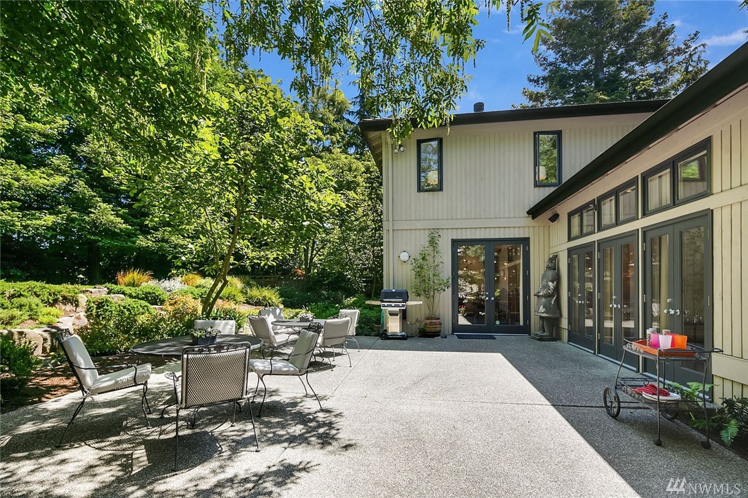 Stunning custom design/build by Odegard Gockel, renowned PNW master bldr. Soaring ceilings, architecturally intriguing features, comfortable and sophisticated for the cultured palette. All day sunlight and very private w/lovely patio and yard that beckons outdoor living. Incredible kitchen, everyday spaces! Flexible fam room doubles as main flr bdrm with 3/4 bath. Enjoy working from the handsome office w/private deck, walls of builtins. Lush master...Video conference from here, no one will know!