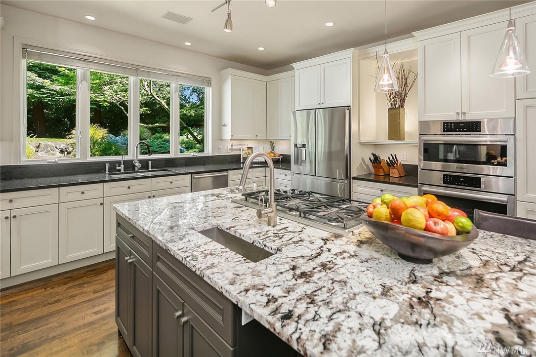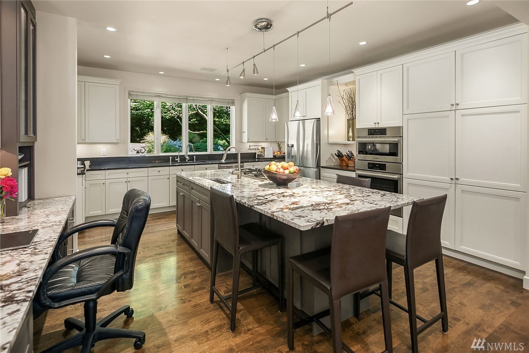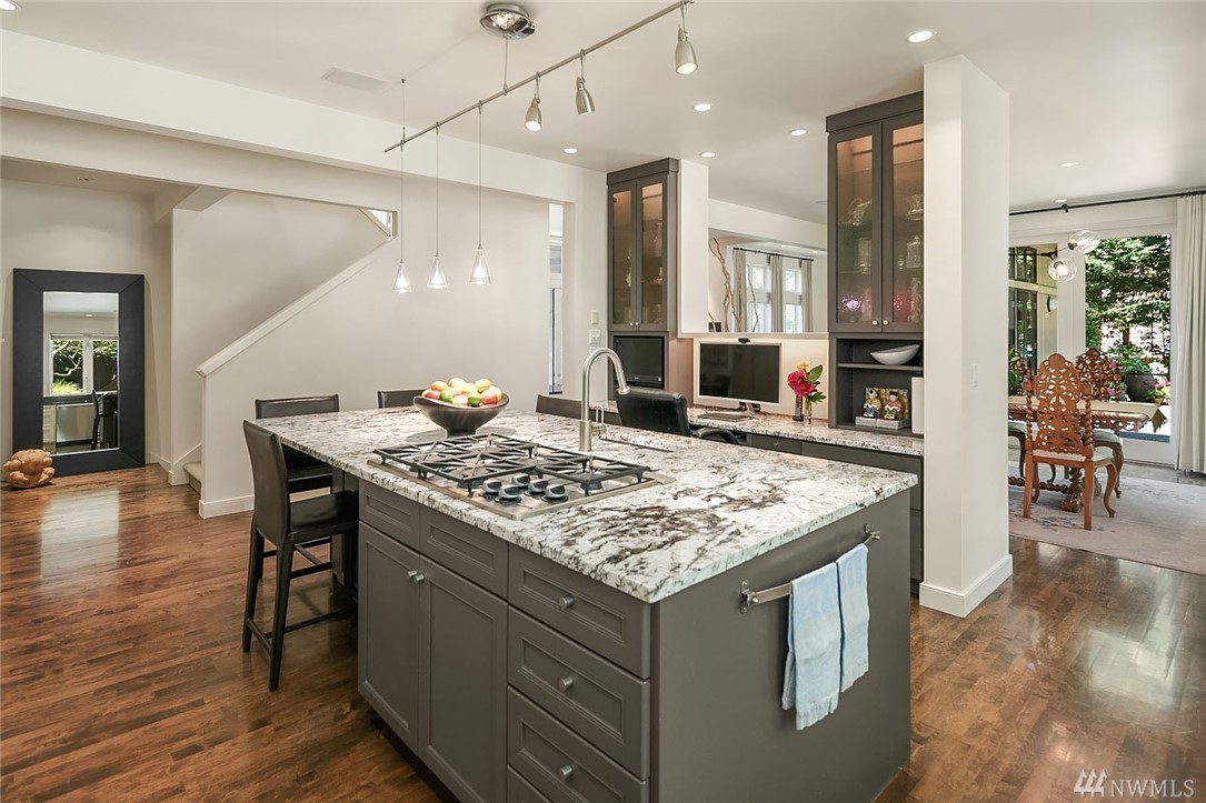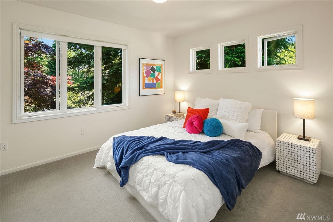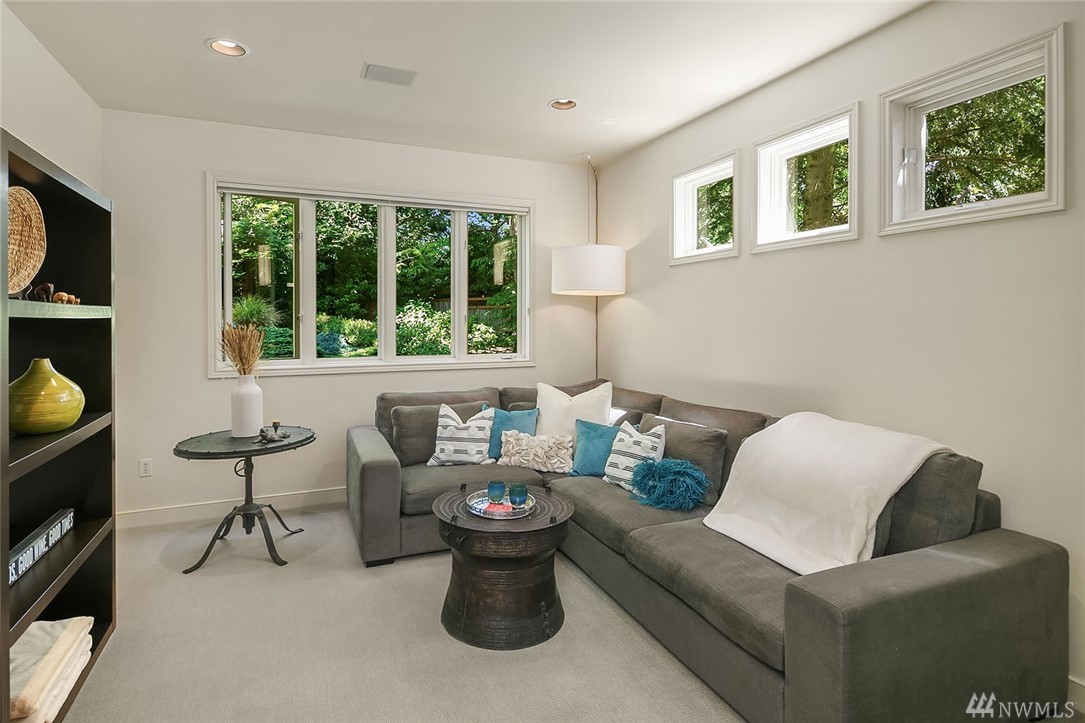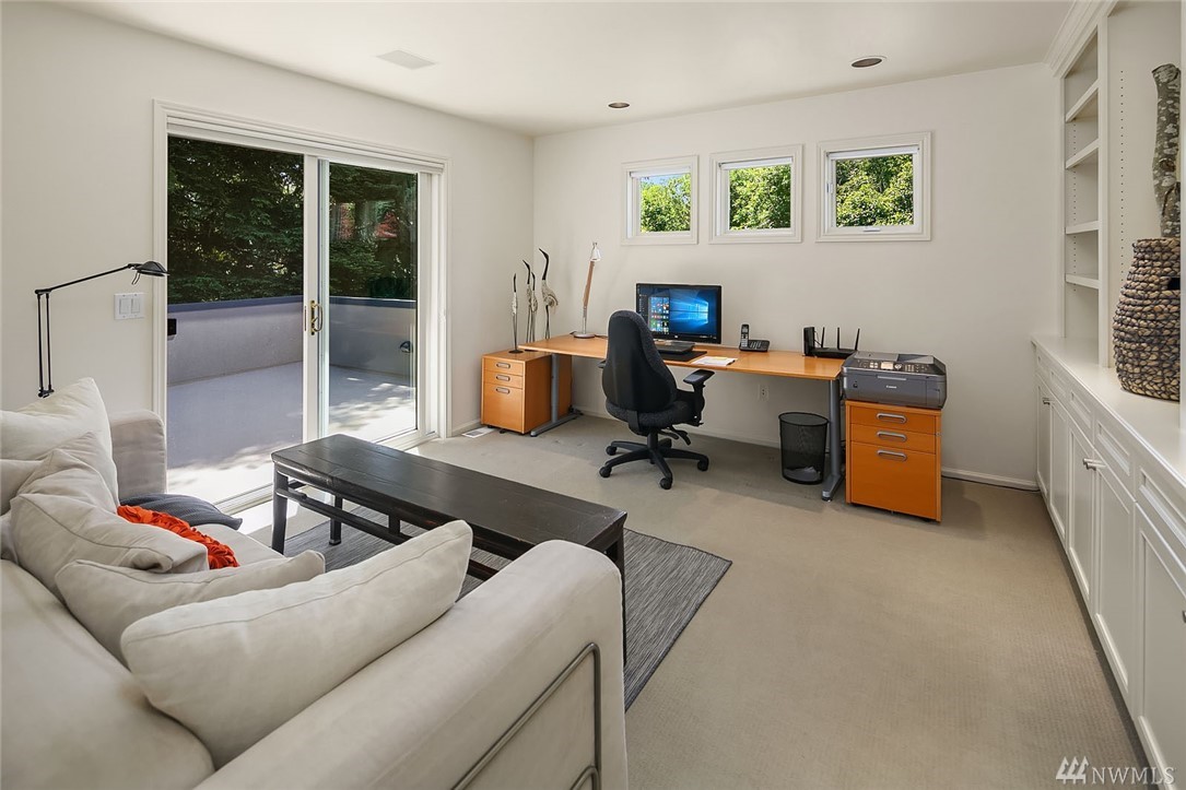 Stunning custom design/build by Odegard Gockel, renowned PNW master bldr. Soaring ceilings, architecturally intriguing features, comfortable and sophisticated for the cultured palette. All day sunlight and very private w/lovely patio and yard that beckons outdoor living. Incredible kitchen, everyday spaces! Flexible fam room doubles as main flr bdrm with 3/4 bath. Enjoy working from the handsome office w/private deck, walls of builtins. Lush master...Video conference from here, no one will know!