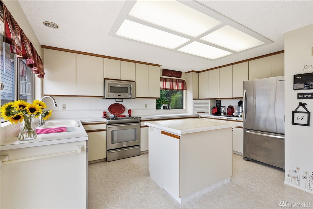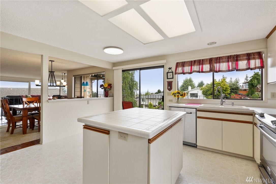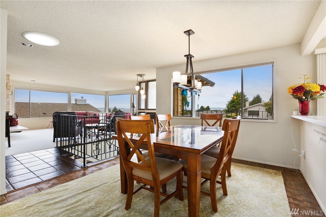 This home has beautiful Sound & mountain views at every turn & the coveted location of the Edmonds Bowl. Main level boasts open floor plan w/ large kitchen w/ eat in breakfast nook & slider out to the deck to enjoy breathtaking views & sunsets. Lower level has large family room. Back yard has storage shed, low maintenance artificial grass & mature landscaping giving you ample privacy. 2 car garage w/ workshop. Minutes to shops, restaurants, beach & ferry terminal & all that Edmonds has to offer!