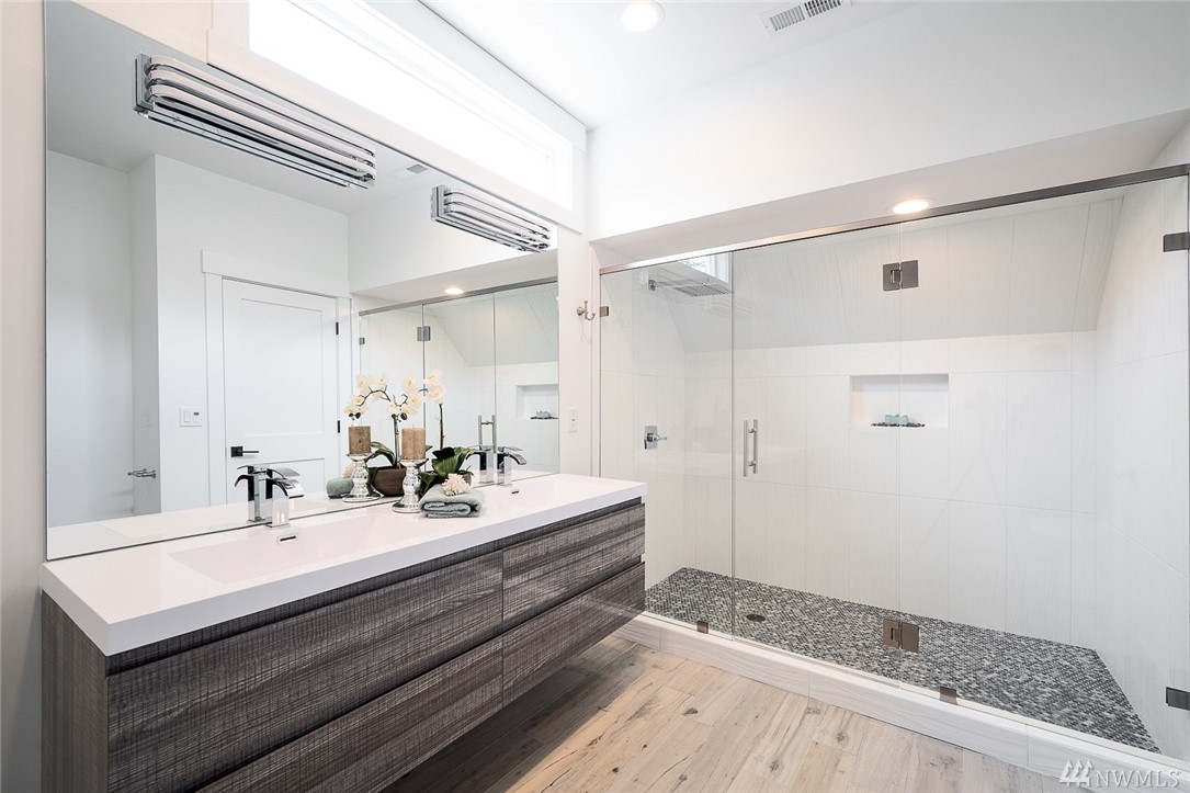 Gorgeous Madison Park permitted remodel features 4 beds, 3 baths, tons of upgrades and nearly 2300 sq ft of living space. Beautiful kitchen includes 6 burner gas stove, French door refrigerator, self close shaker cabinets, full backsplash, and quartz slab countertops. Lovely bathrooms boast tile showers and floors, and floating vanities. Excellent location is a stones throw from the Arboretum and close to everything Seattle has to offer. Large, landscaped yard and off street parking.