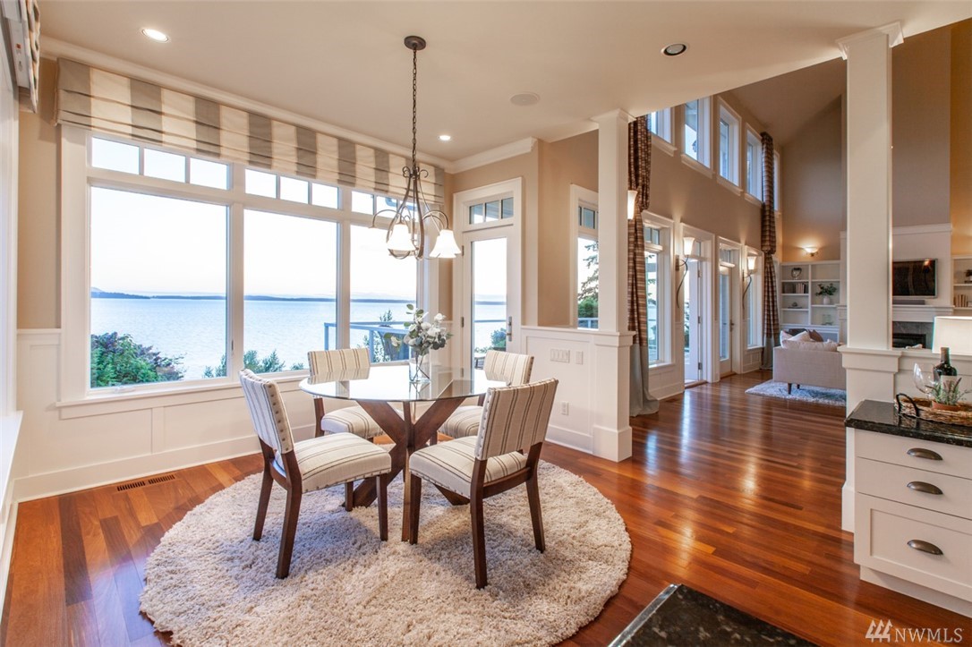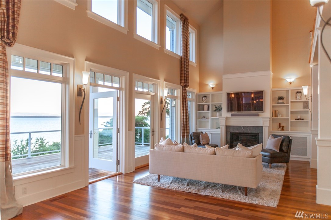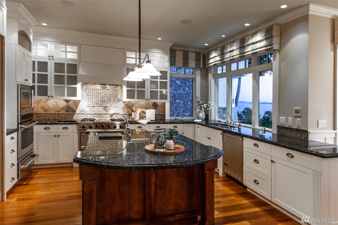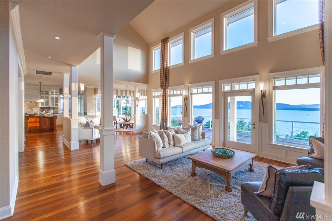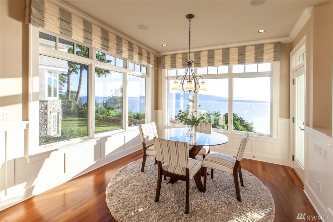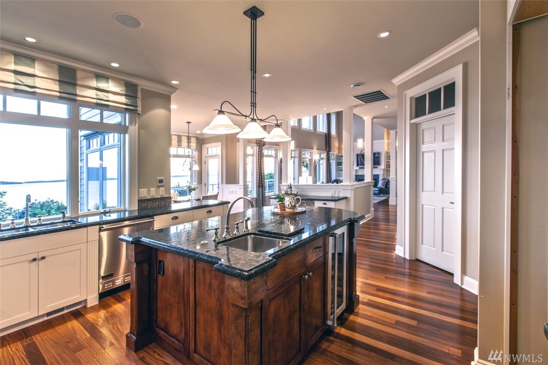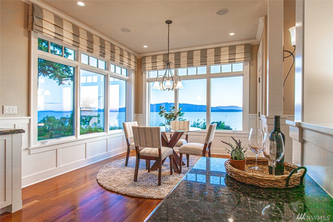 This custom coastal chic home in the Edgemoor neighborhood has a warm nantucket charm & expansive front row views of Bellingham Bay & the San Juan Islands. The vaulted front foyer opens up into a two story main level open concept layout providing an airy feel with seamless transitions between kitchen, living and dining spaces. There is a master on both the main floor & upper level along with an office & wine cellar large enough to accommodate the most enthusiastic collector.