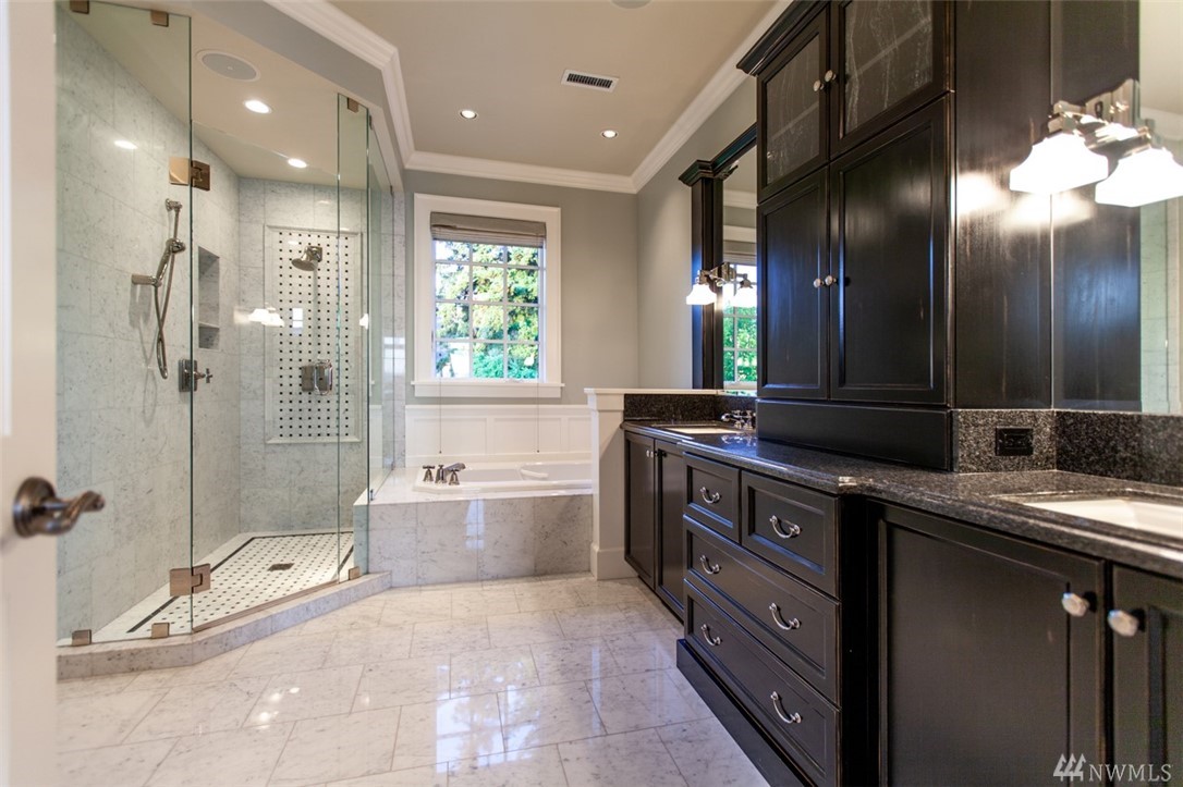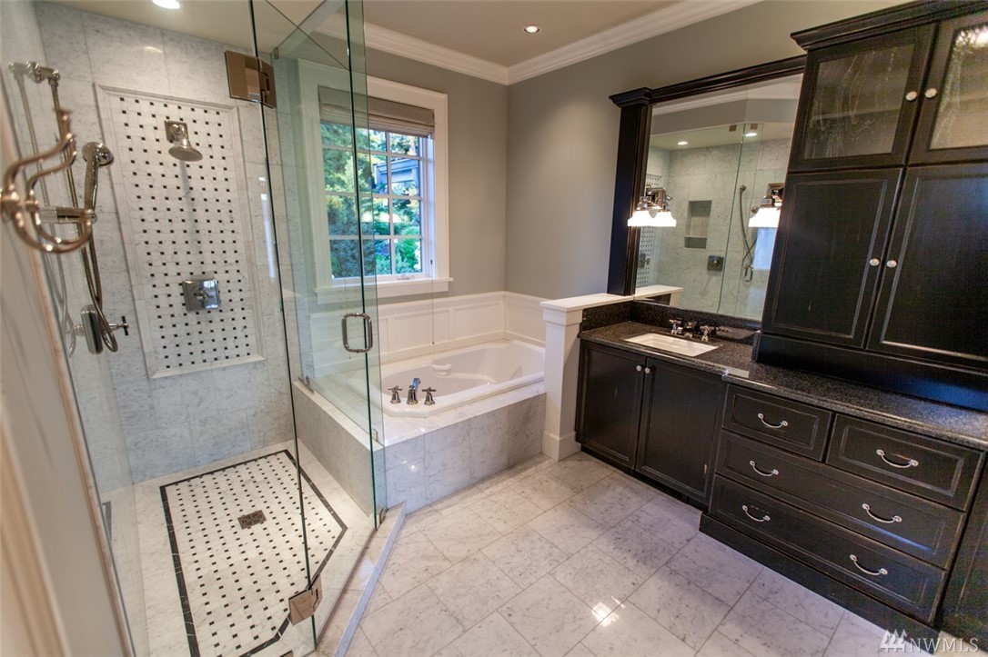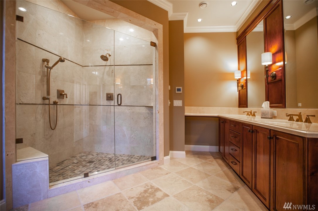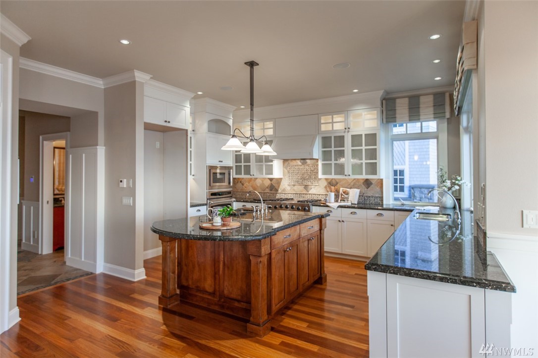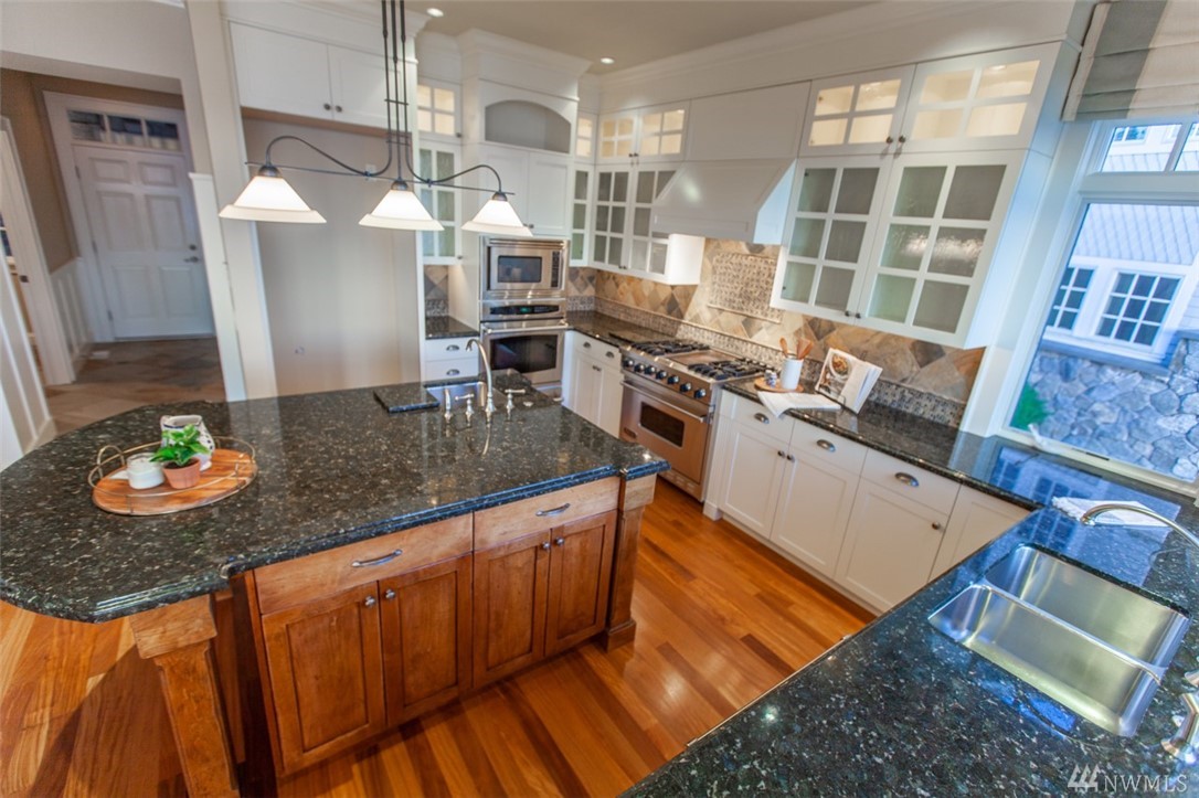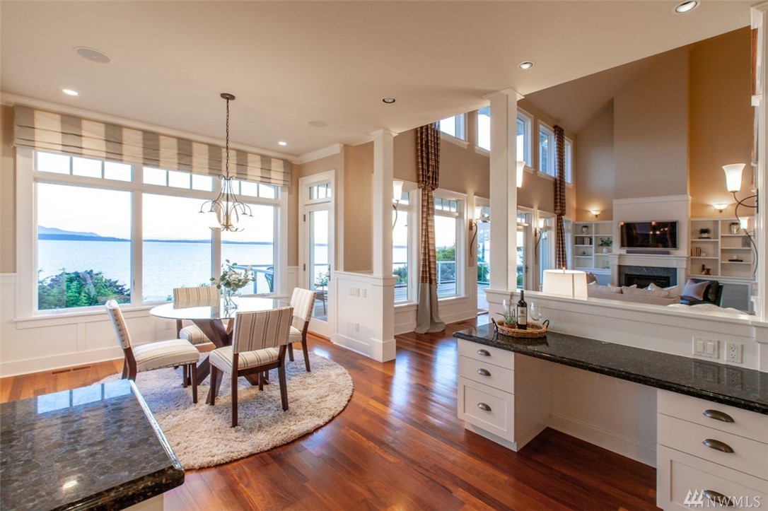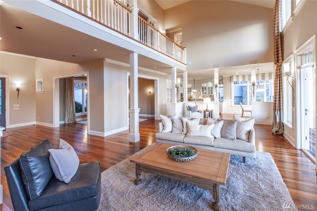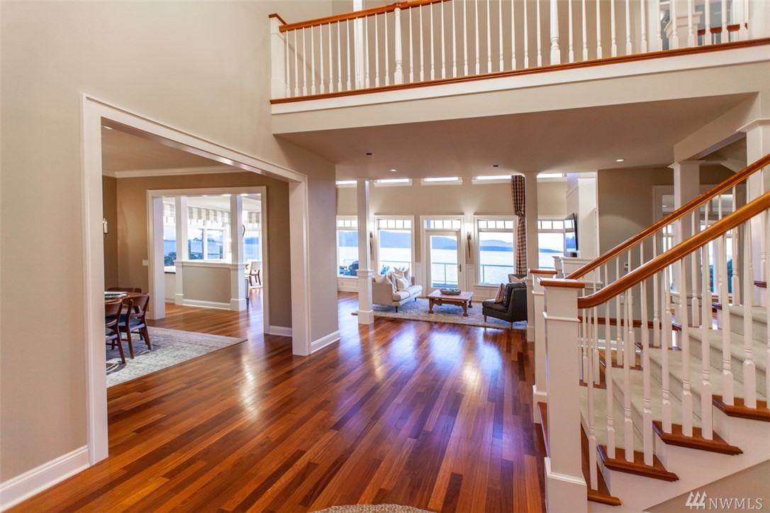This custom coastal chic home in the Edgemoor neighborhood has a warm nantucket charm & expansive front row views of Bellingham Bay & the San Juan Islands. The vaulted front foyer opens up into a two story main level open concept layout providing an airy feel with seamless transitions between kitchen, living and dining spaces. There is a master on both the main floor & upper level along with an office & wine cellar large enough to accommodate the most enthusiastic collector.