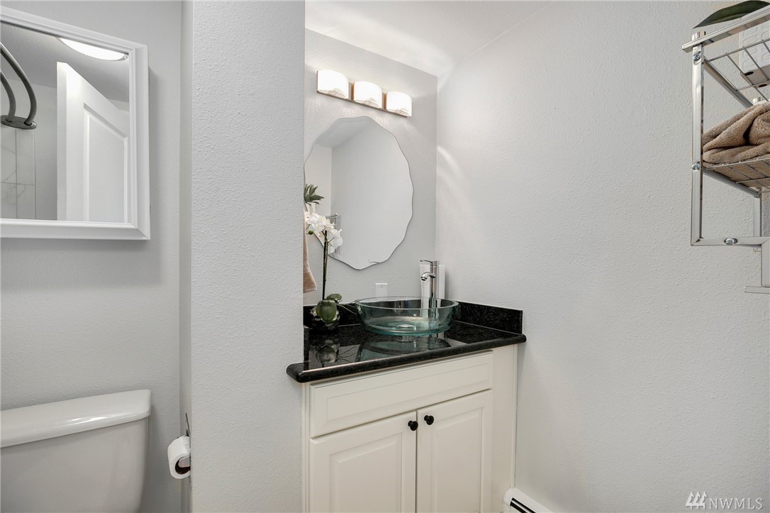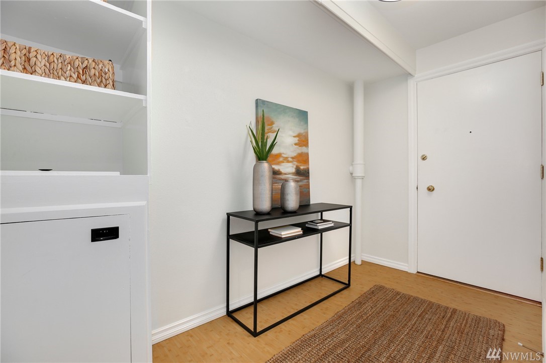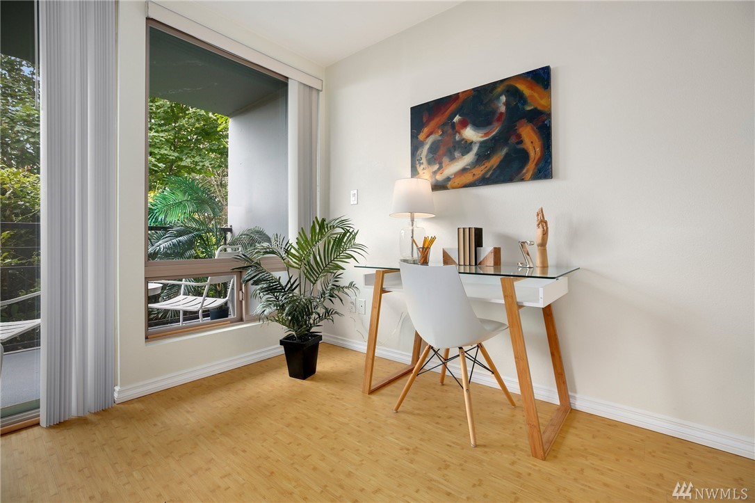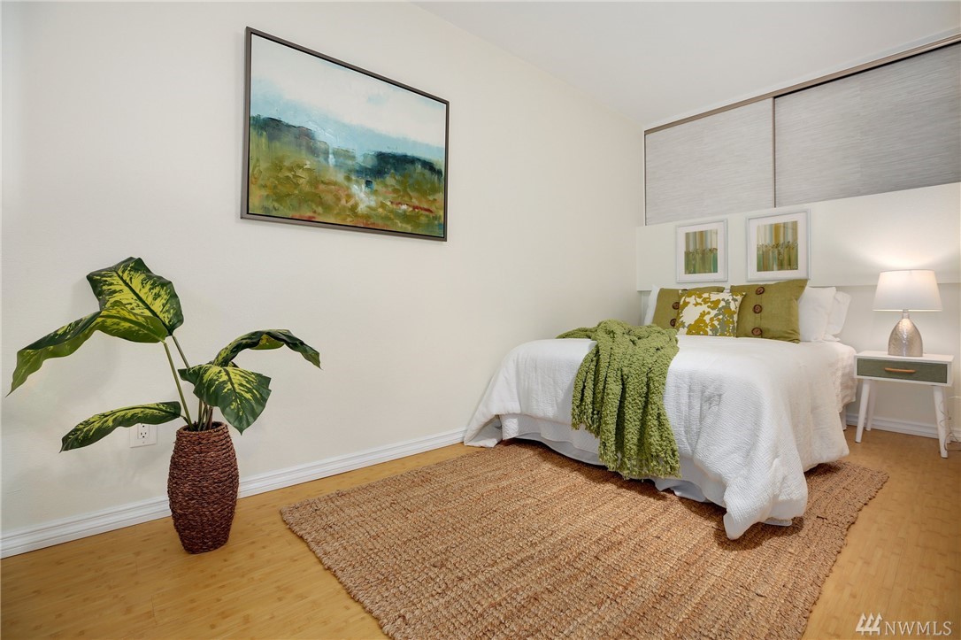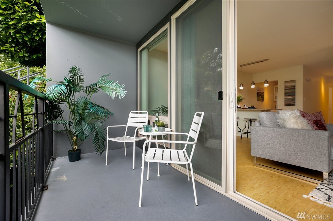 Welcome Home! Light and bright, this west-facing cozy home features include granite countertops, a breakfast bar, full bath, tiled shower, fresh paint, and luxurious vinyl plank flooring. Nice Patio. Covered parking, 2 storage areas. Building with exercise and rec room, elevator and security cameras. HOA dues covers gas heat, water, garbage, recycle, free laundry room. Very pet friendly! including a common garden area! Great location with superior walk score