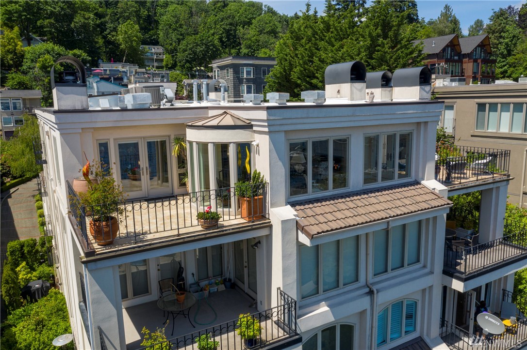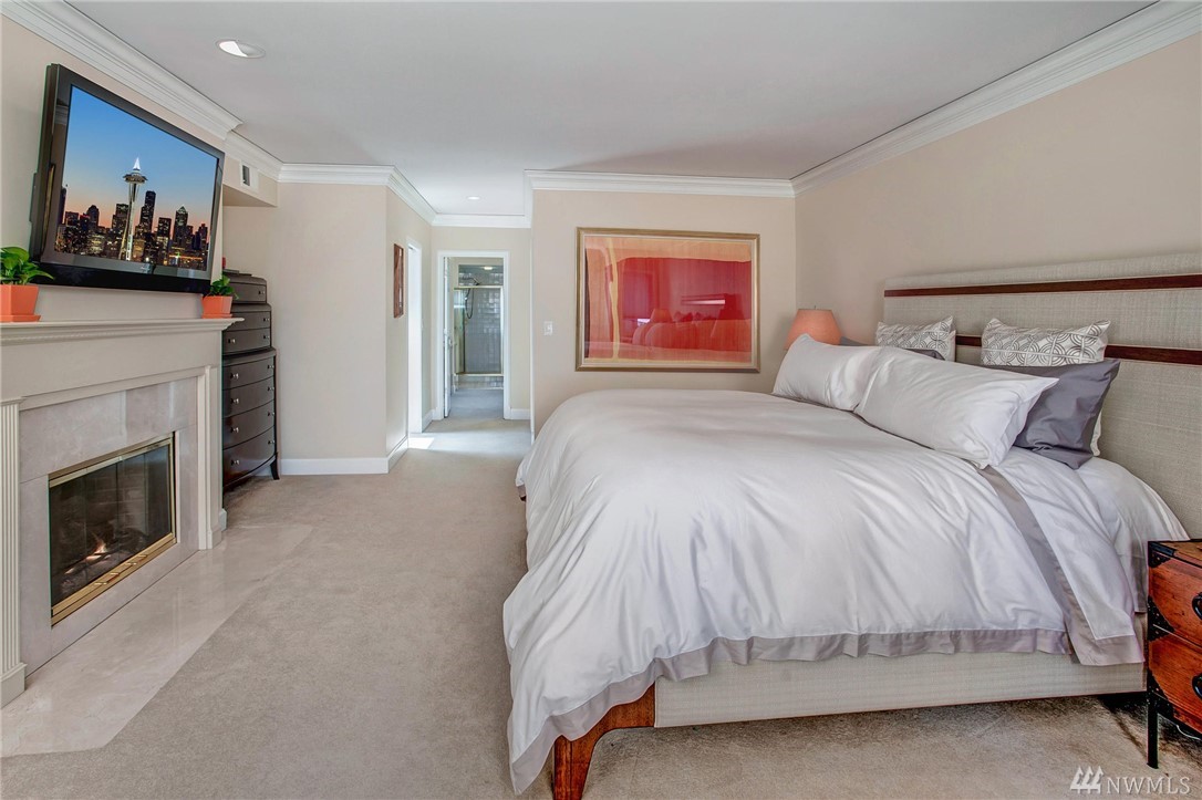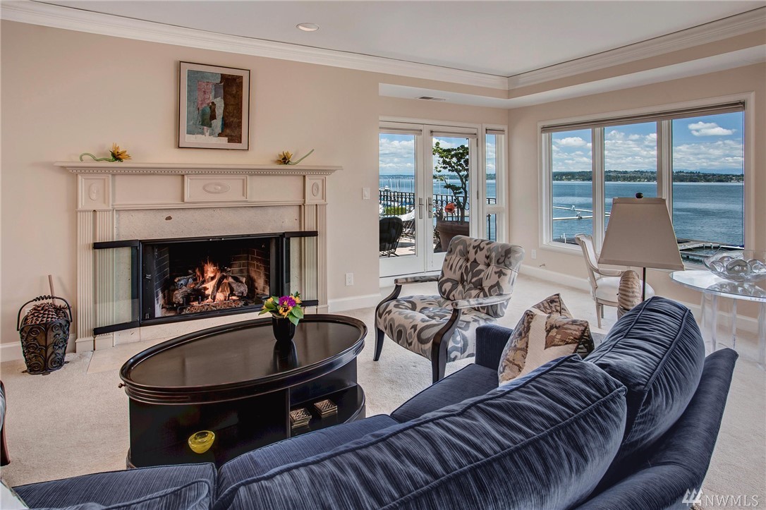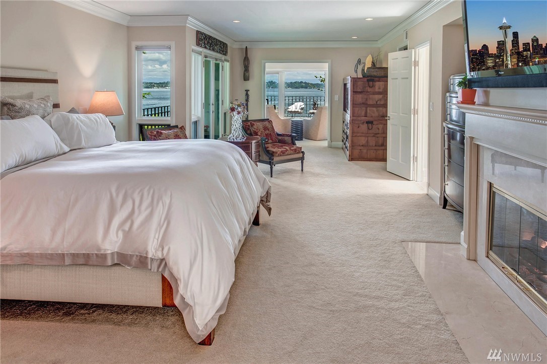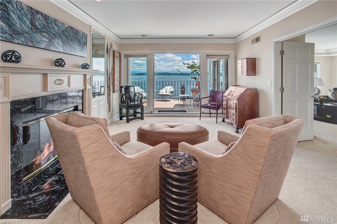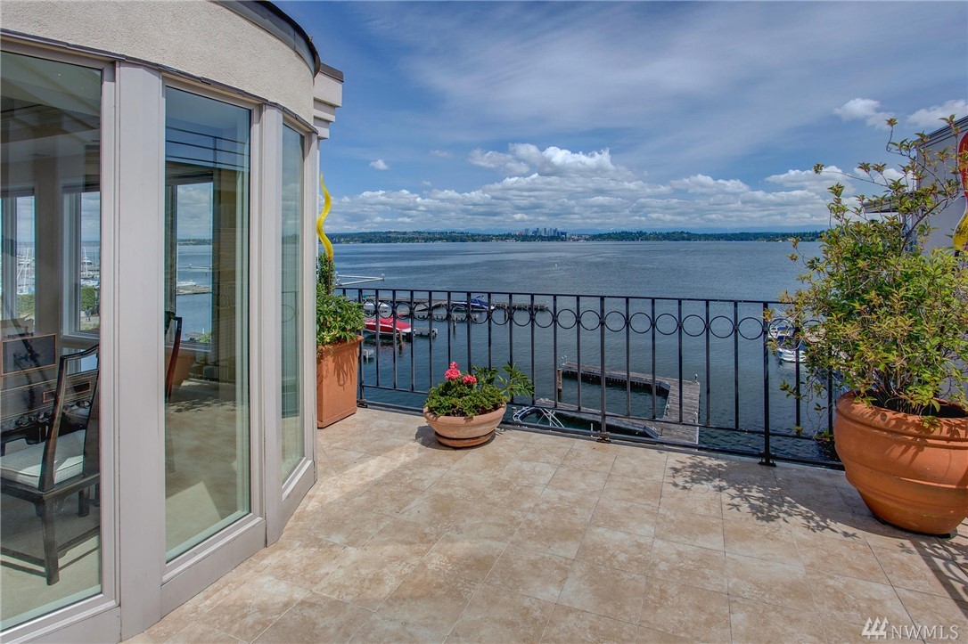 WATERFRONT PENTHOUSE in Leschi . Occupying the entire top floor of a five unit building this sunlit condo offers two large decks with spectacular Cascade Mtn. views and breathtaking sunrises. Chefs kitchen: Miele refrigerator, Viking range, Decor double oven and two wine coolers. Romantic master suite: 2 large walk in closets, gas fireplace, Juliette balcony and Jacuzzi tub. Two additional fireplaces provide cozy settings. Special Features: Private entry, deeded boat slip, three storage units.